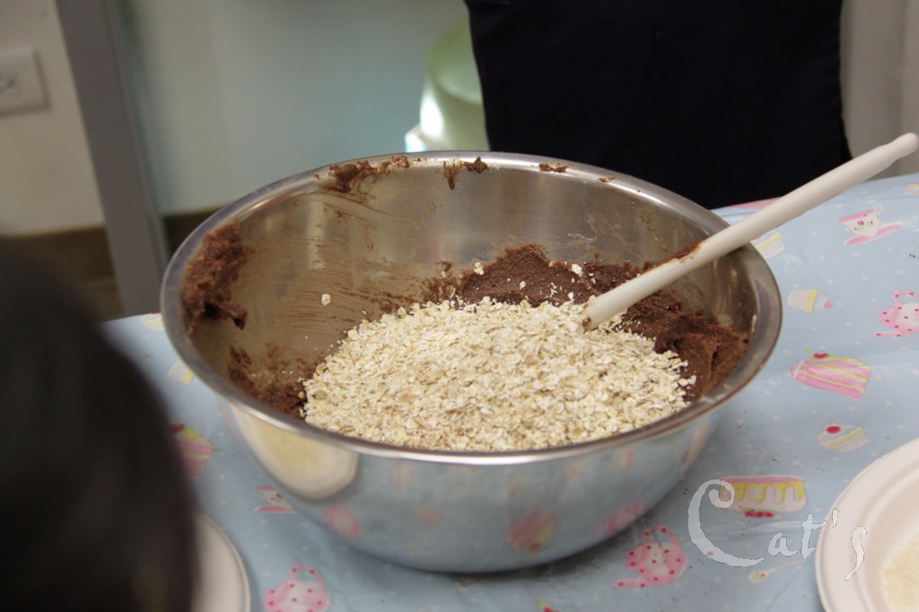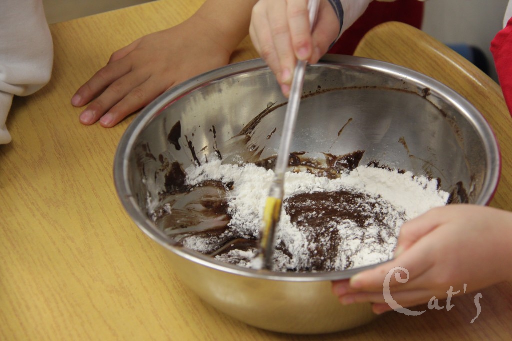 Ms. Jebe shows the students how to mix all the ingredients together.