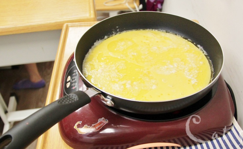 將空氣打入蛋汁中,等一下蛋捲會更蓬鬆