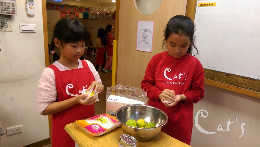 小廚神專心的聽著老師講解製作Sunshine Gelatin的步驟醞釀著粉墨登場
