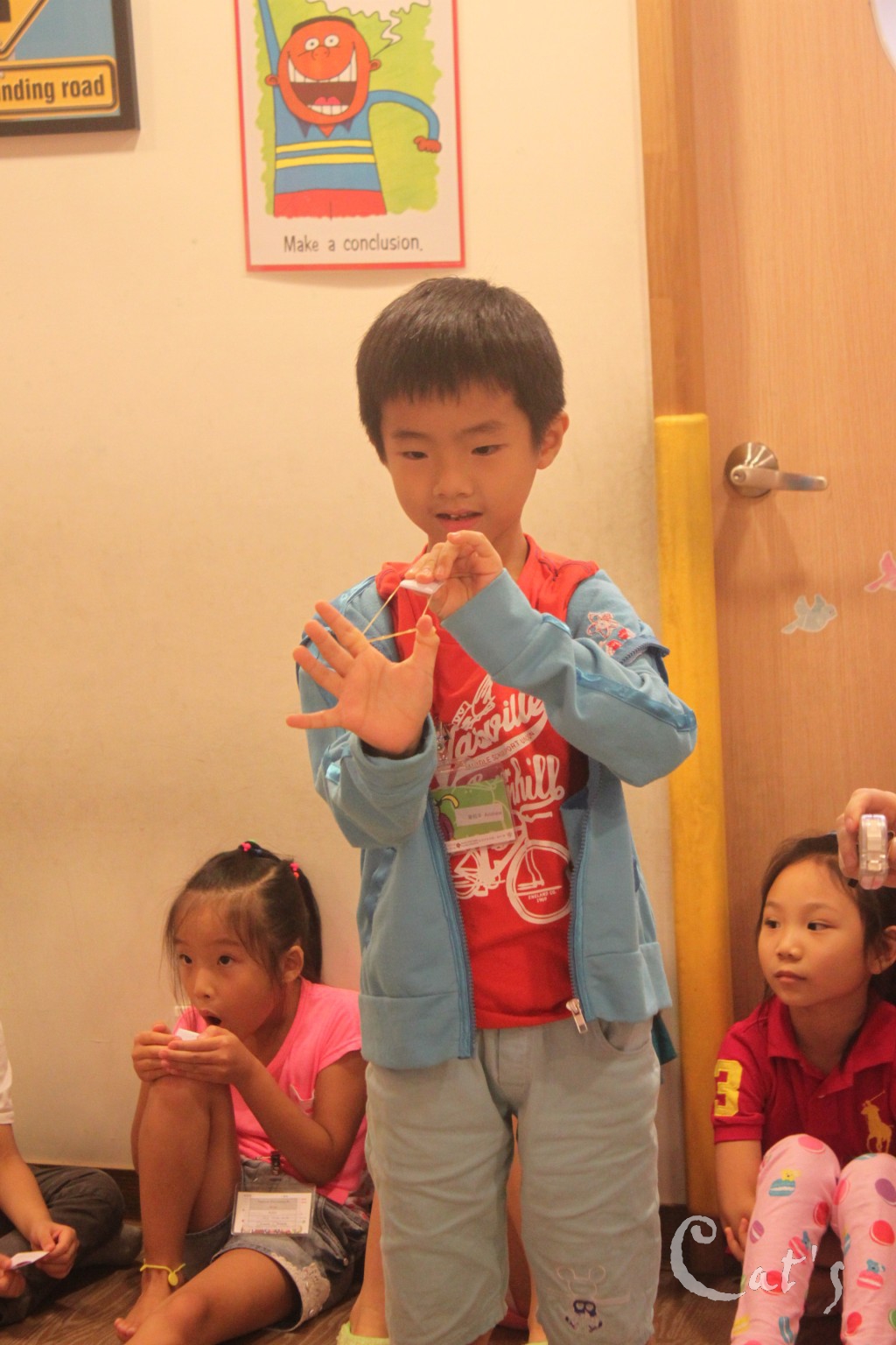 將著色後的stick puppet貼在冰棒棍上看似簡單卻不容易