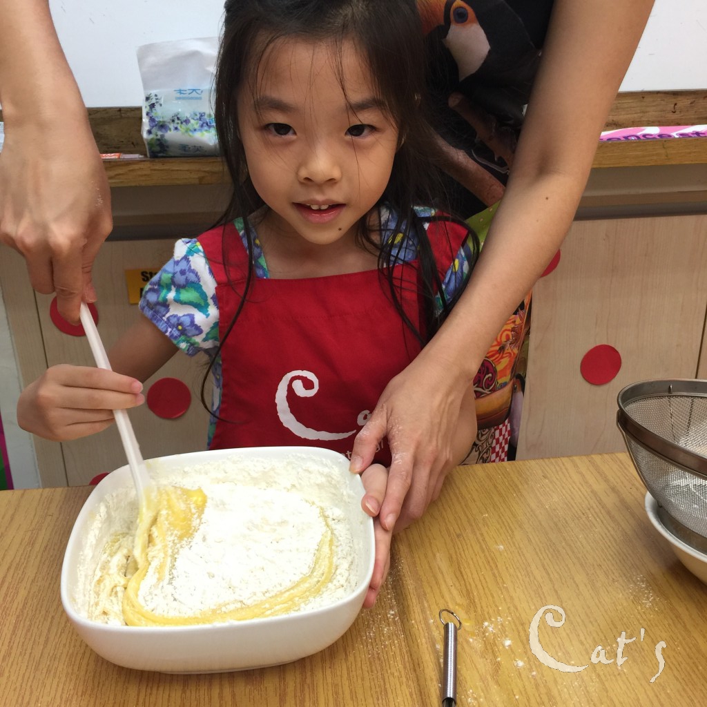 將拌好的batter輕輕倒在烤盤後就要送進烤箱囉
