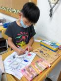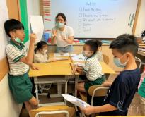 We must always have one hand on the pan handle and the other hand on the spatula.