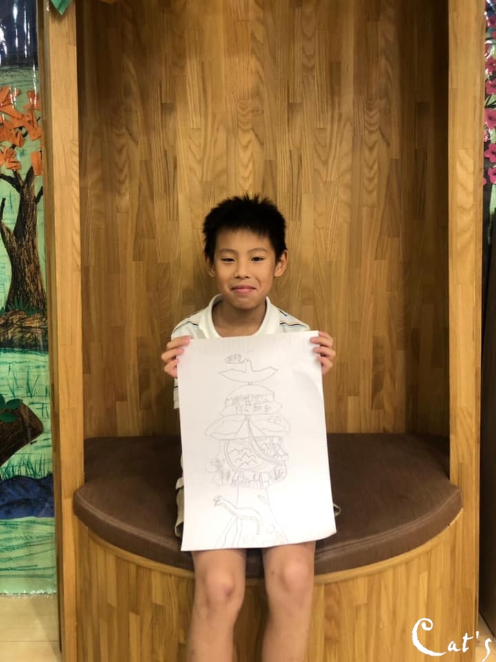 很認真地繪製故事情節,並用自己的話寫出故事內容。