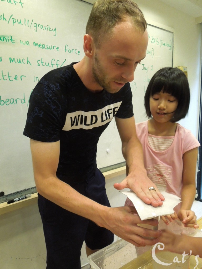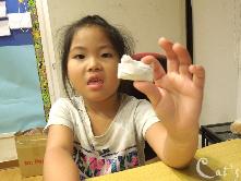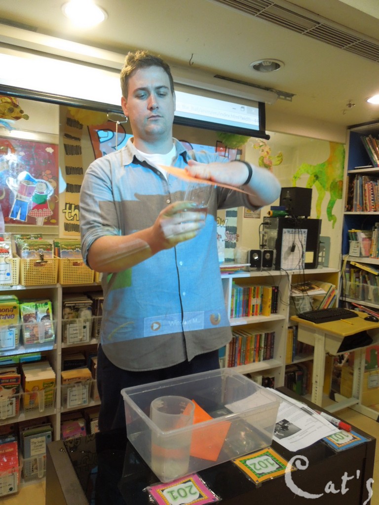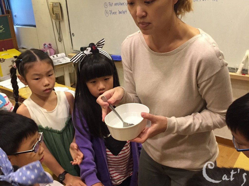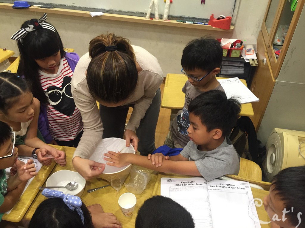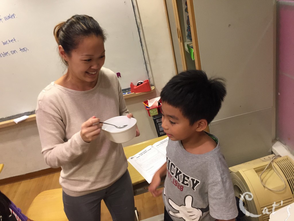 Teacher Stephanie 準備拆開上星期做的實驗: 種豆子