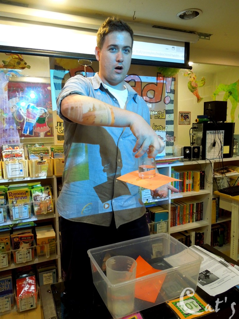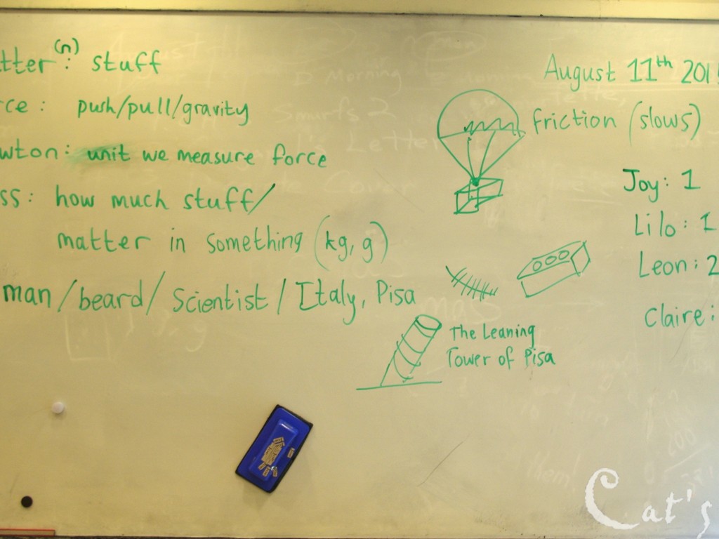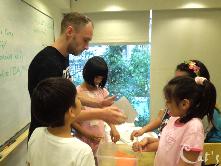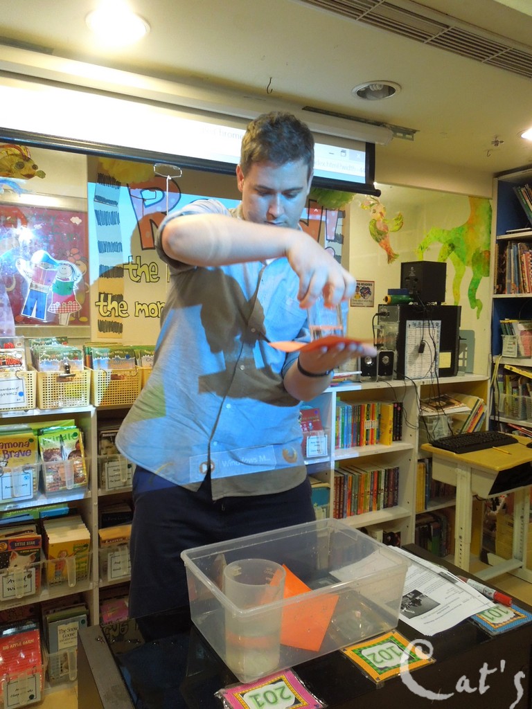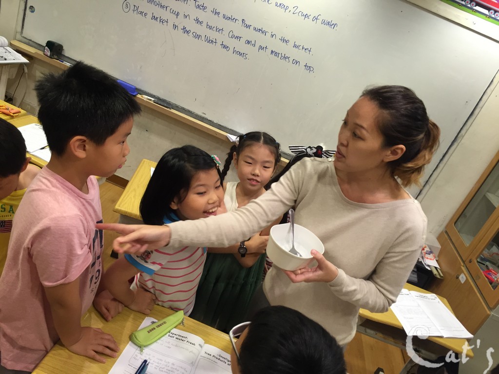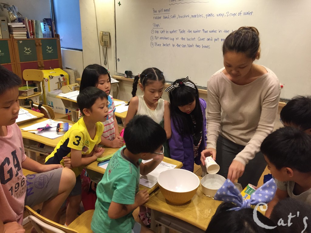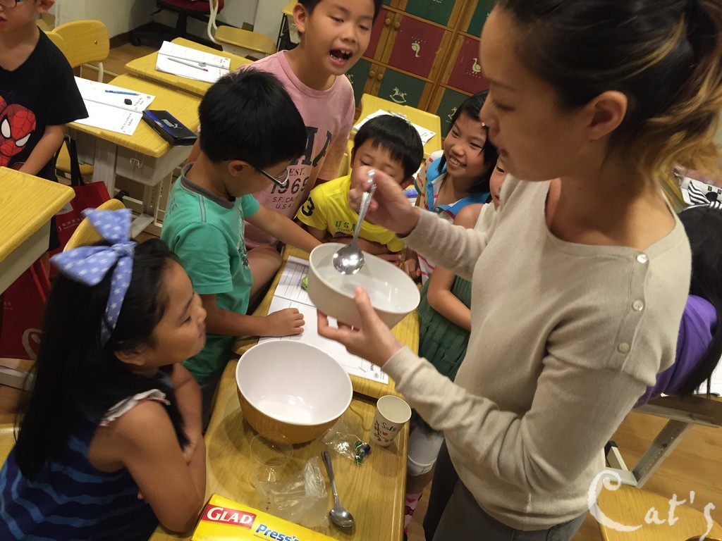 Teacher Stephanie 準備拆開上星期做的實驗: 種豆子