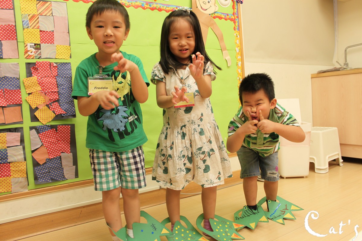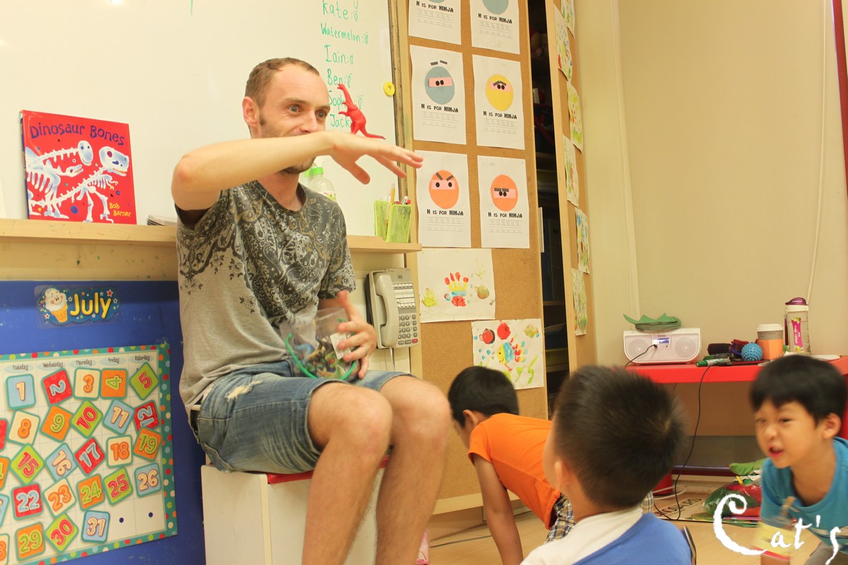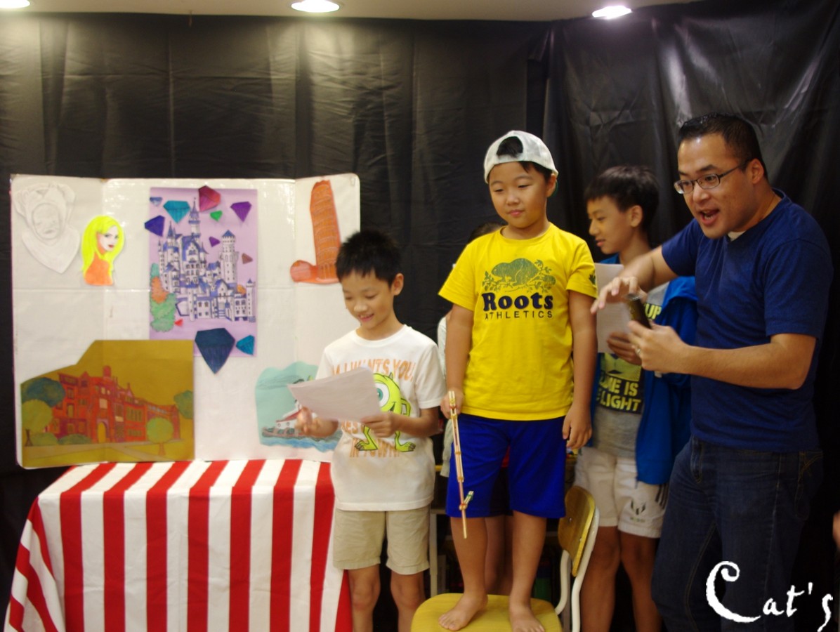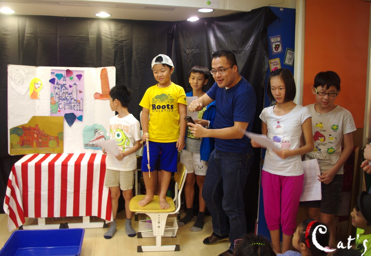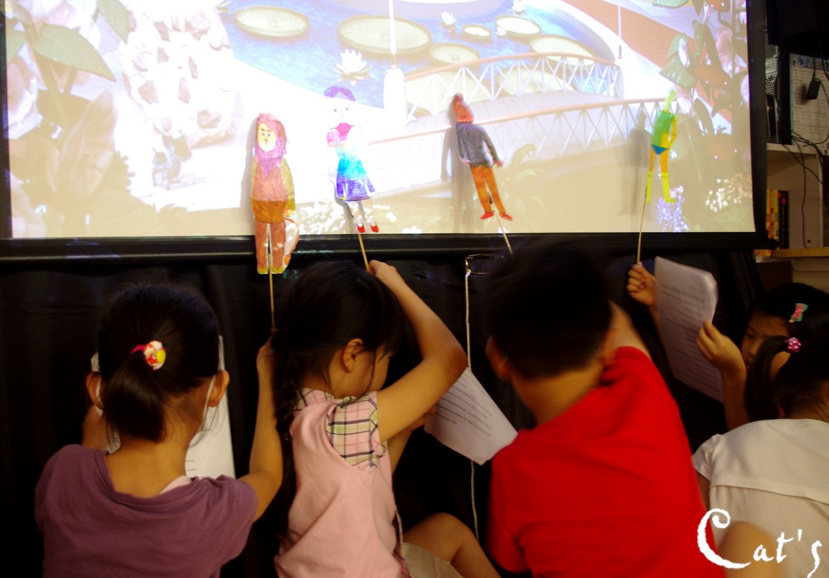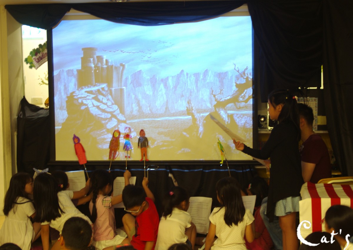 Teacher Joe 班用有趣的方式做介紹,像紙偶在布幕內表演.