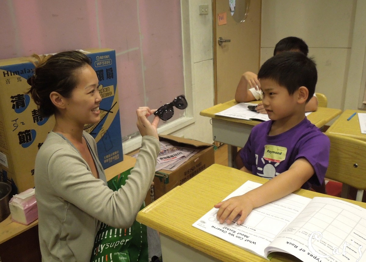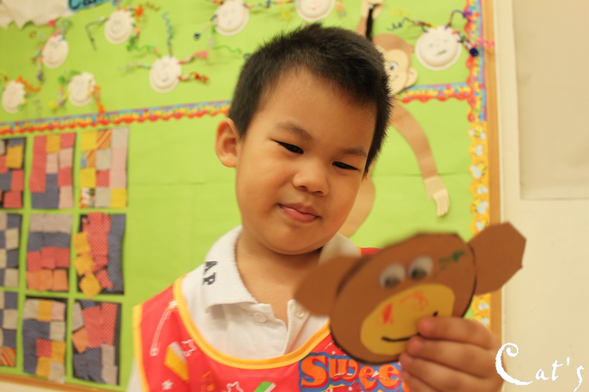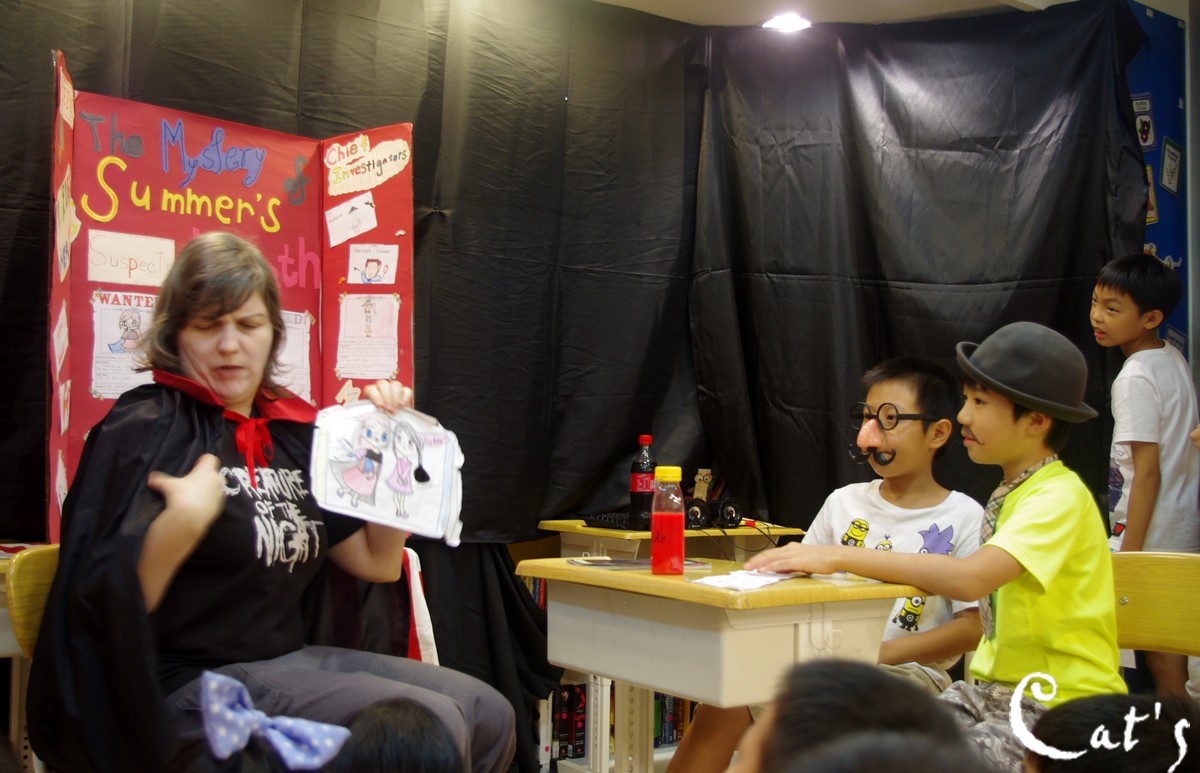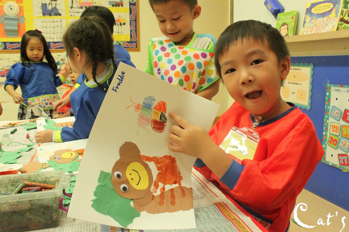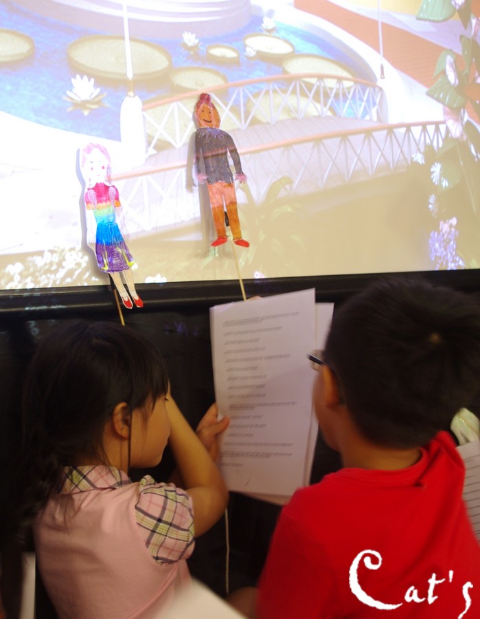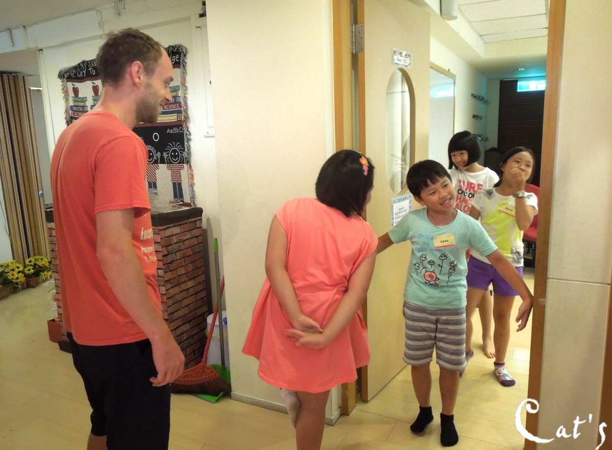 Teacher Joe 班用有趣的方式做介紹,像紙偶在布幕內表演.