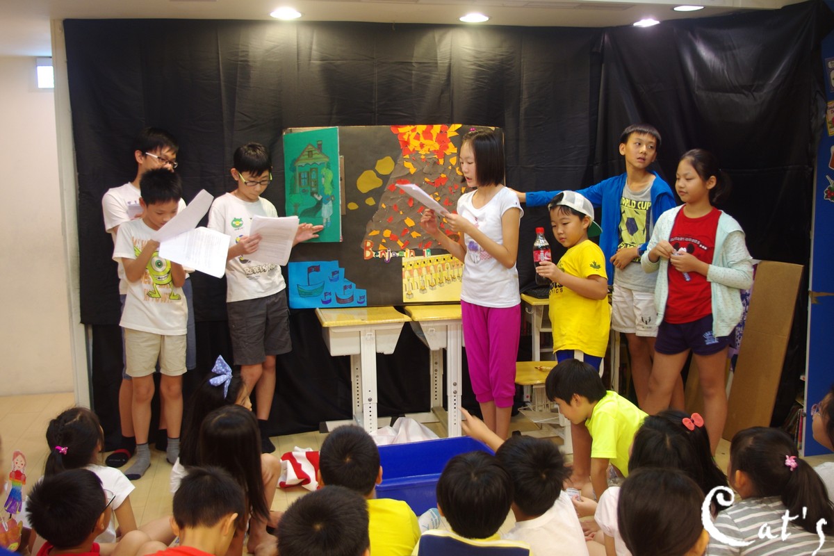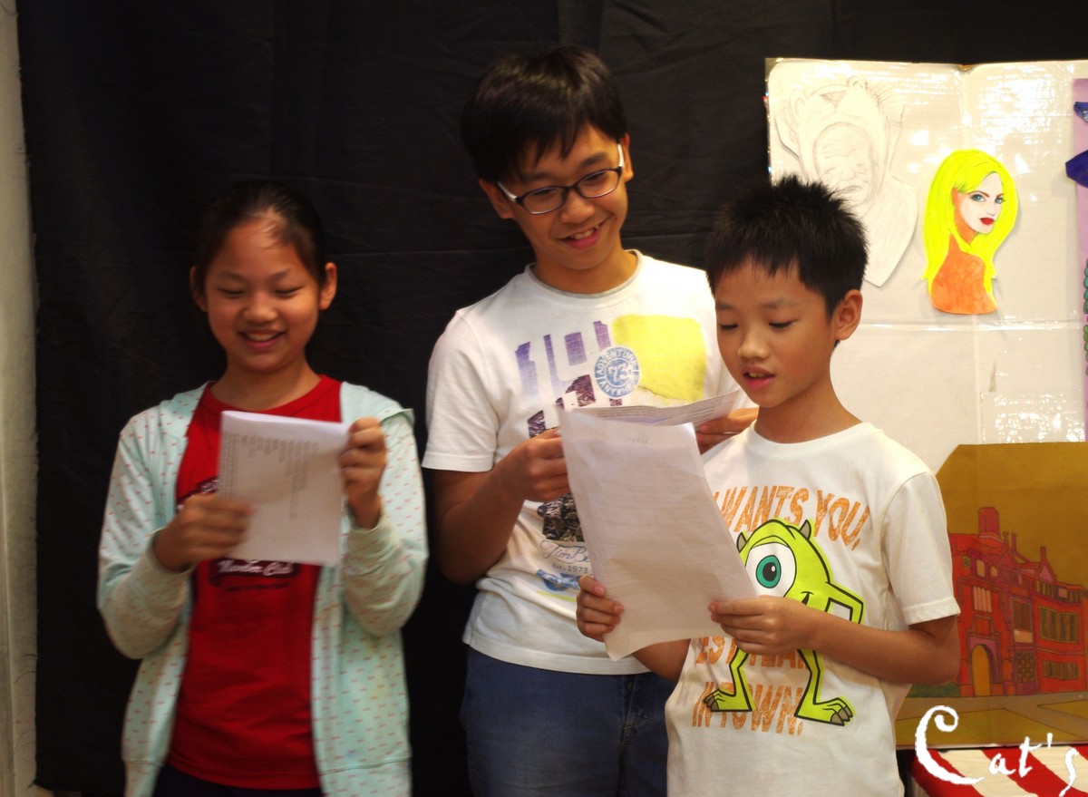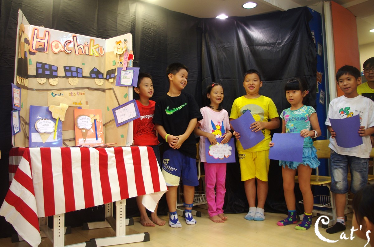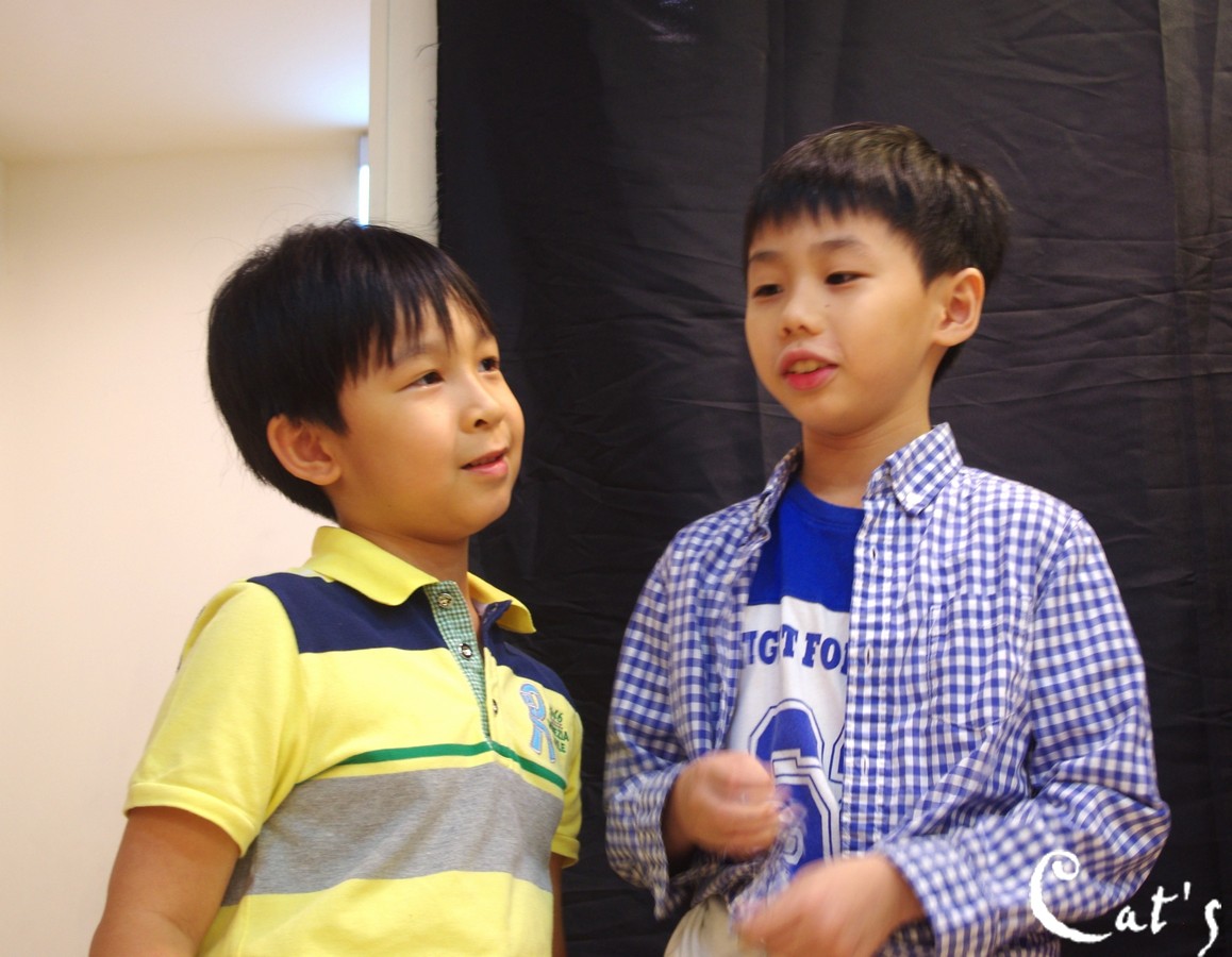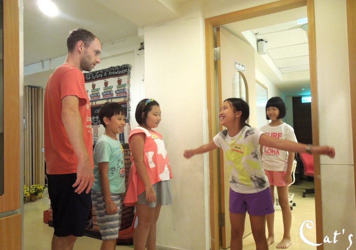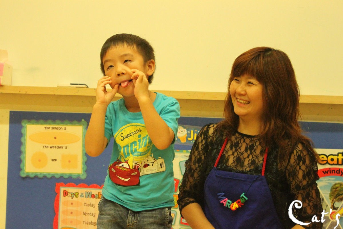 Teacher Joe 班用有趣的方式做介紹,像紙偶在布幕內表演.