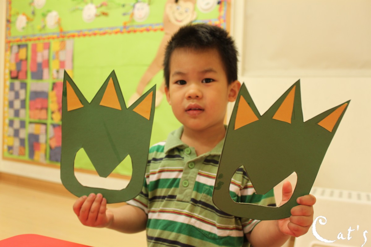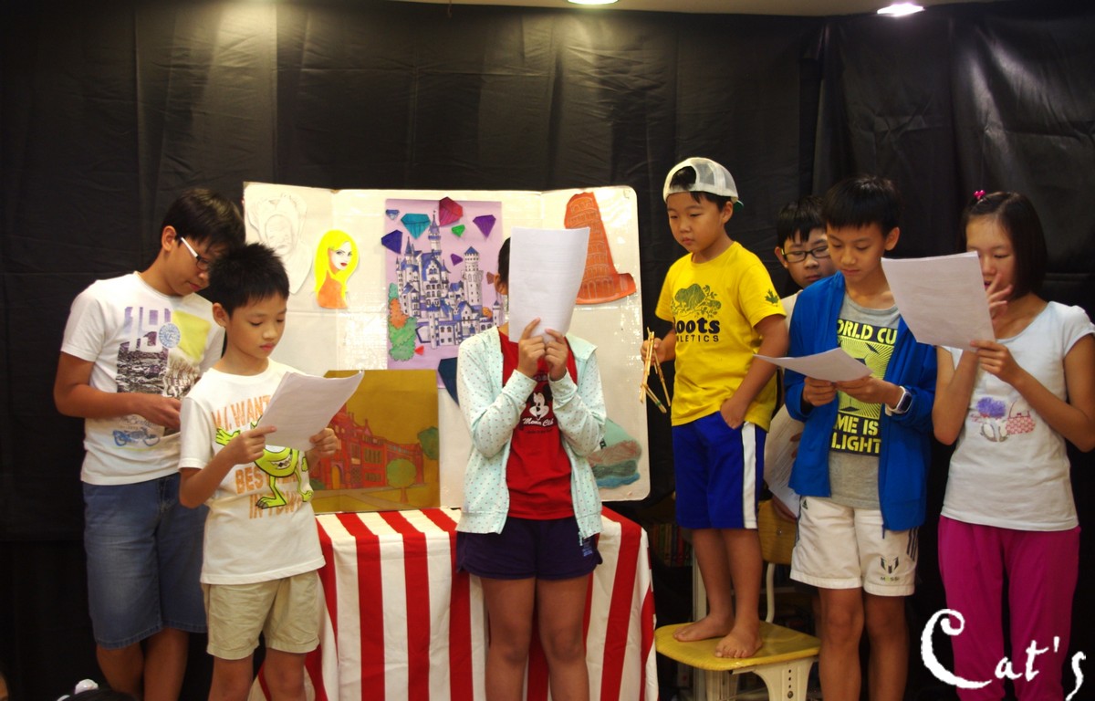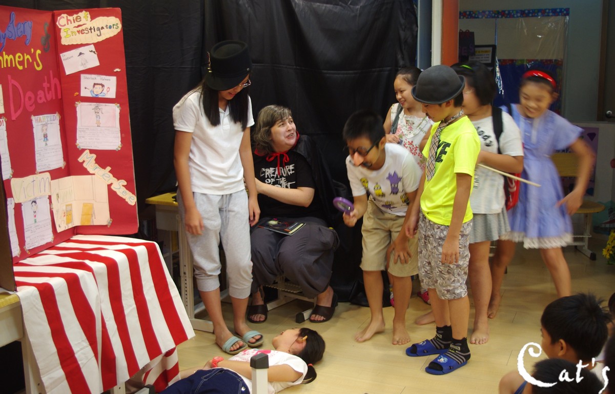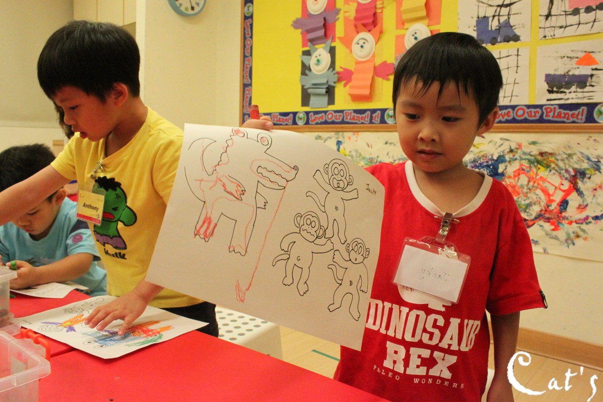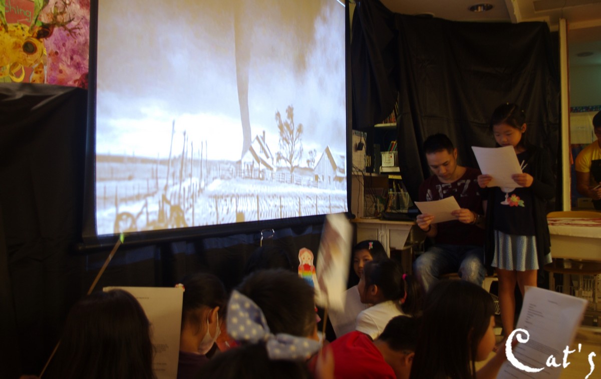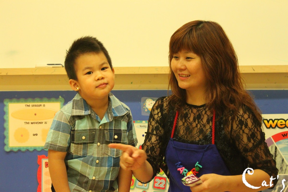 Teacher Joe 班用有趣的方式做介紹,像紙偶在布幕內表演.
