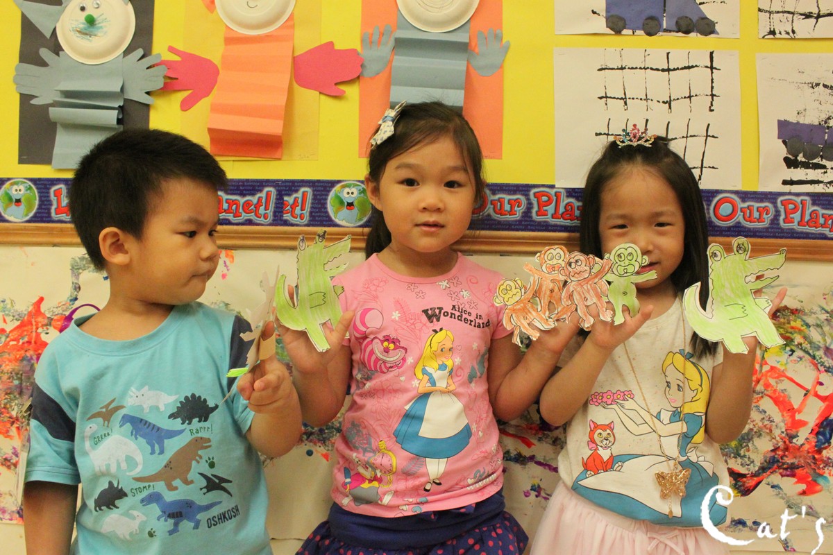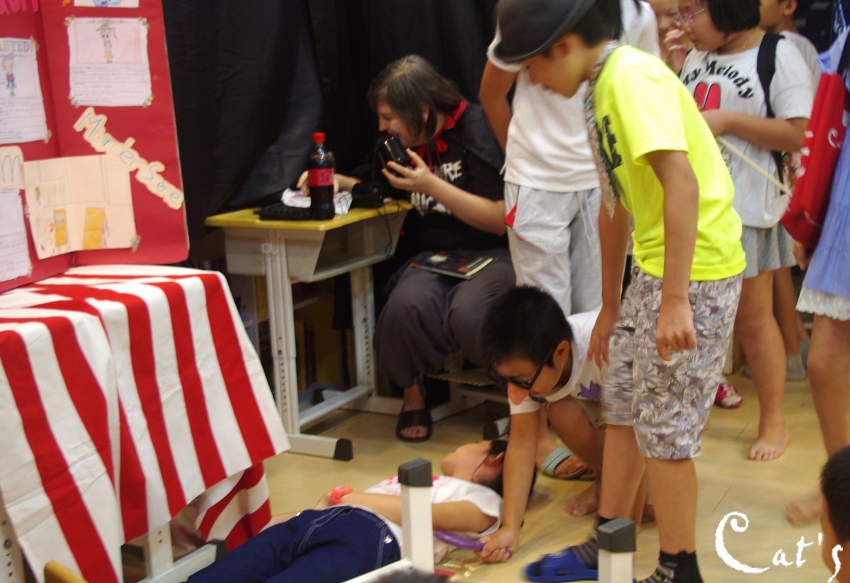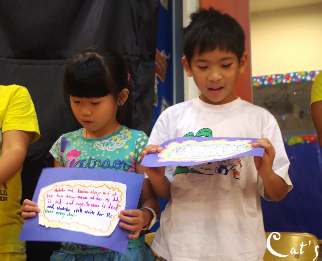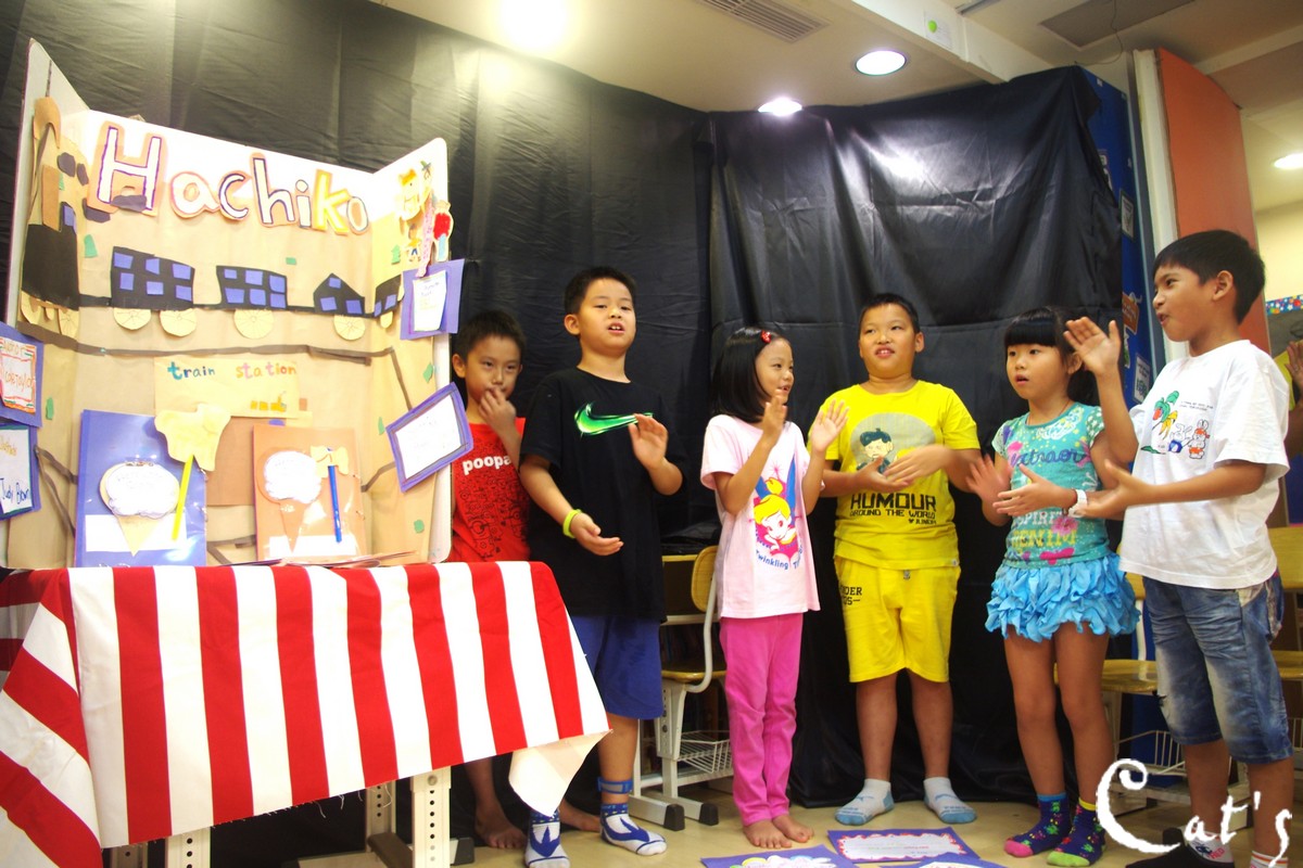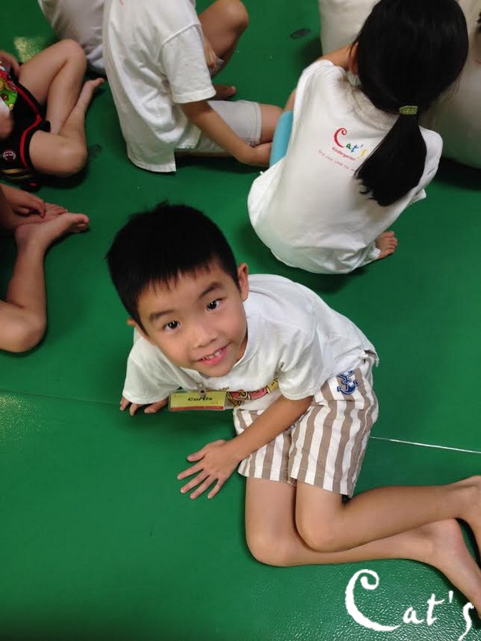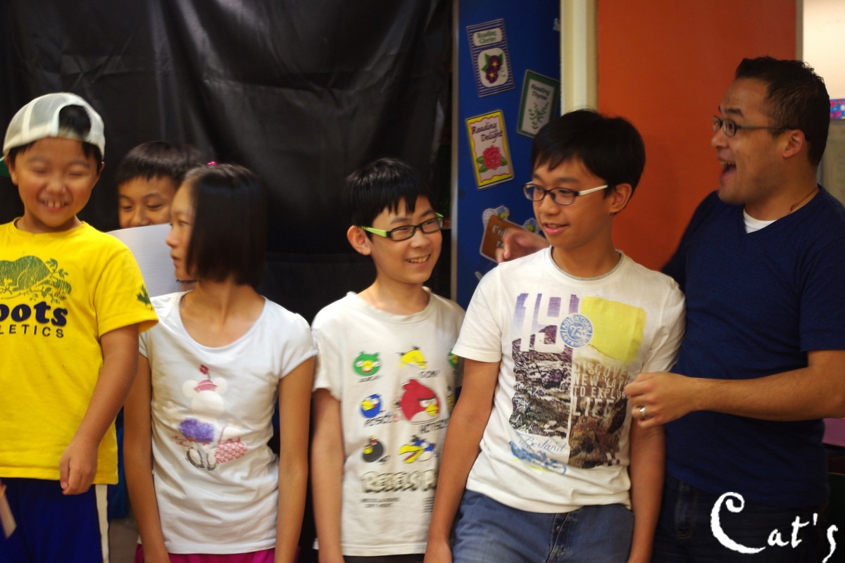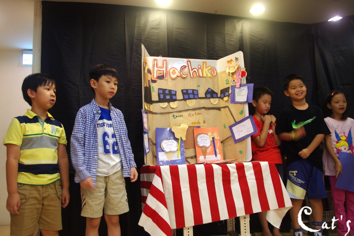 Teacher Joe 班用有趣的方式做介紹,像紙偶在布幕內表演.