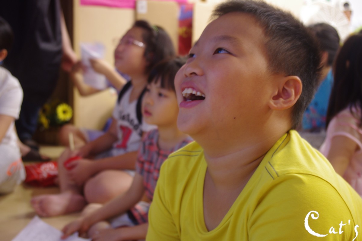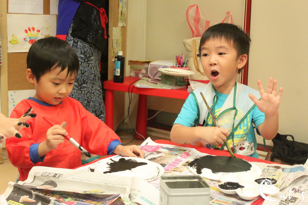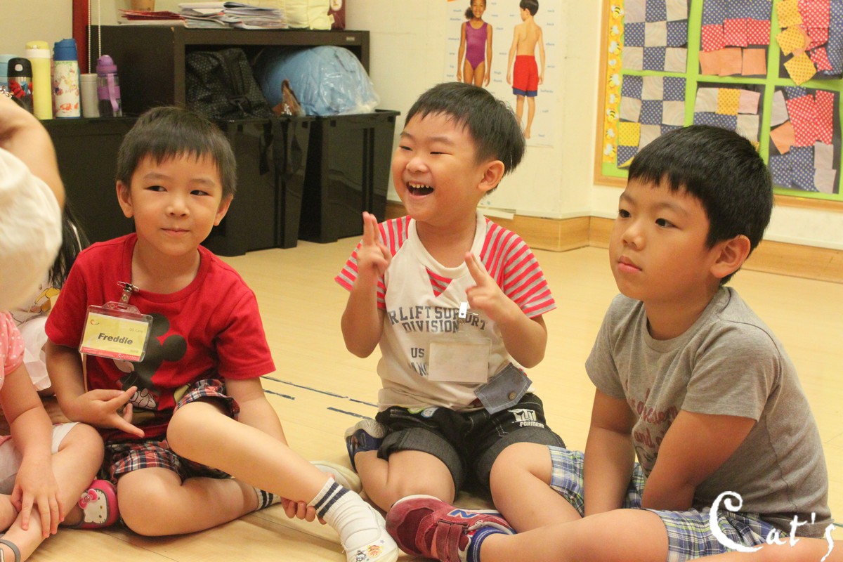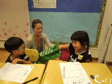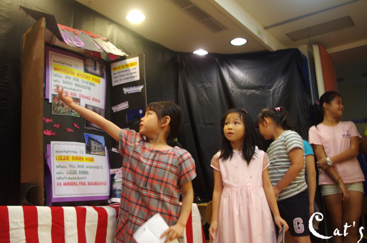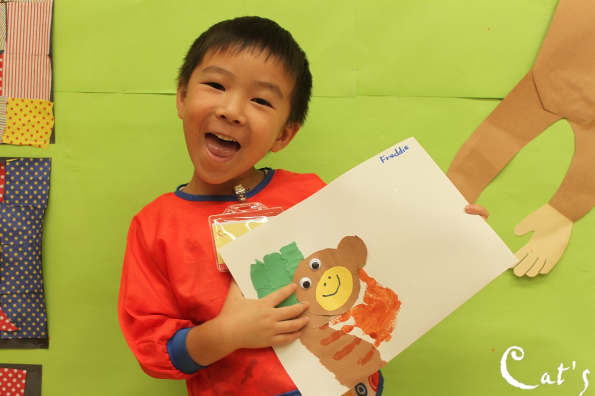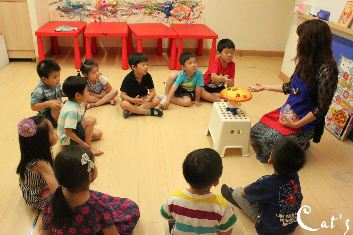 Teacher Joe 班用有趣的方式做介紹,像紙偶在布幕內表演.