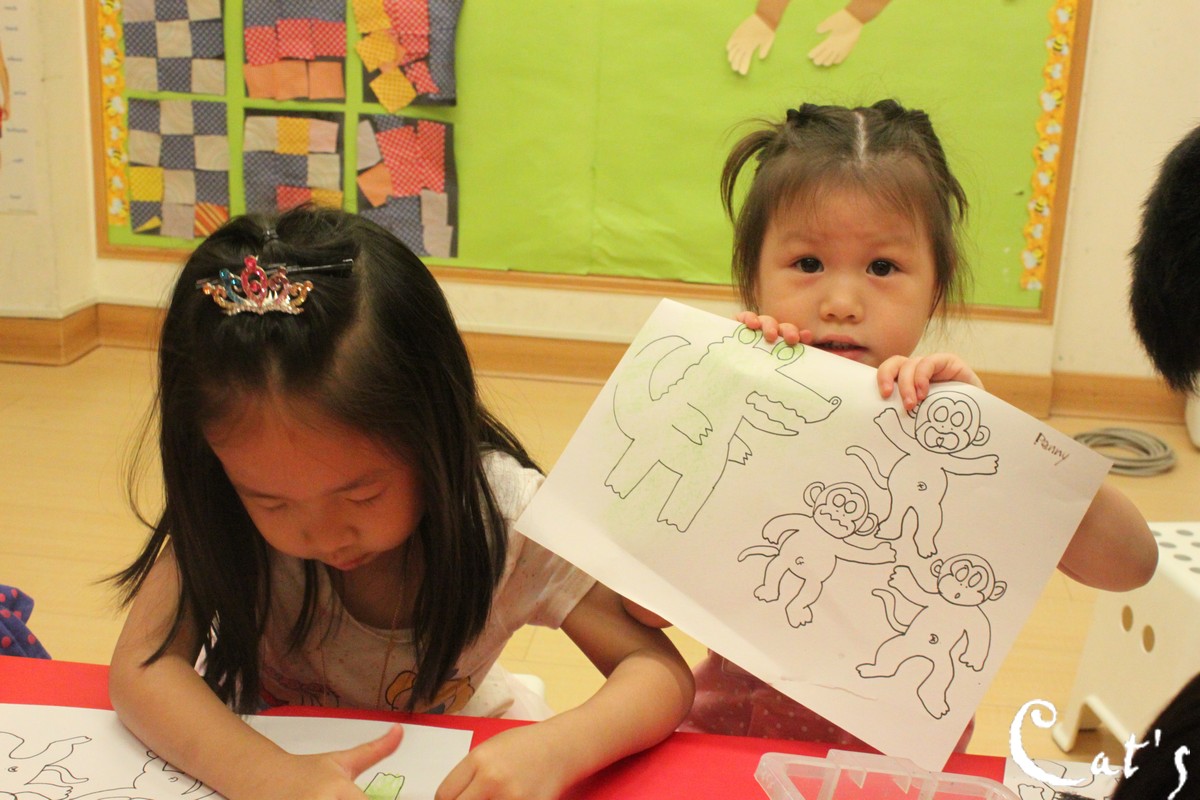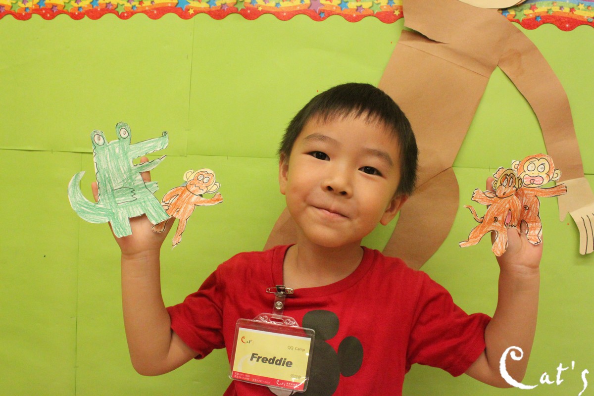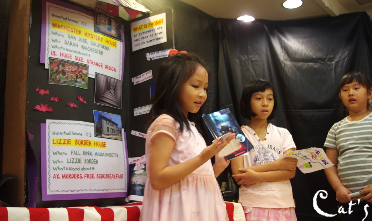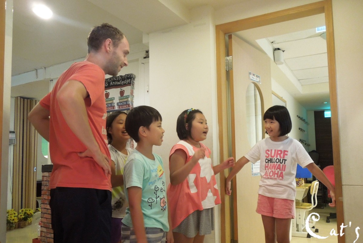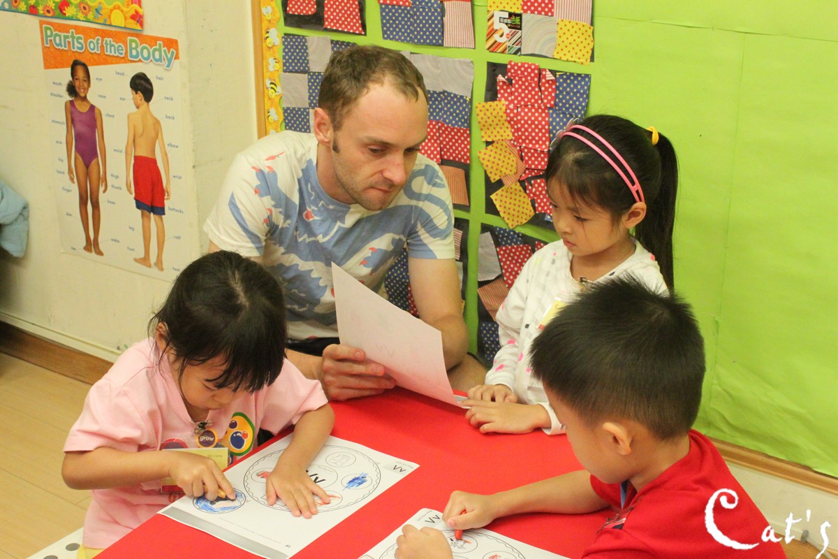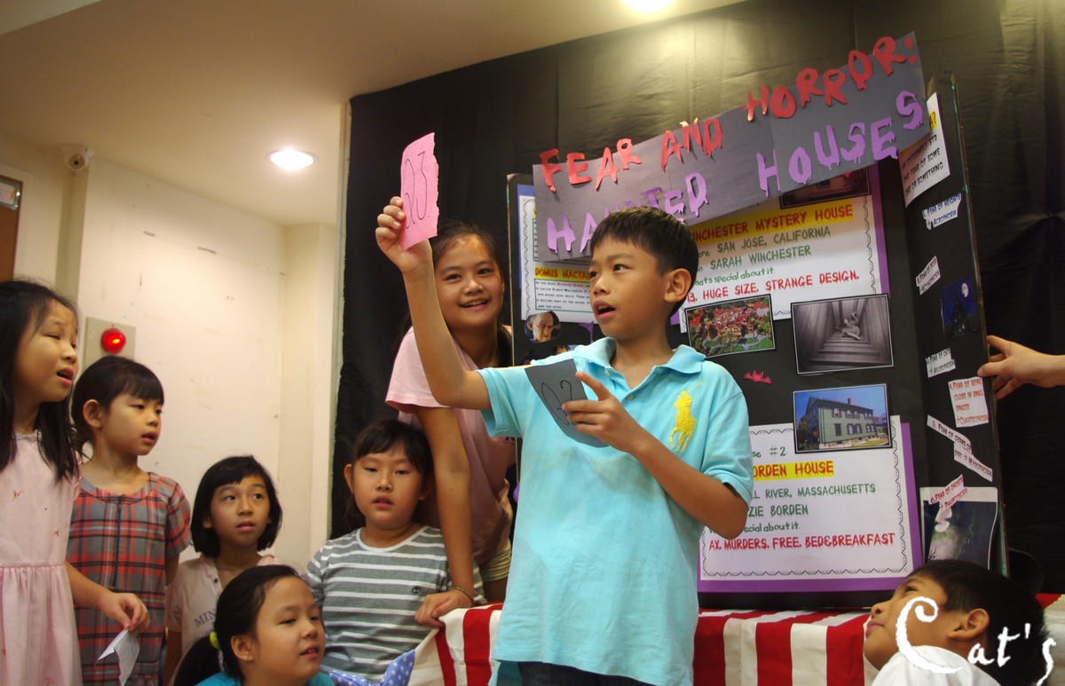 Teacher Joe 班用有趣的方式做介紹,像紙偶在布幕內表演.