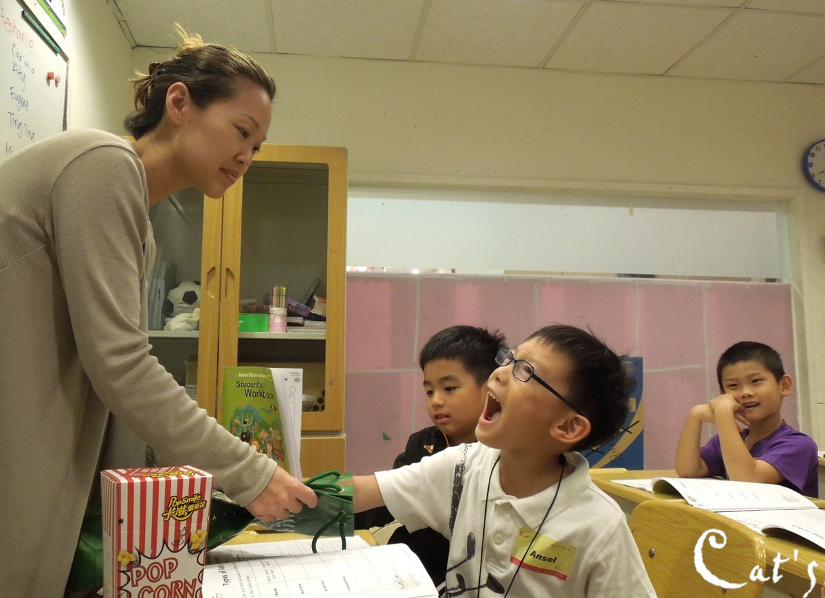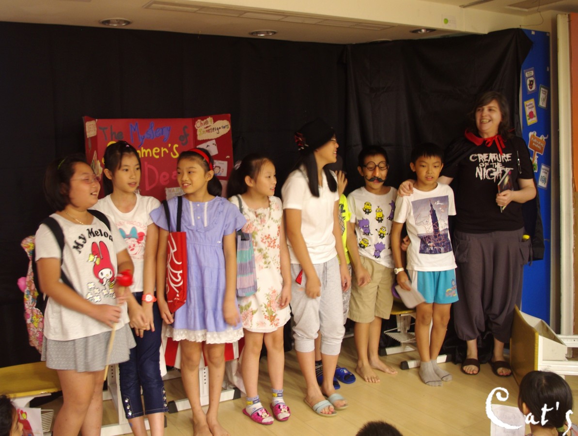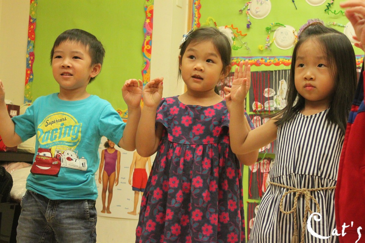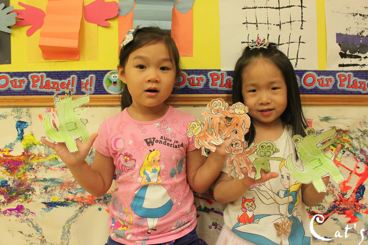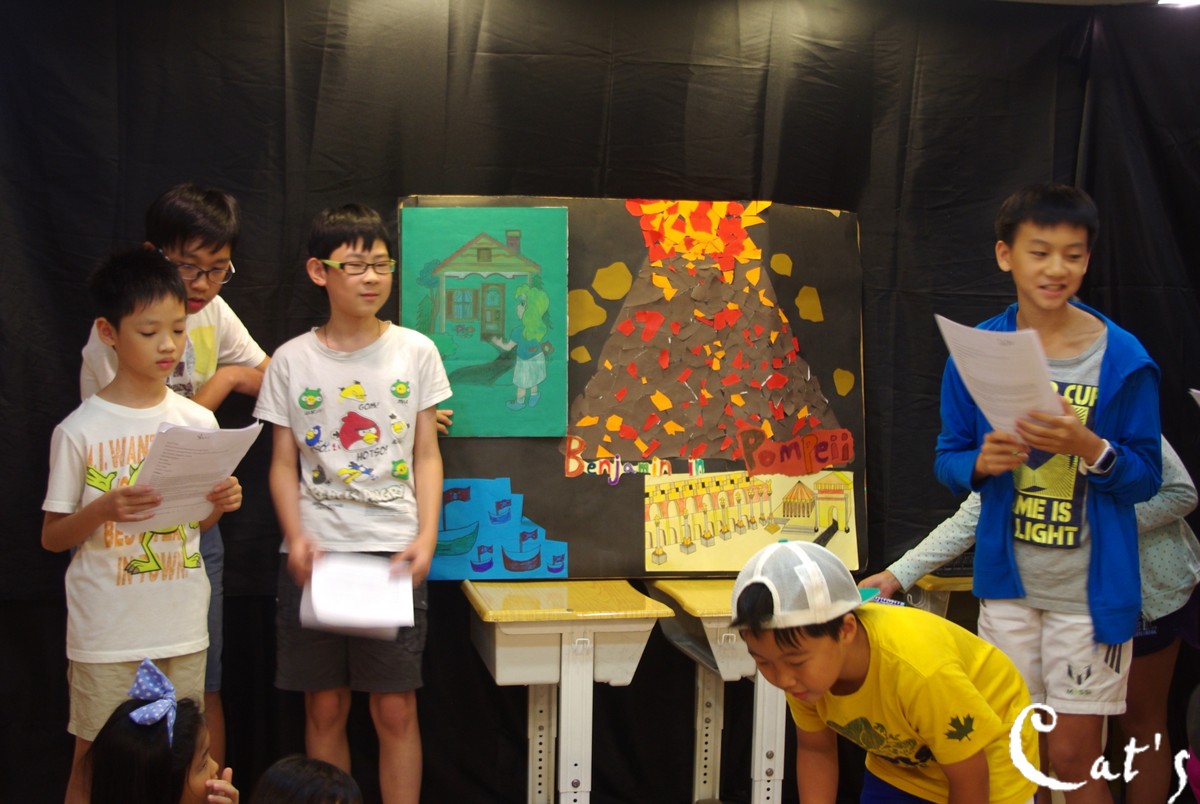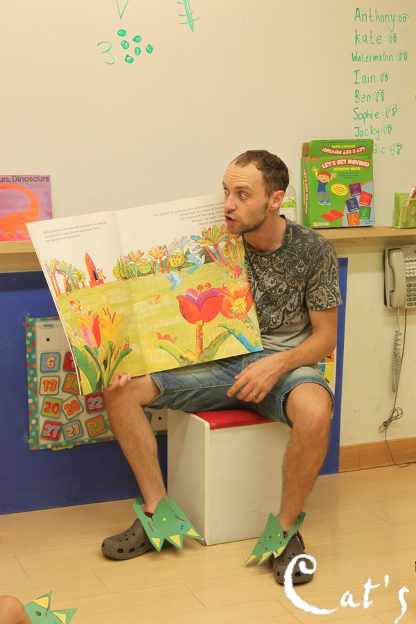 Teacher Joe 班用有趣的方式做介紹,像紙偶在布幕內表演.