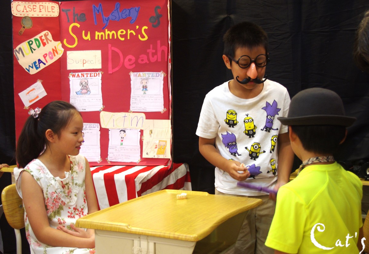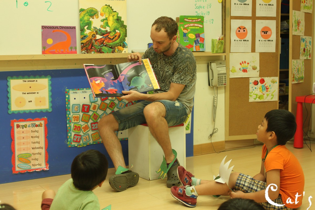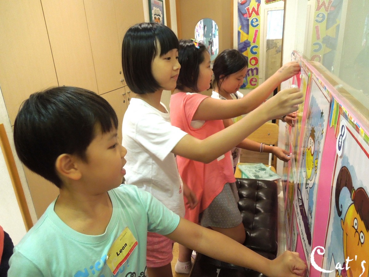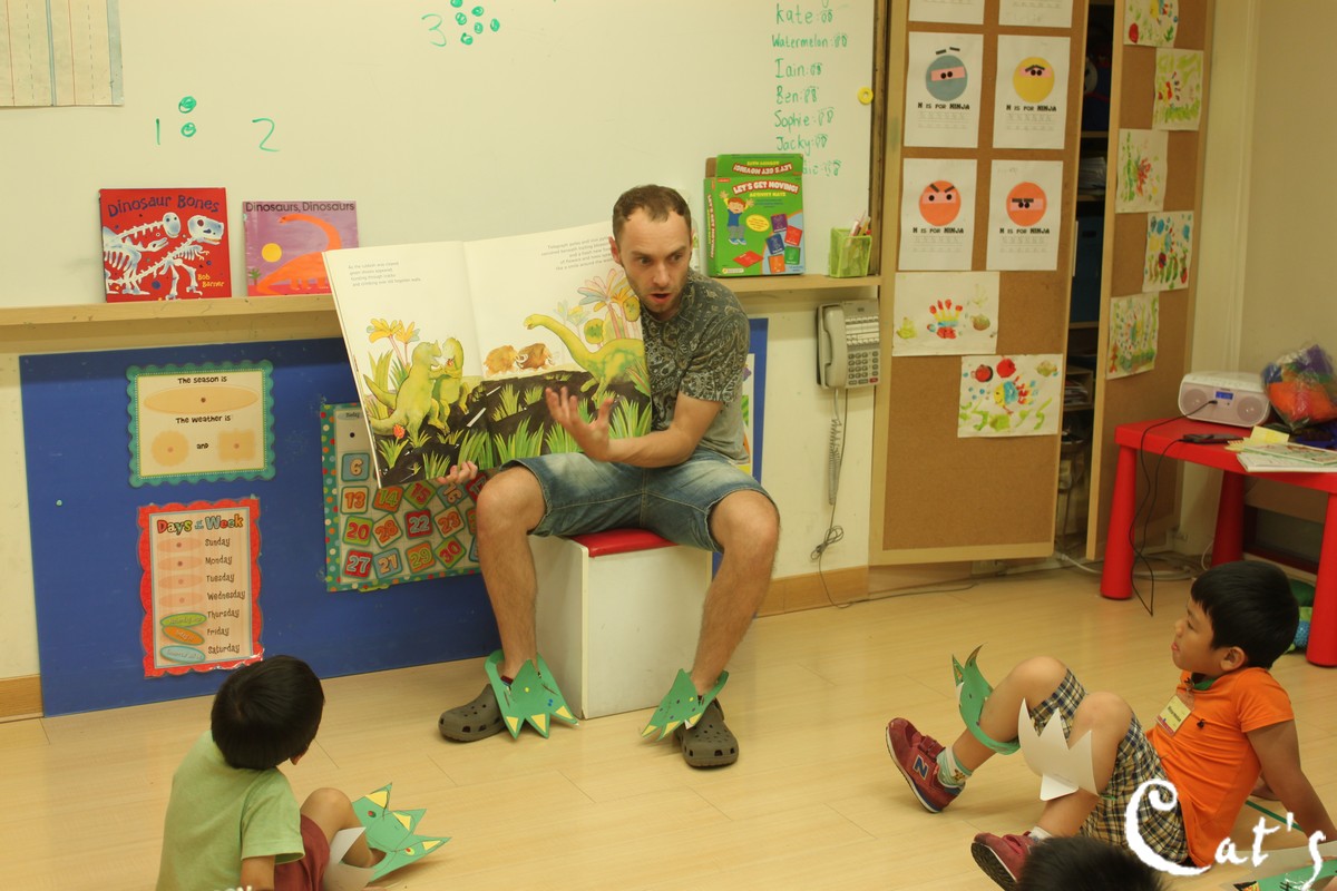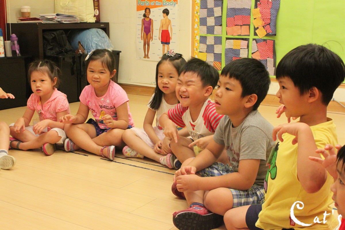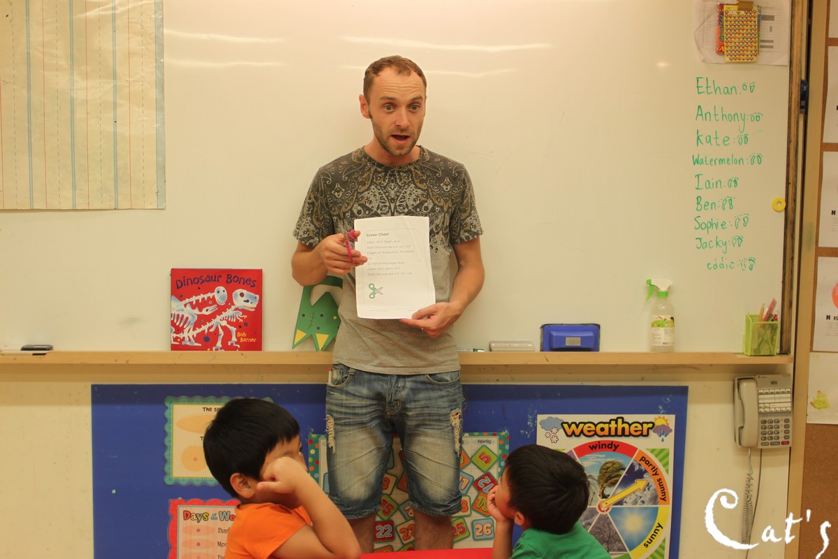 Teacher Joe 班用有趣的方式做介紹,像紙偶在布幕內表演.