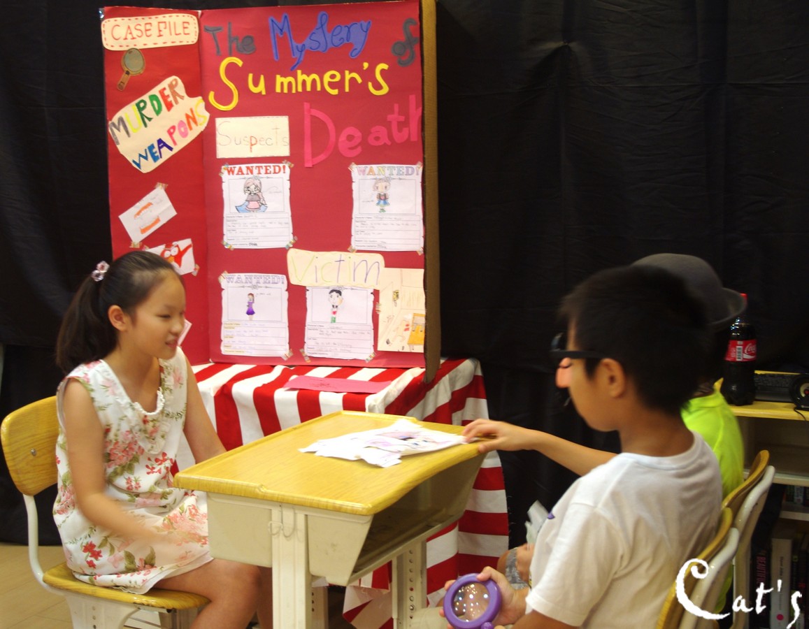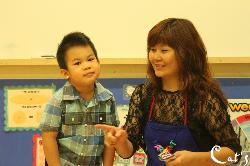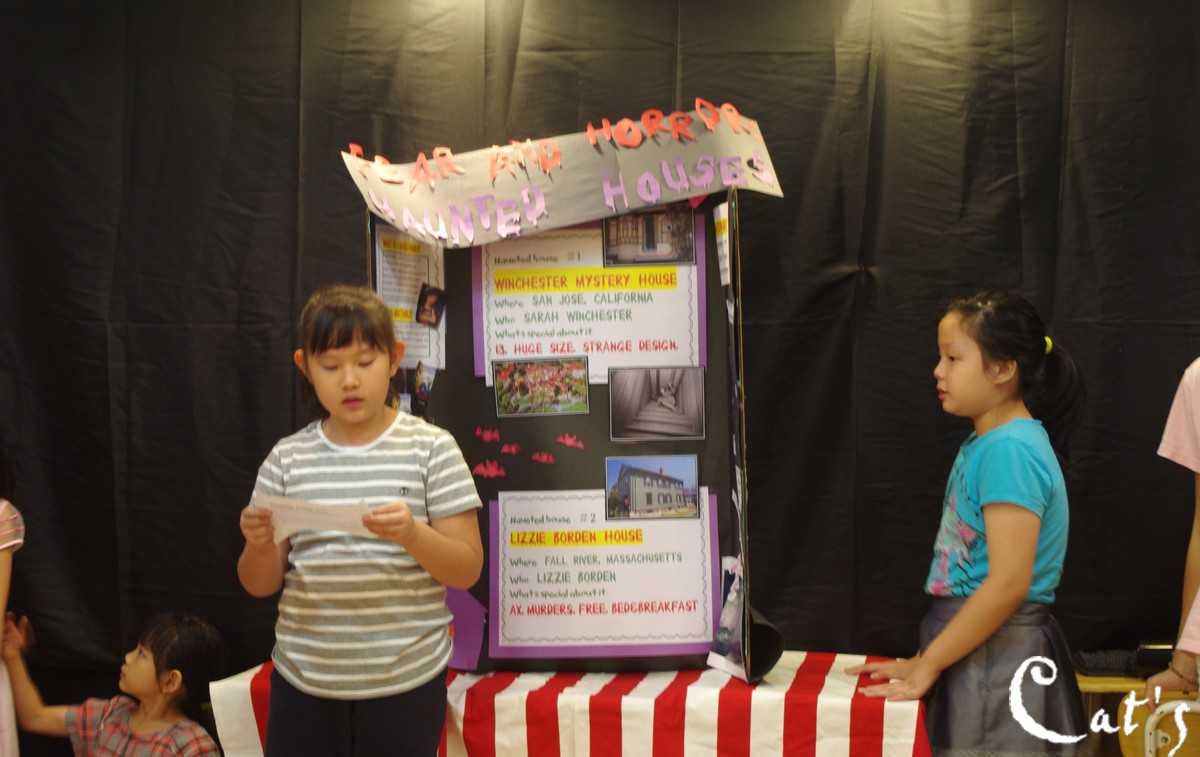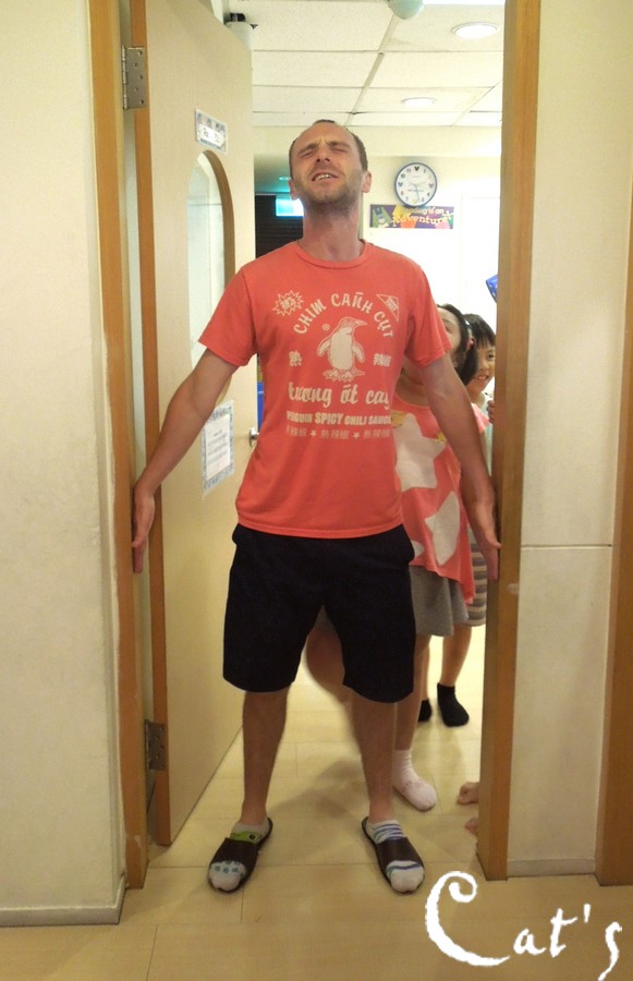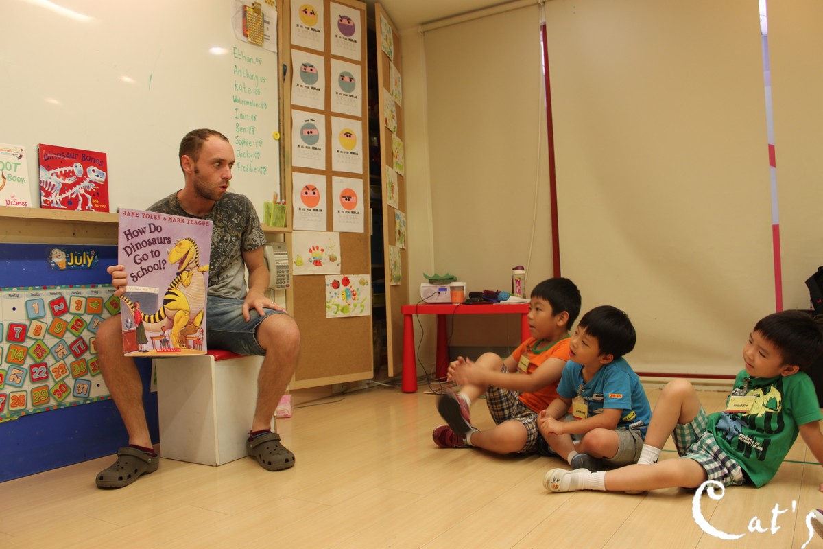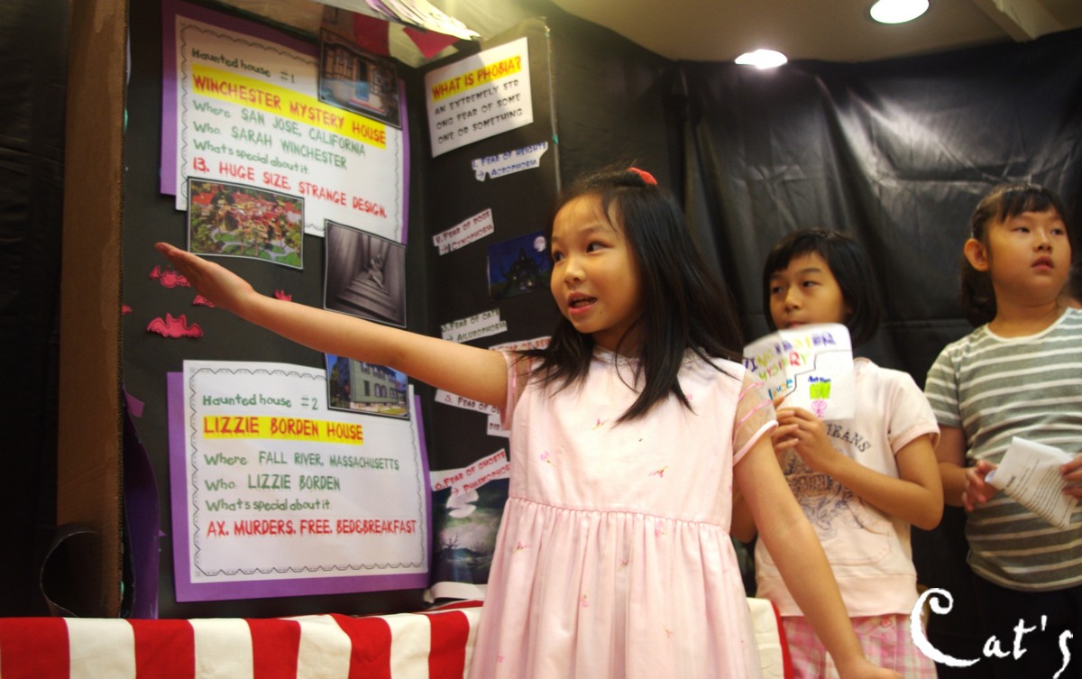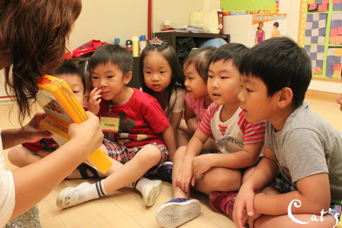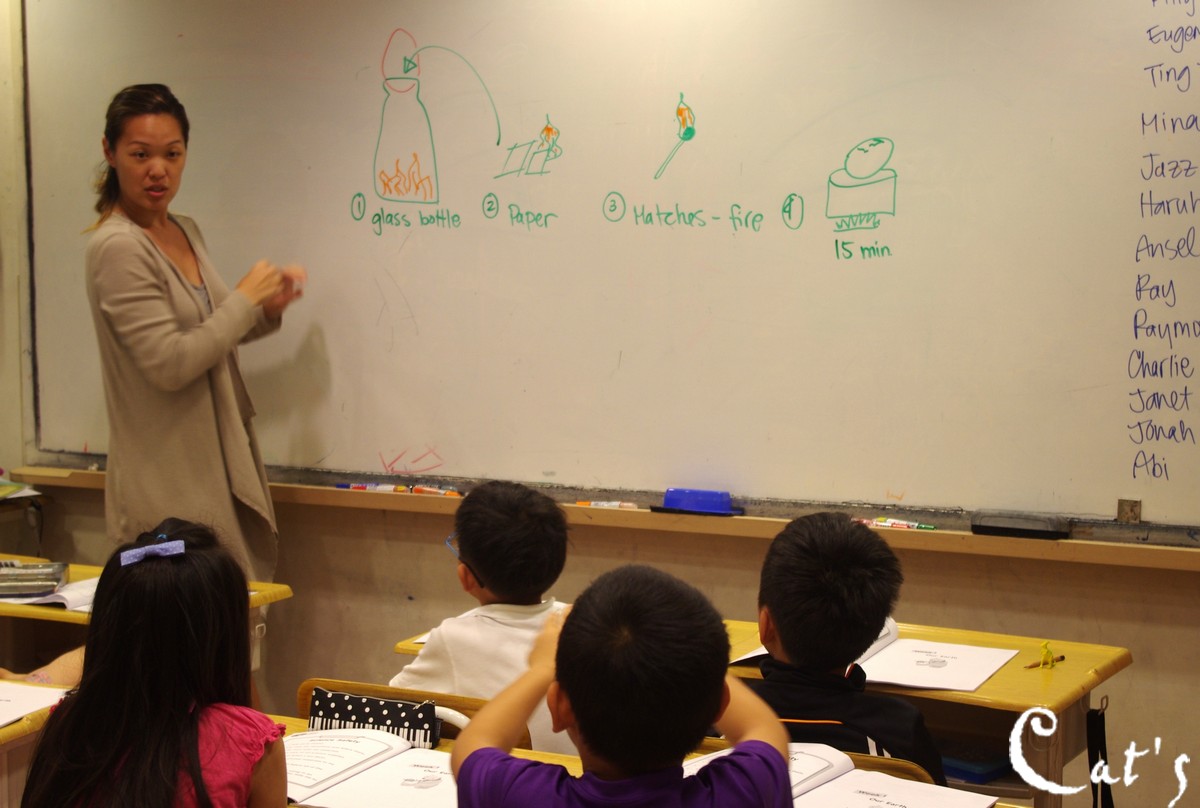 Teacher Joe 班用有趣的方式做介紹,像紙偶在布幕內表演.