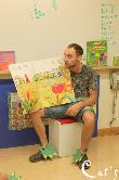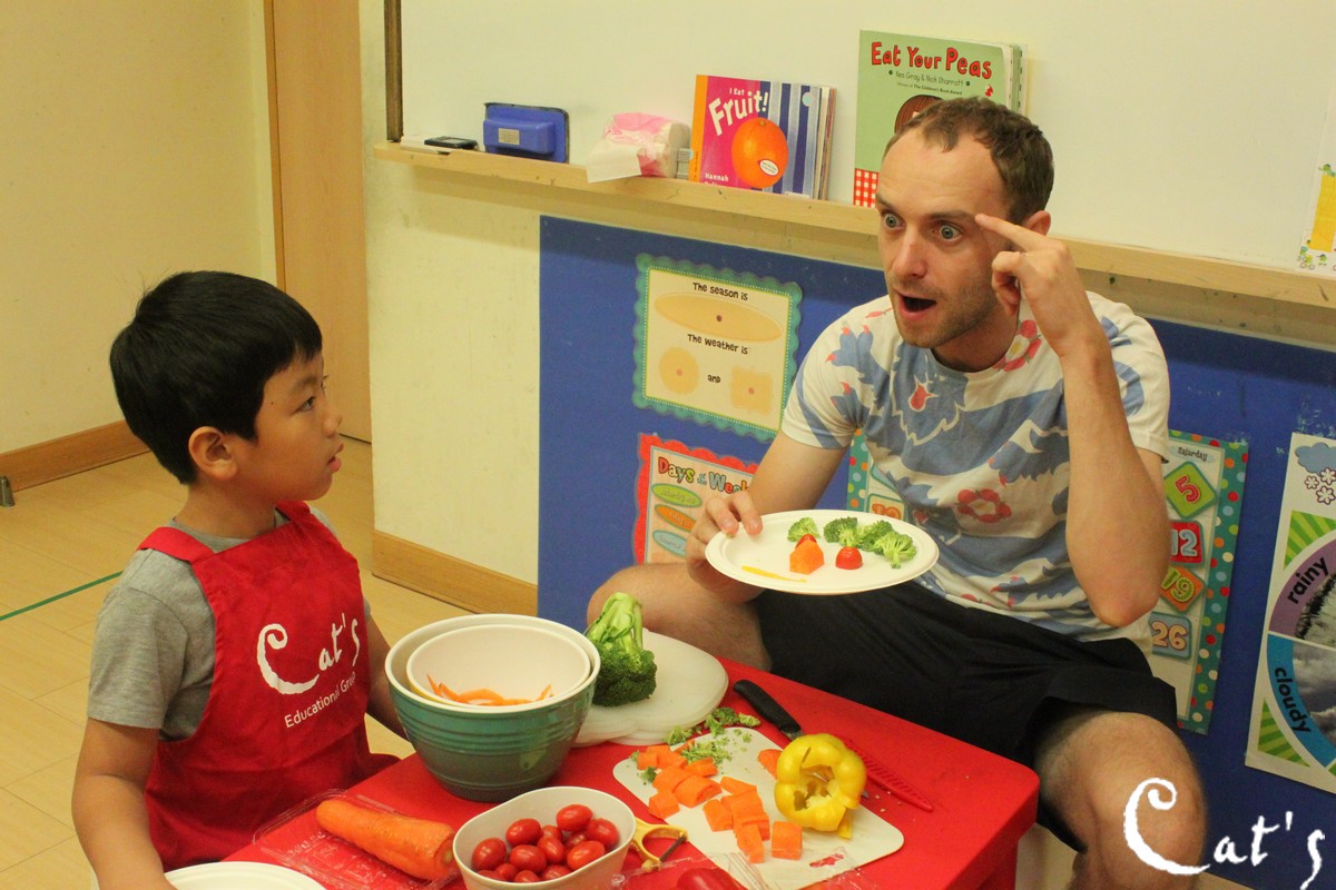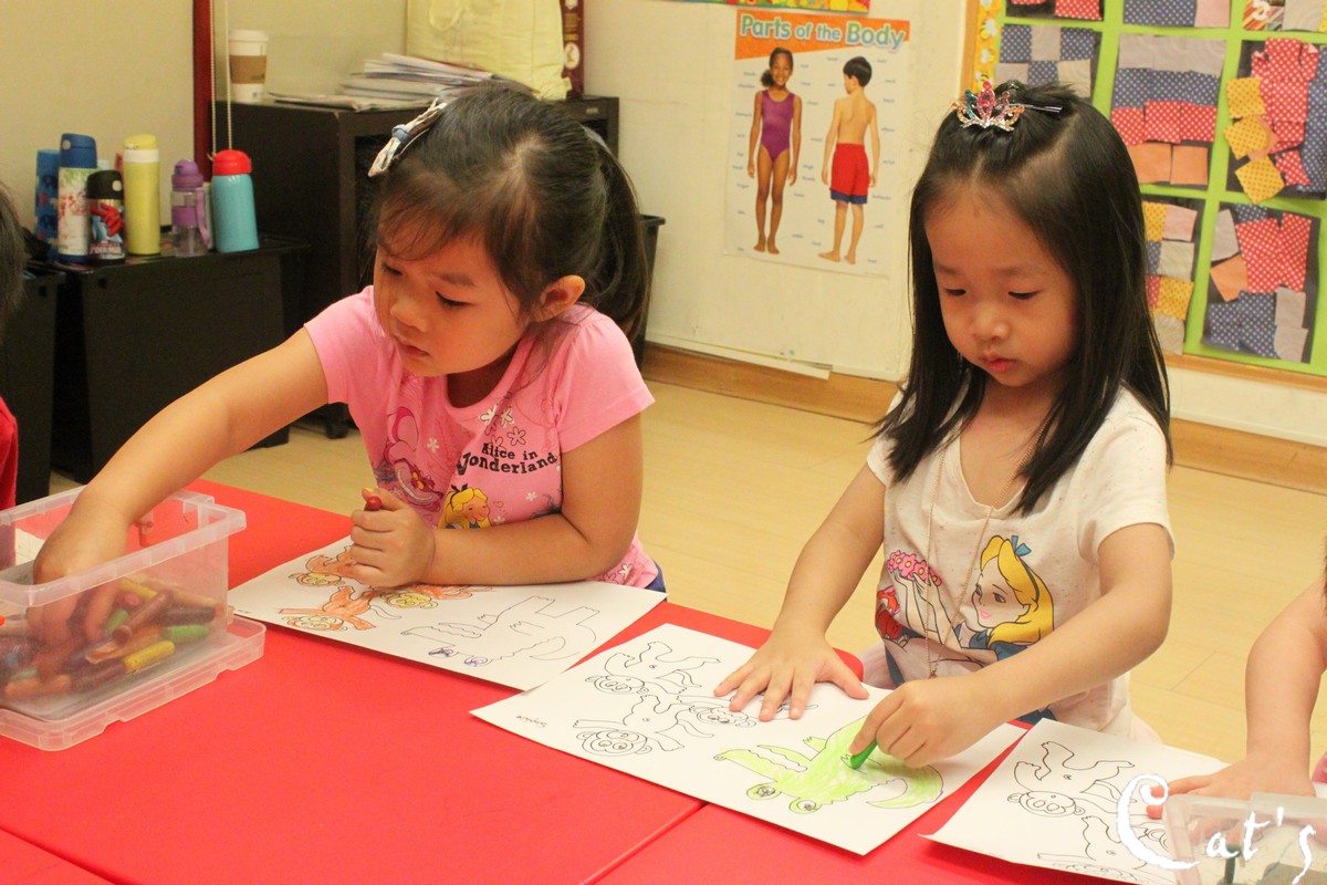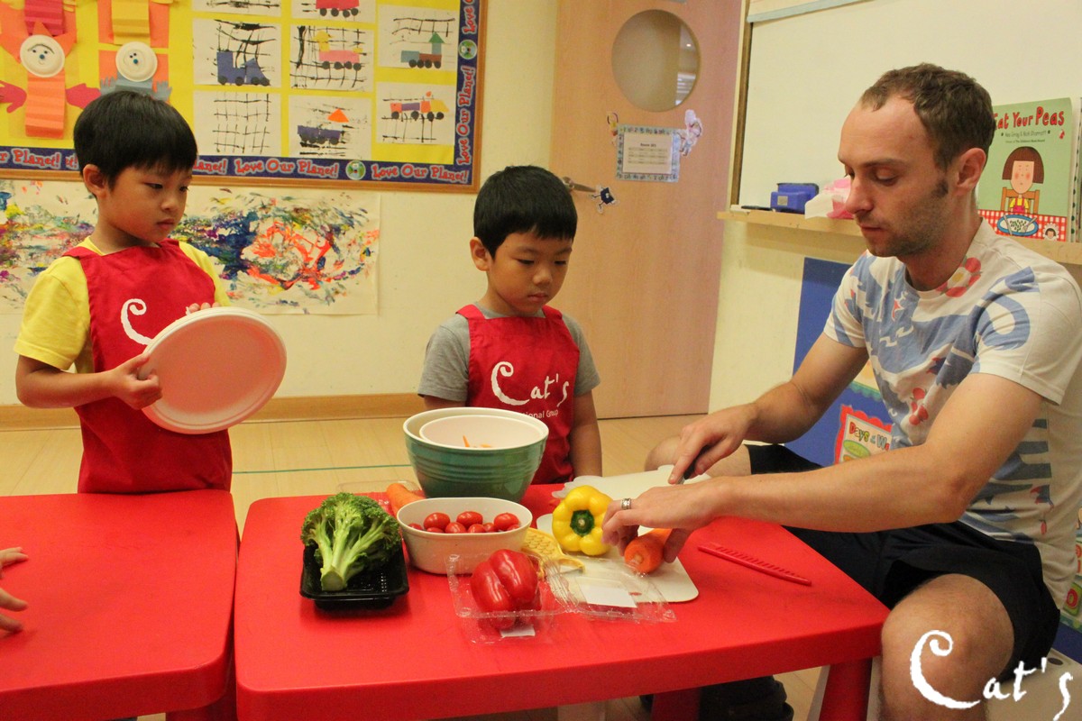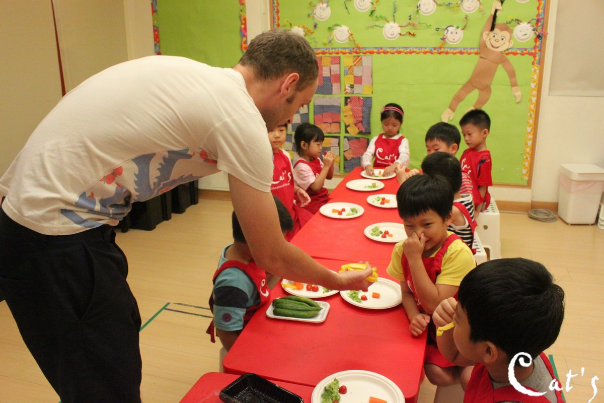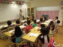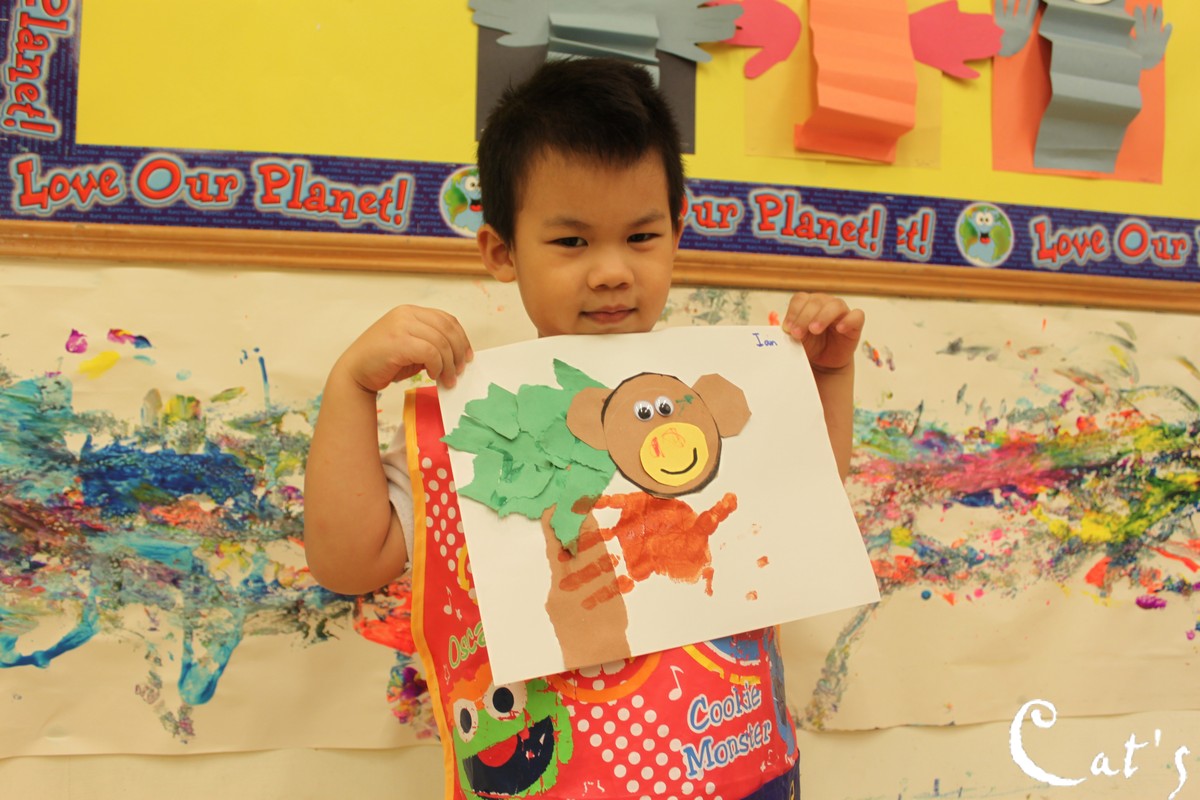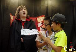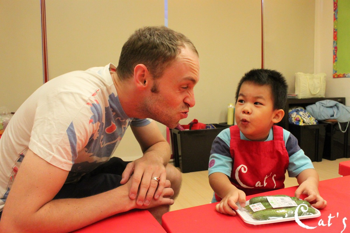 Teacher Joe 班用有趣的方式做介紹,像紙偶在布幕內表演.