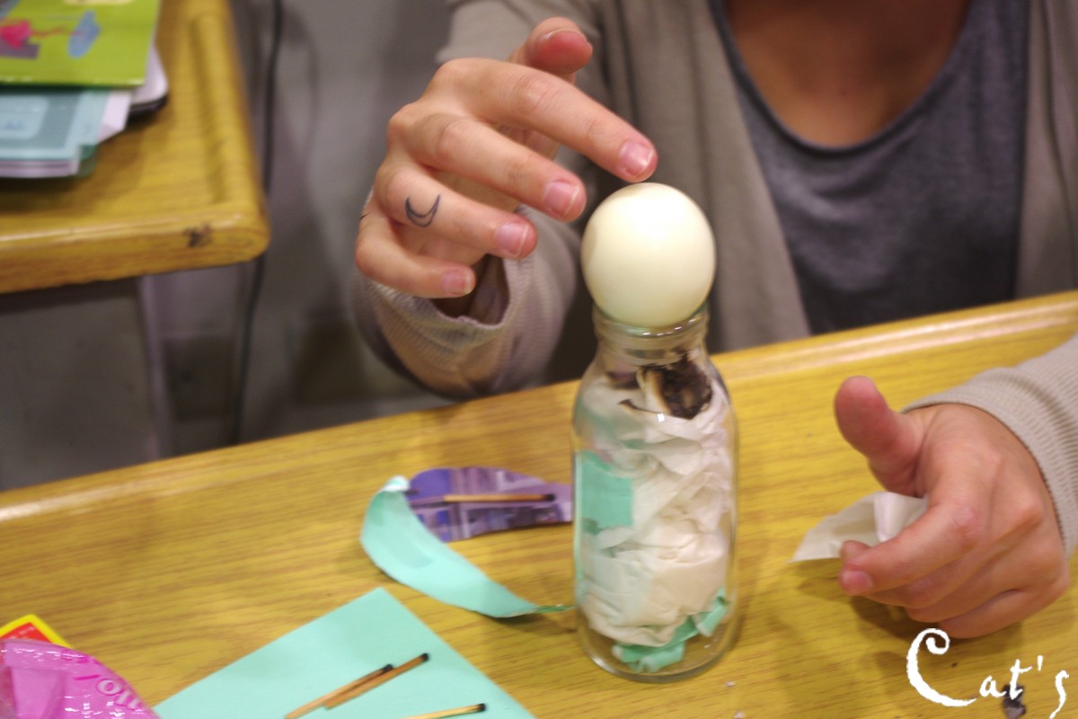 其實主材料很簡單!~ 就是 蛋,玻璃瓶,可燃燒的材料.