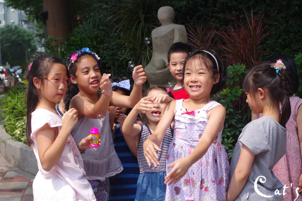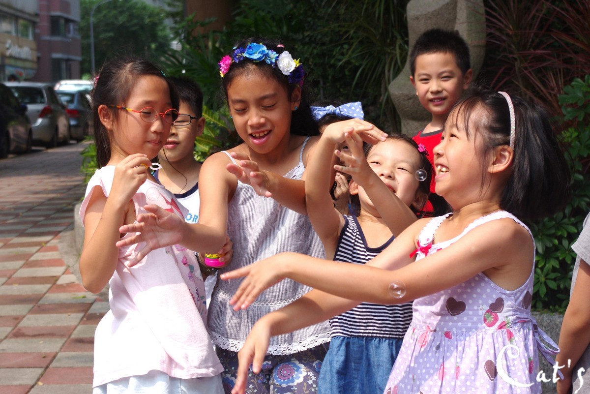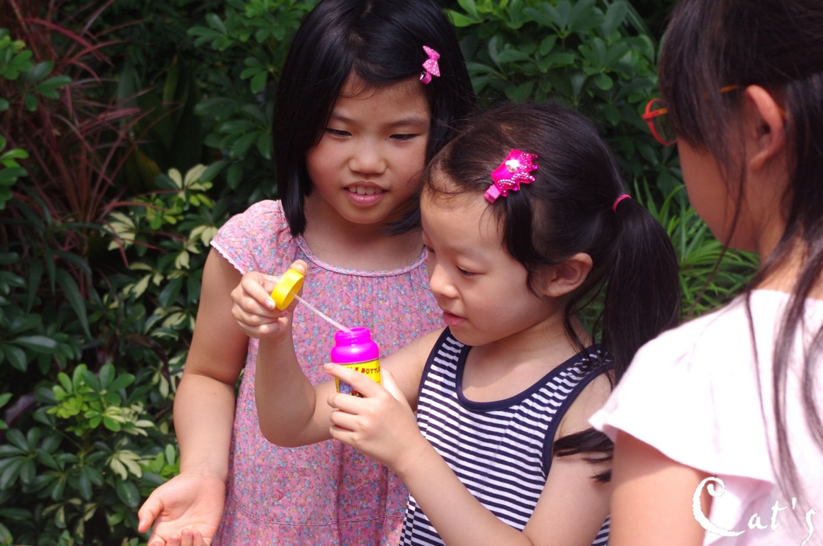 接著,小孩們玩起吹泡泡了~