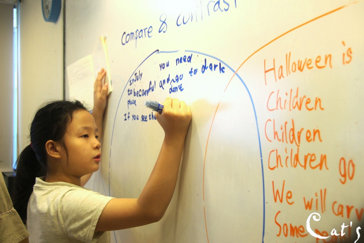 用兩個圓形區分 相同處 及 不同的地方, 也鼓勵孩子寫下想法