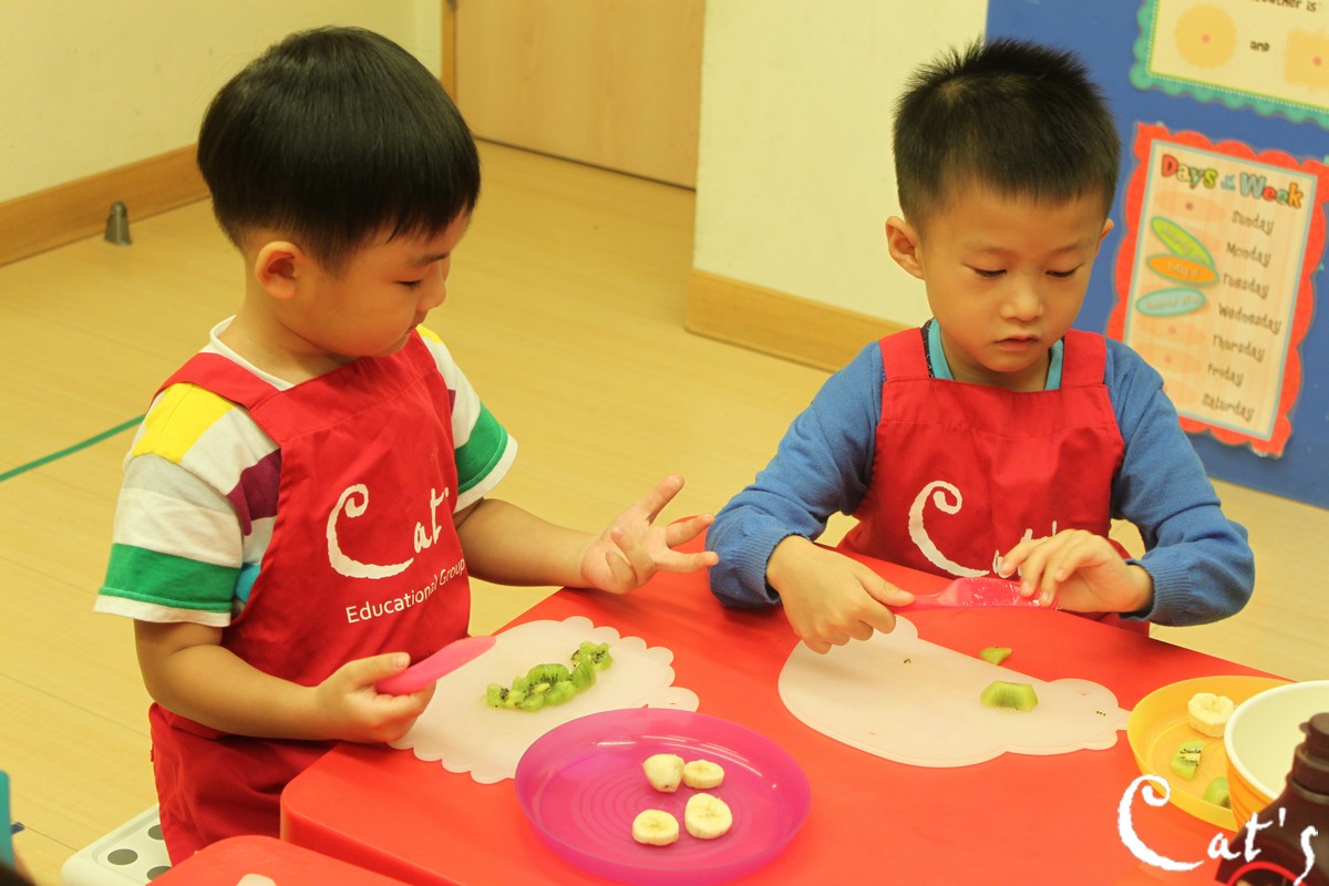 I cut banana and kiwi.
