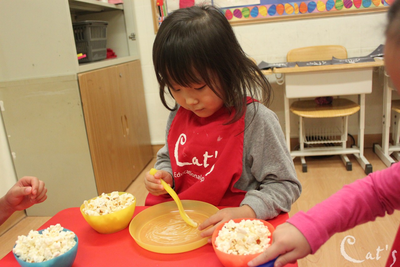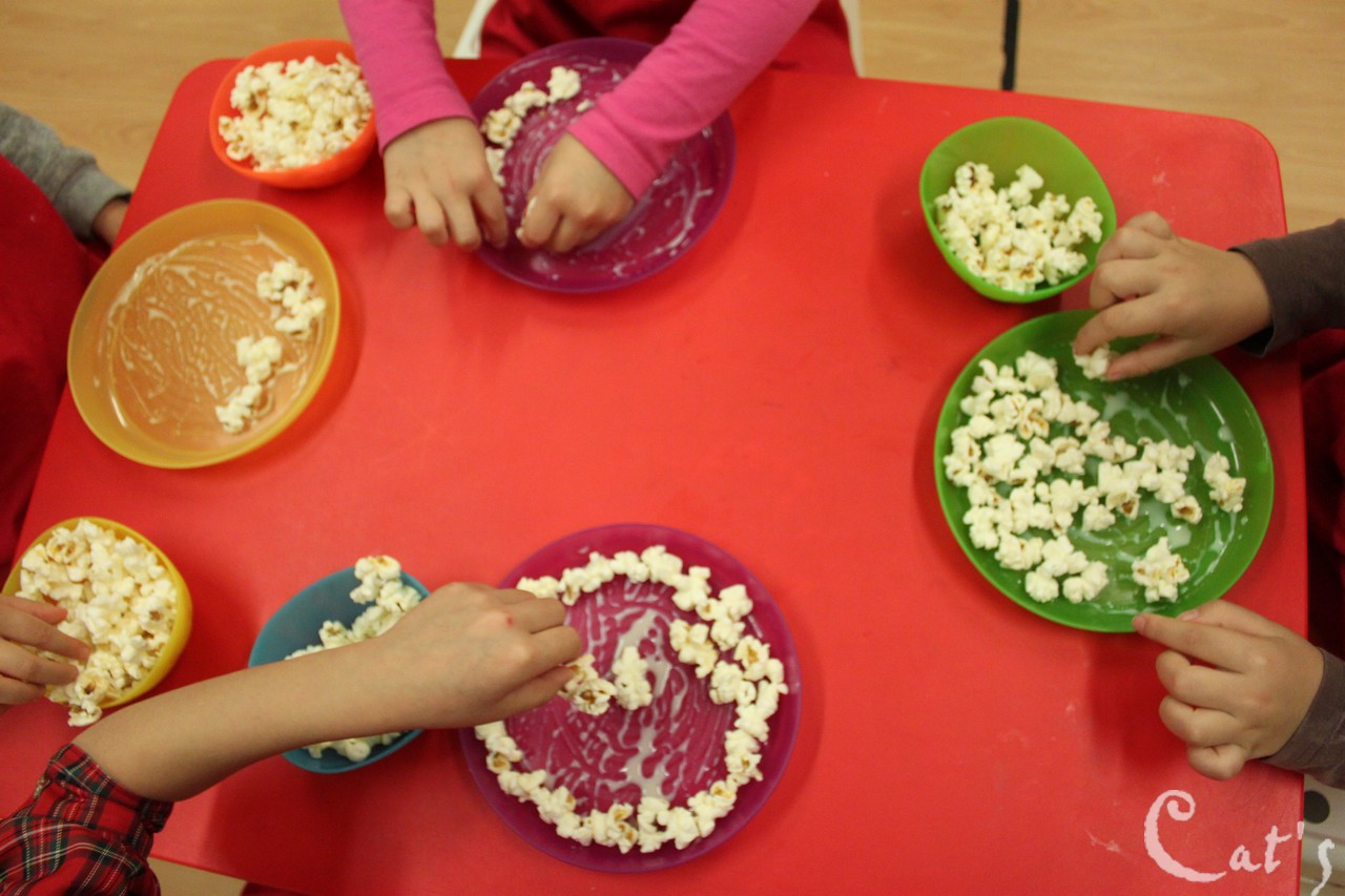 塗上煉乳以後就能把爆米花黏上去搂~~~