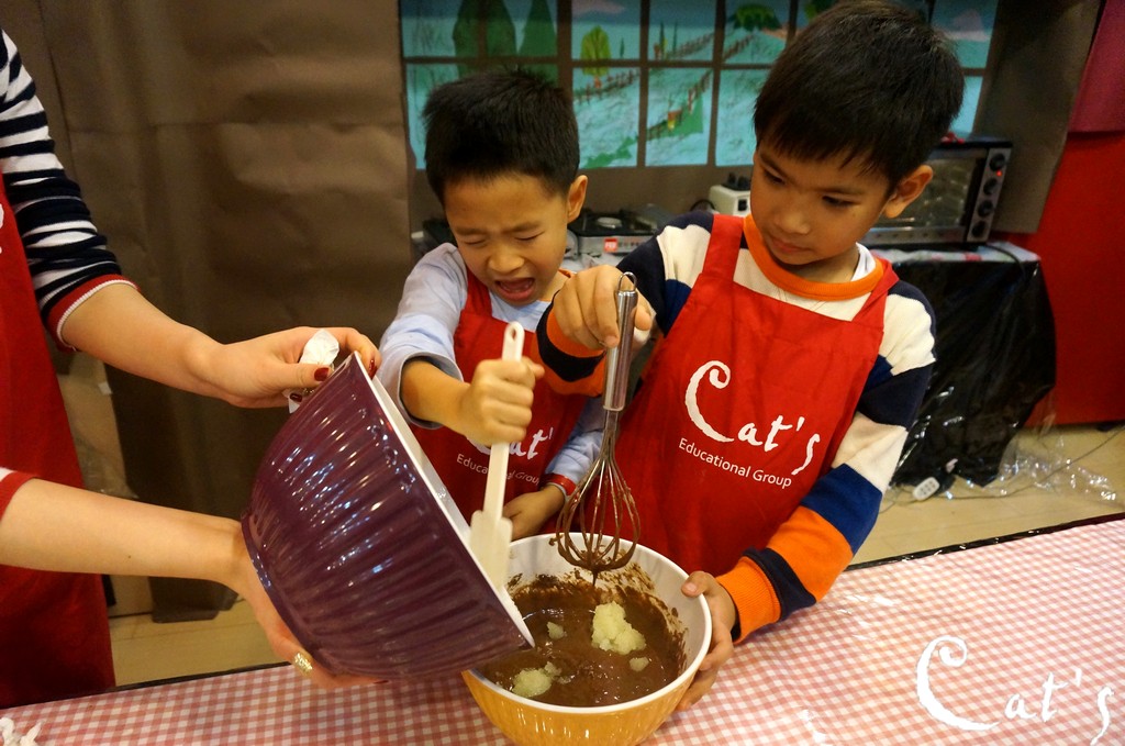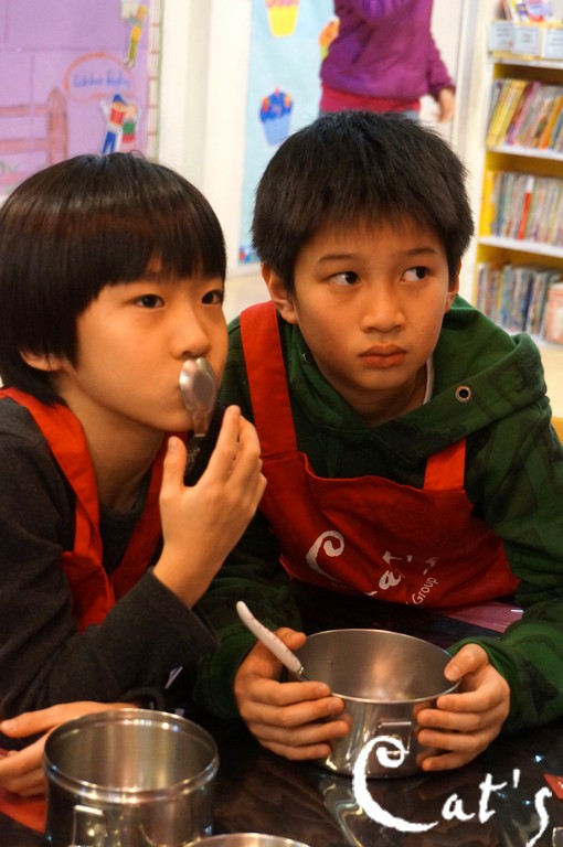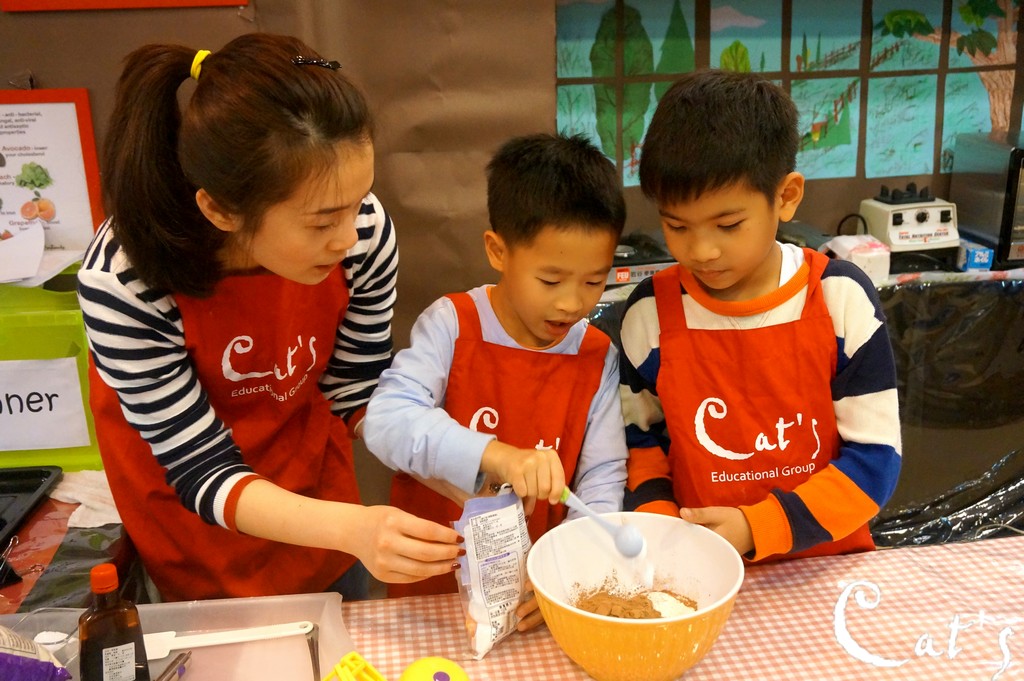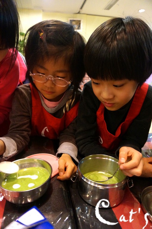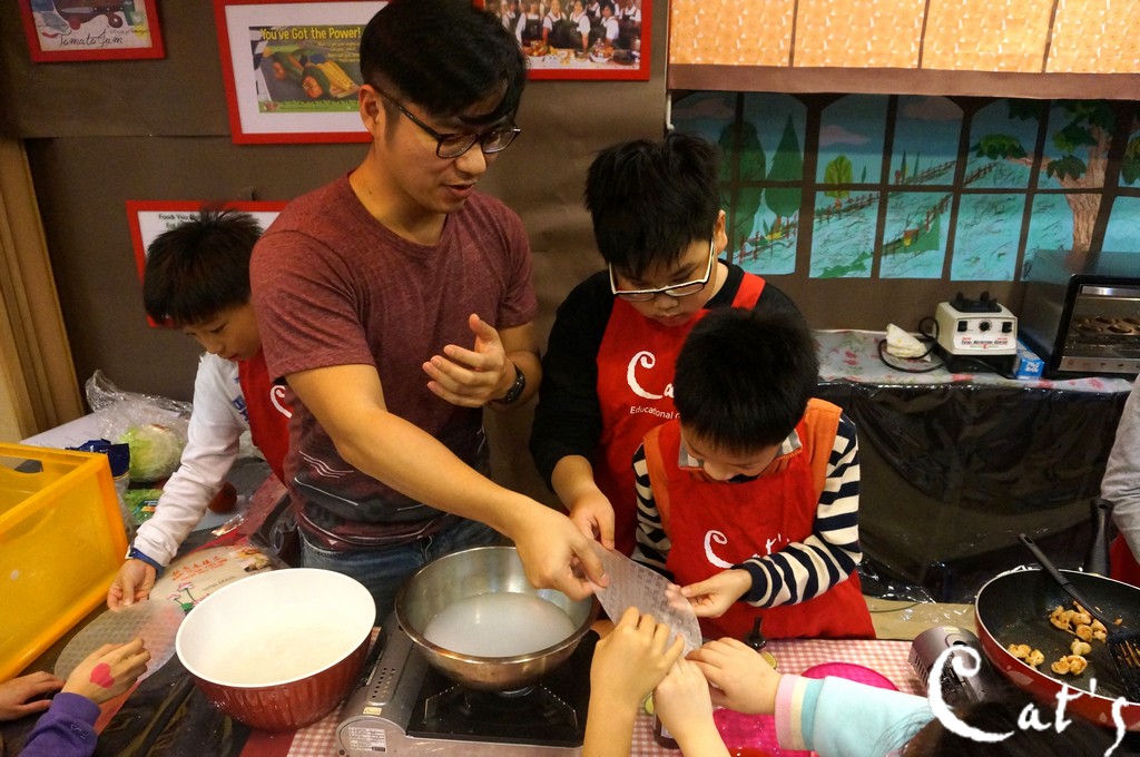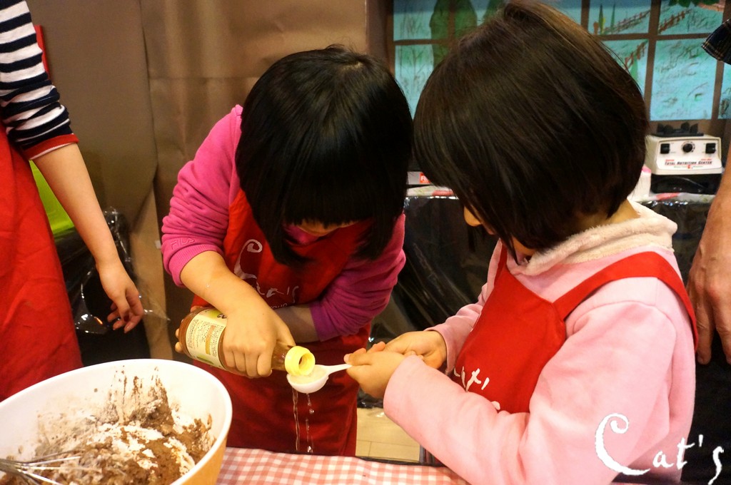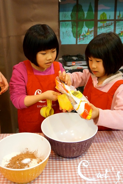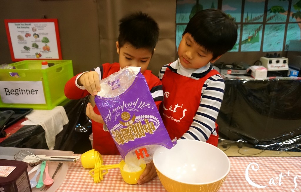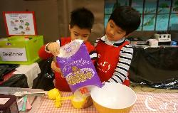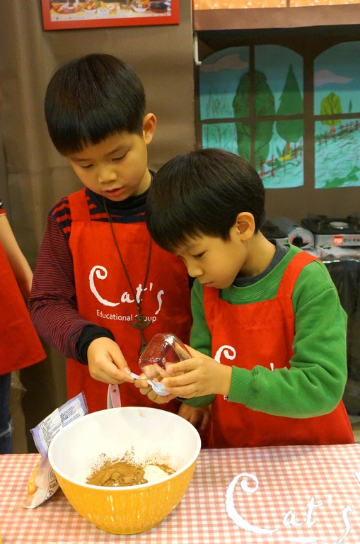 Jazz and Ben adding a teaspoon of baking soda to the mixture