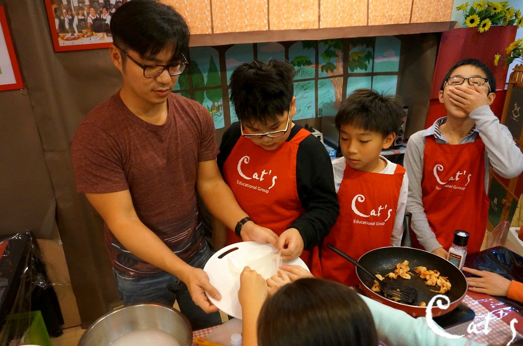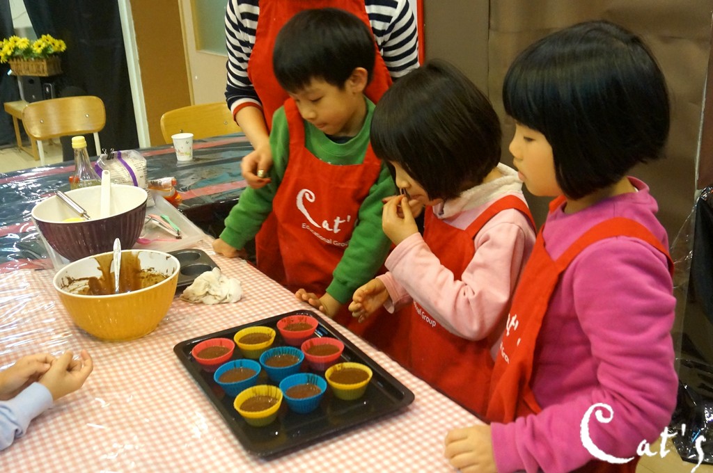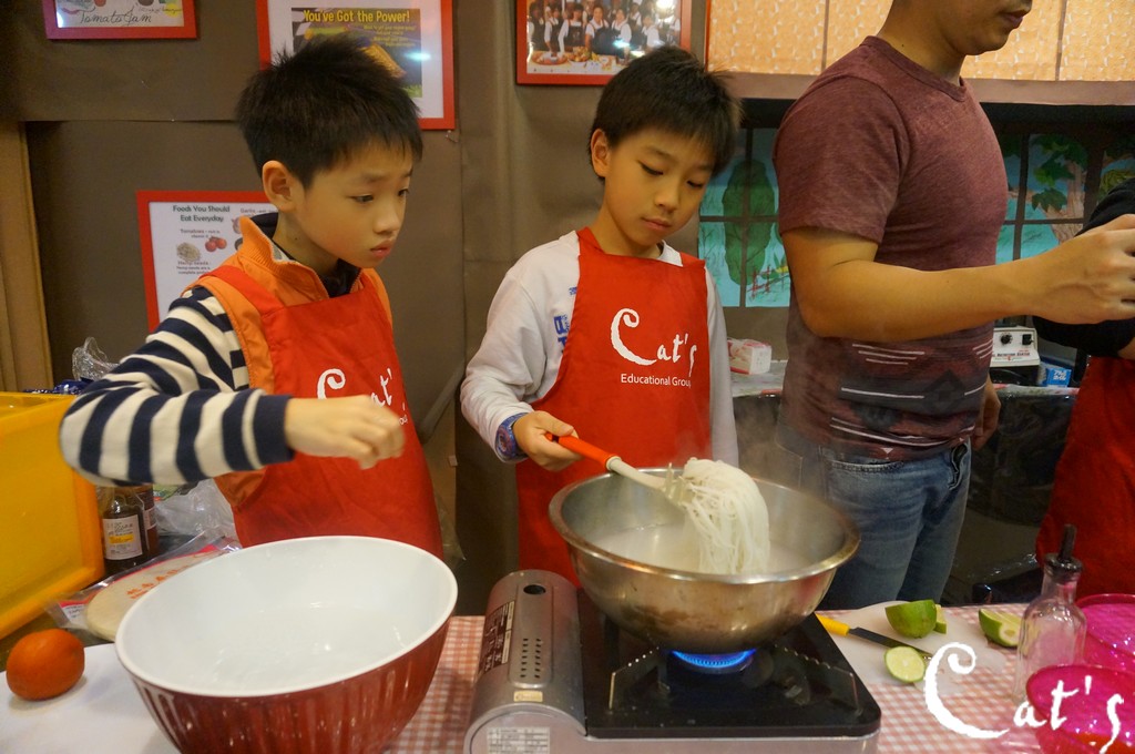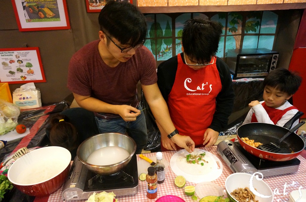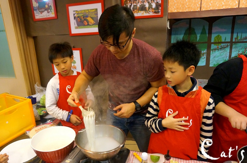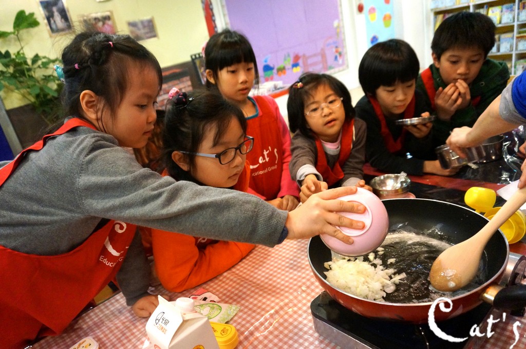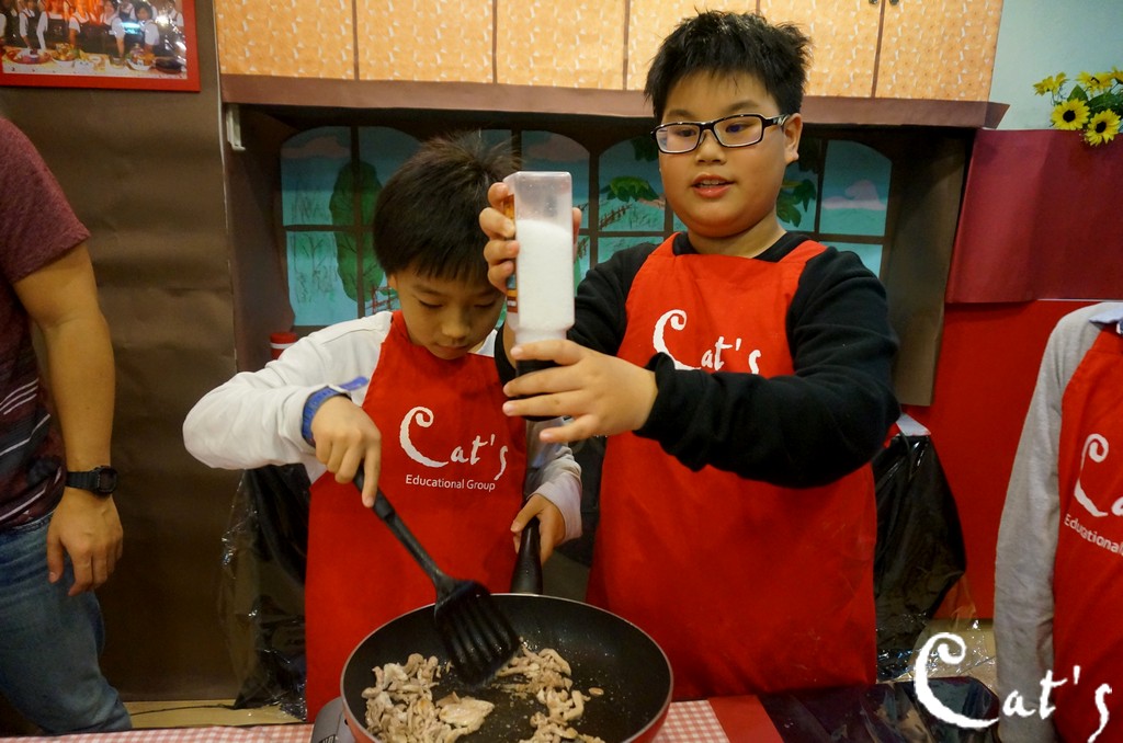 Jazz and Ben adding a teaspoon of baking soda to the mixture