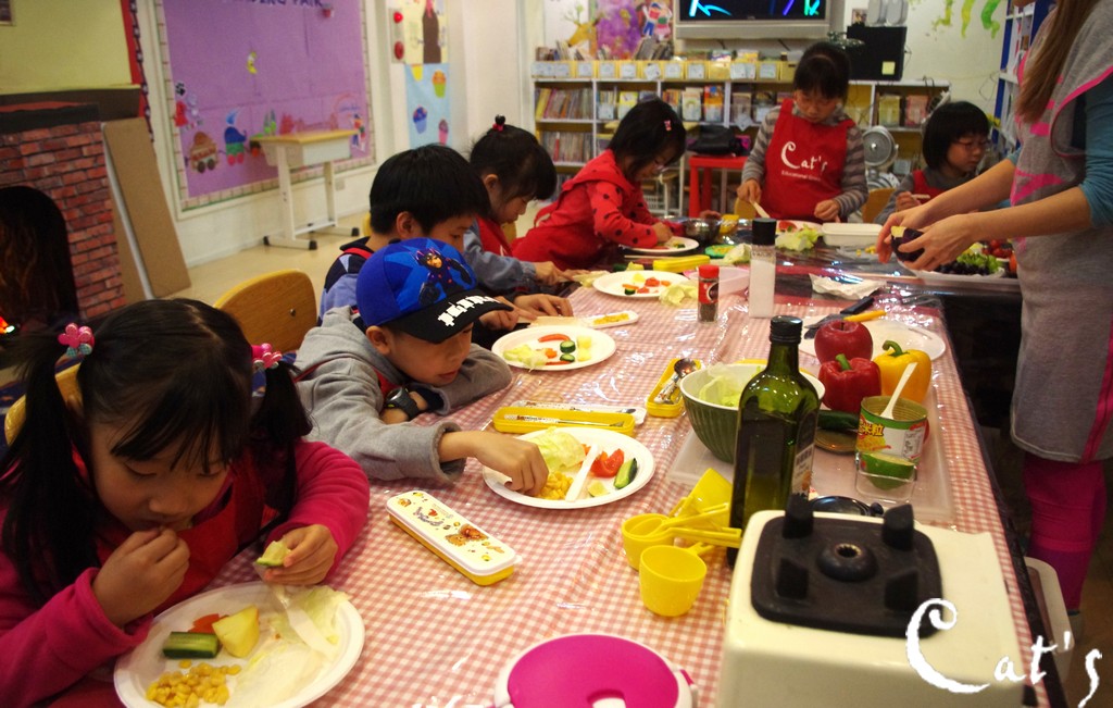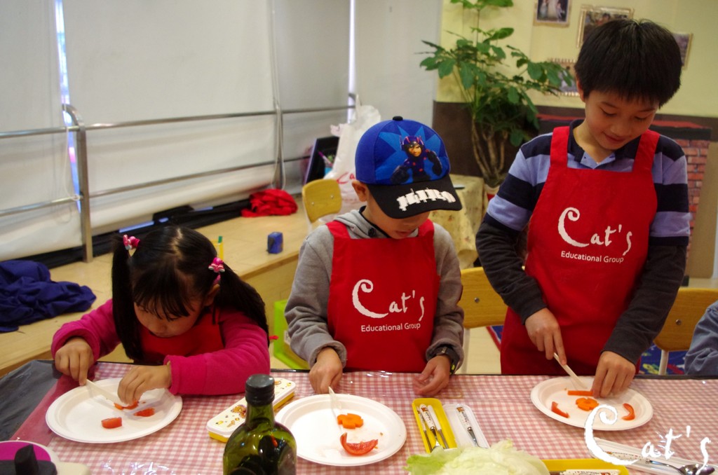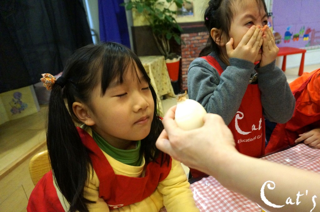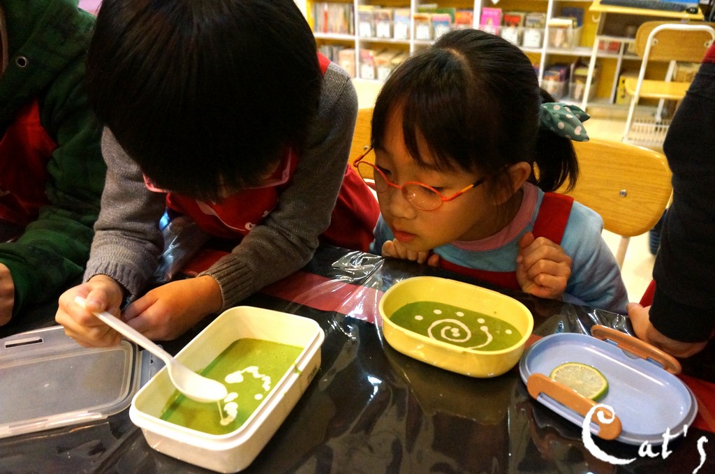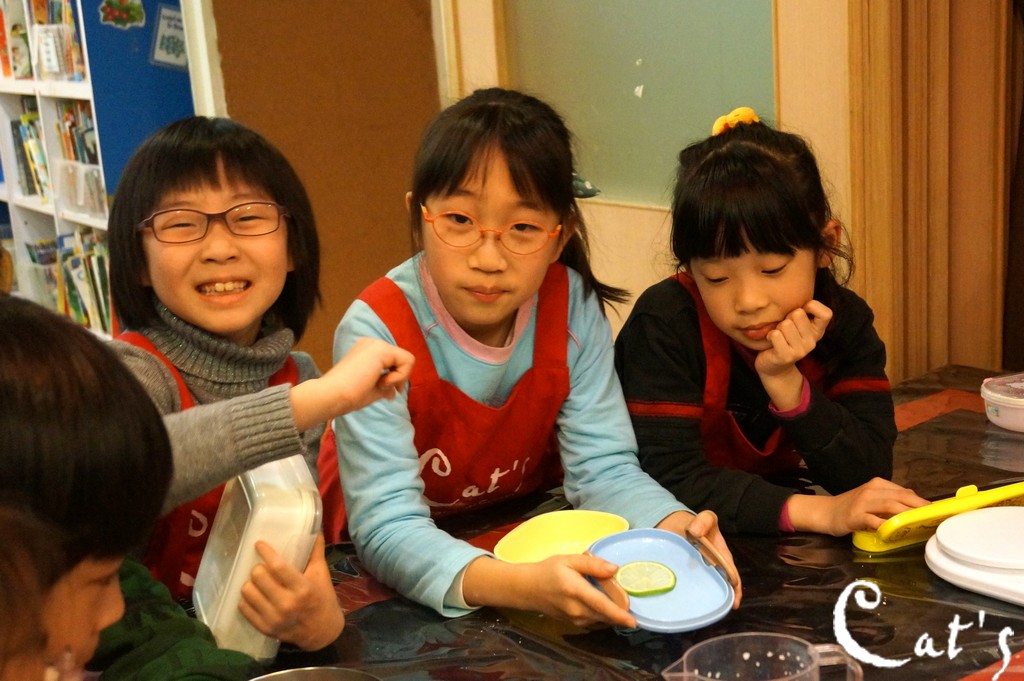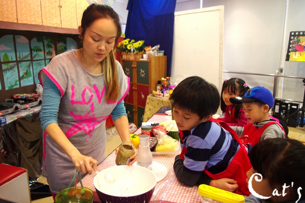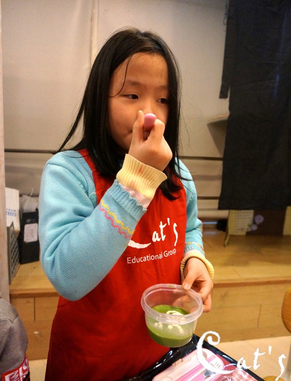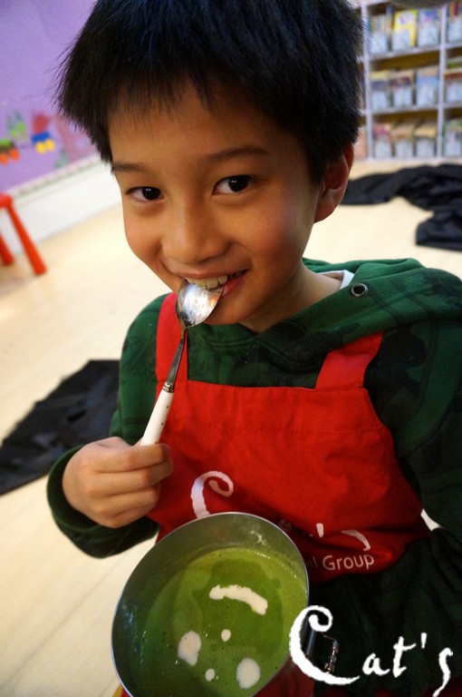 材料: 番茄(臉) 柳丁(太陽) 紅蘿蔔(太陽跟觸角跟腳) 葡萄(毛毛蟲身體) 生菜(草) 葡萄乾(眼睛)