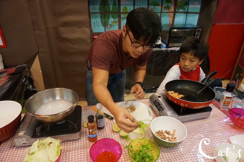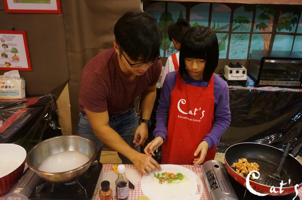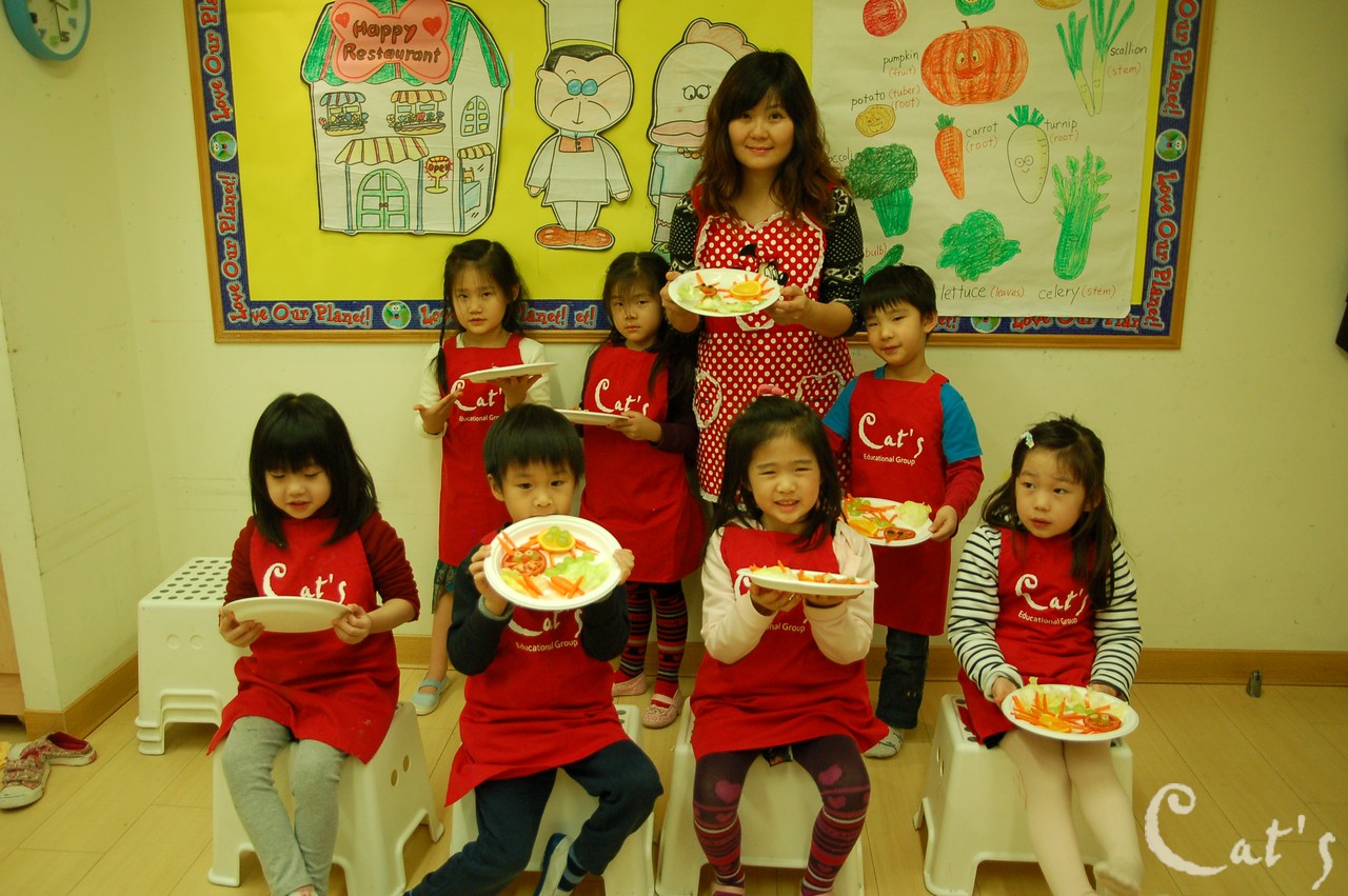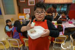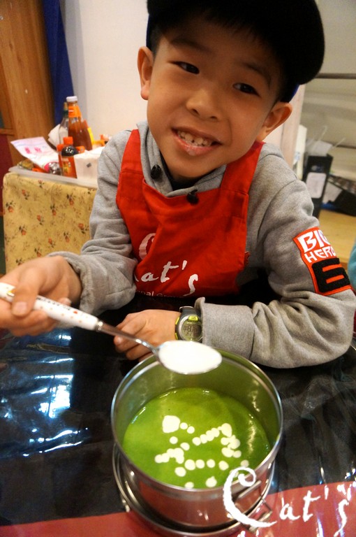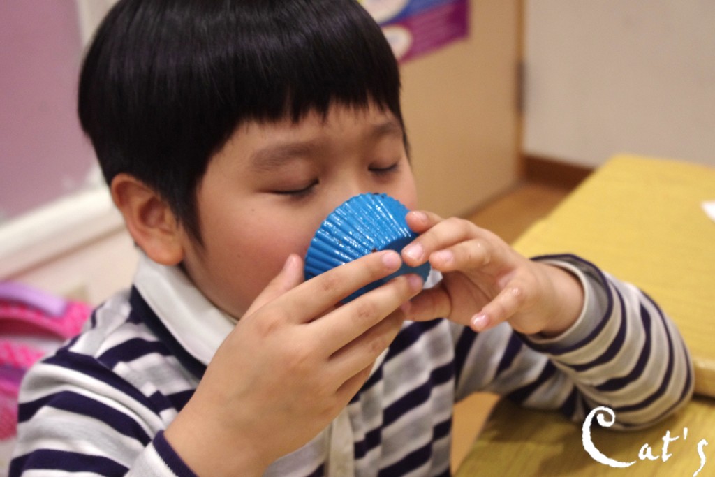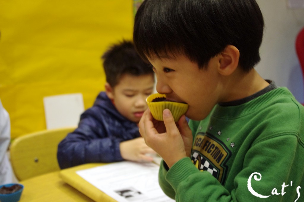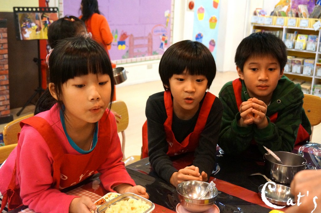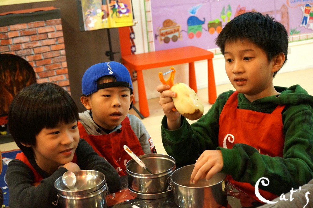 材料: 番茄(臉) 柳丁(太陽) 紅蘿蔔(太陽跟觸角跟腳) 葡萄(毛毛蟲身體) 生菜(草) 葡萄乾(眼睛)