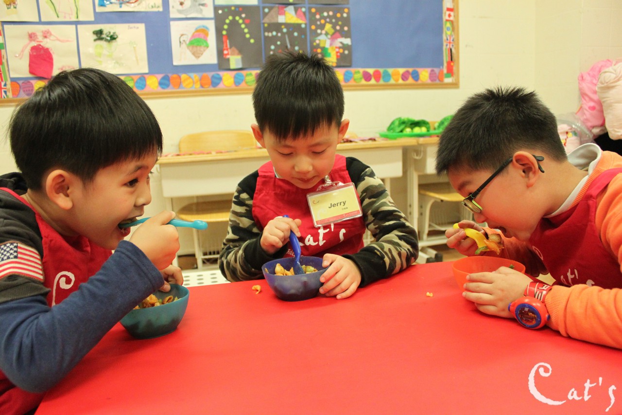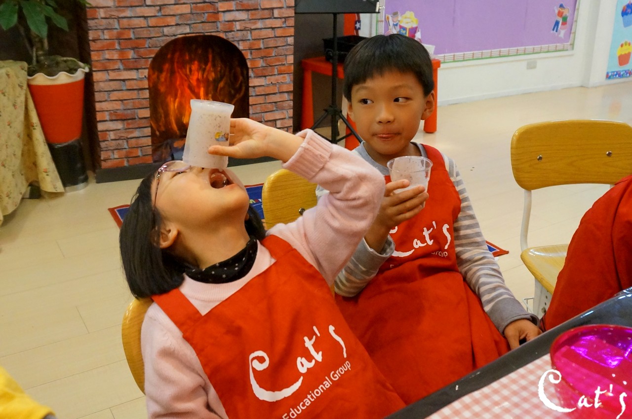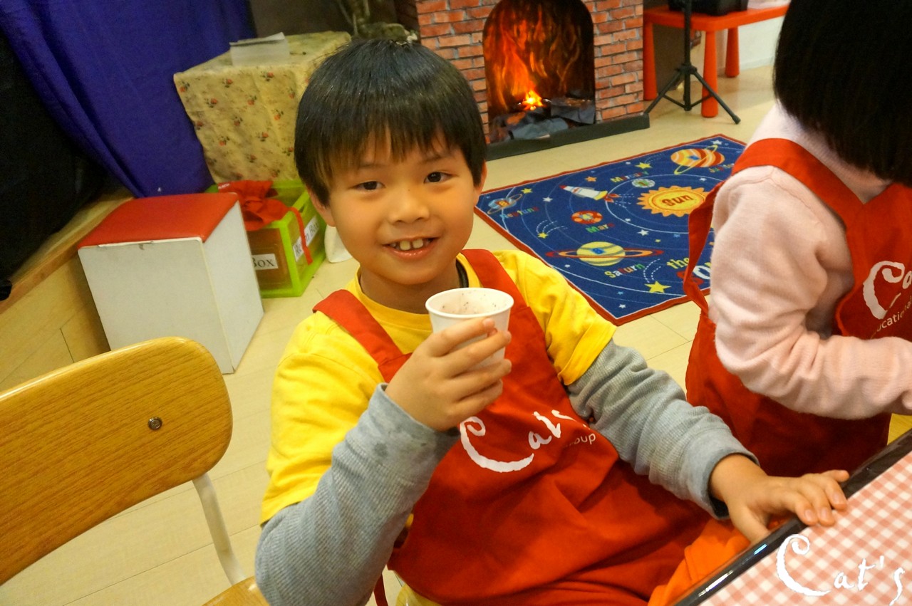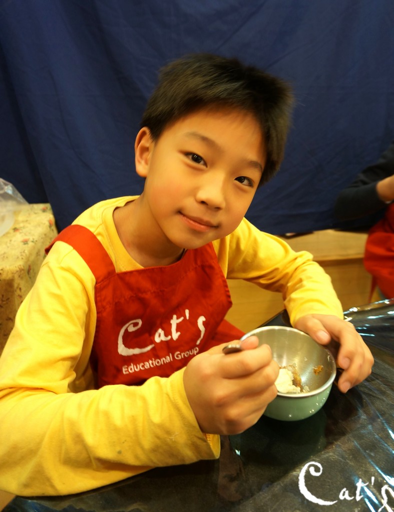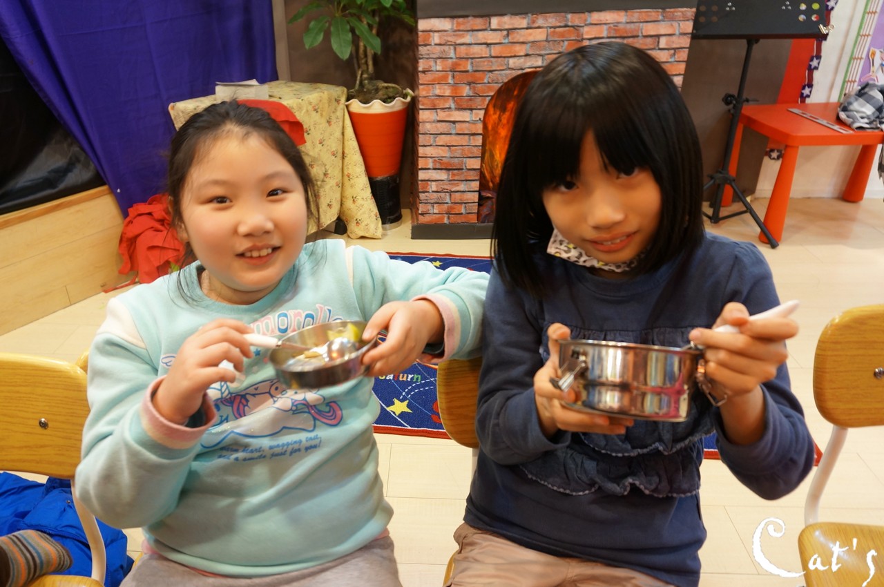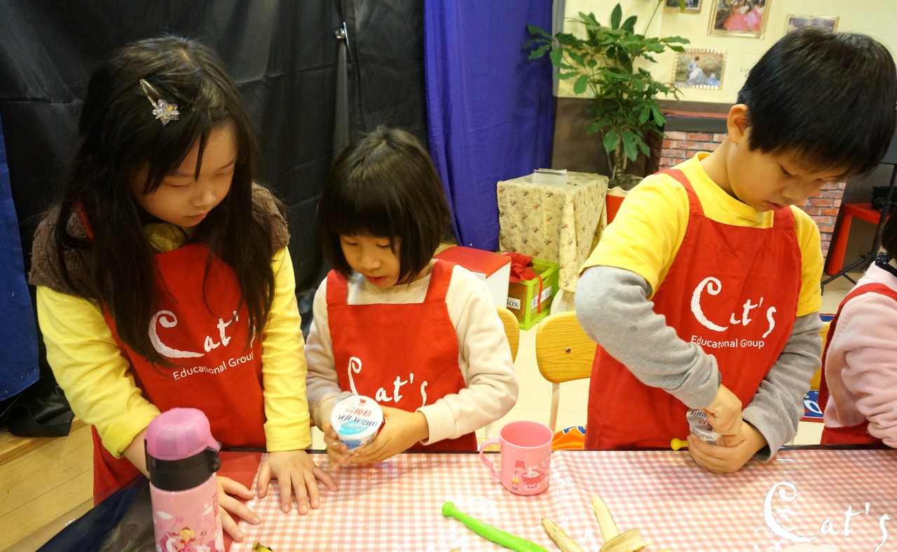 Benny, Sophie and A-bi opening some yoghurt~