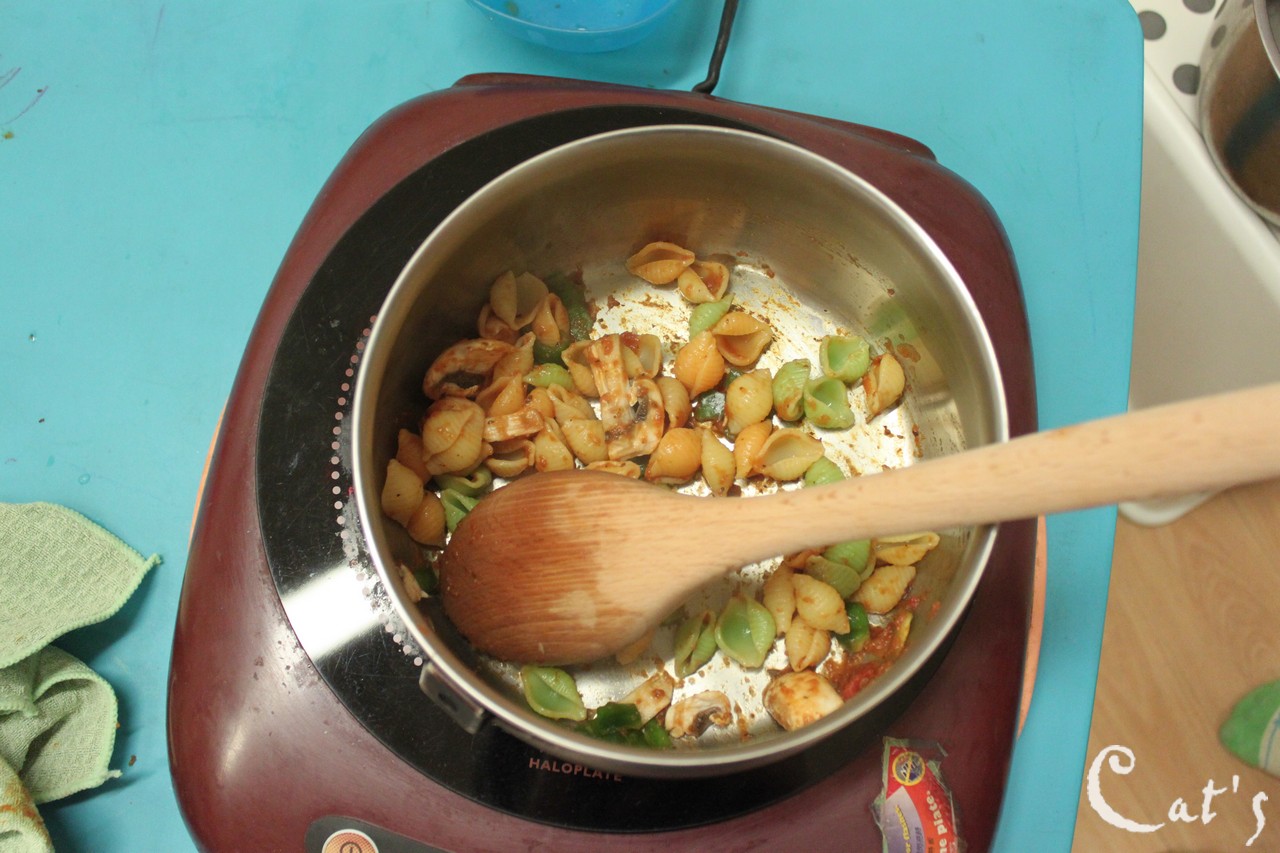 放進蝦蝦還有菜菜~