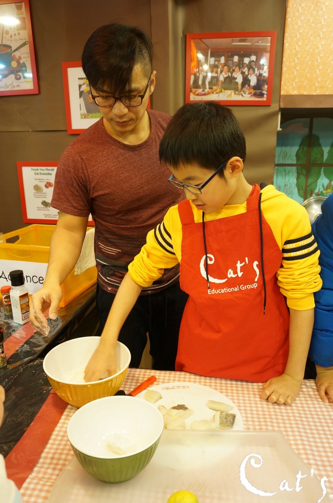 Ethan dredging the fillets thoroughly