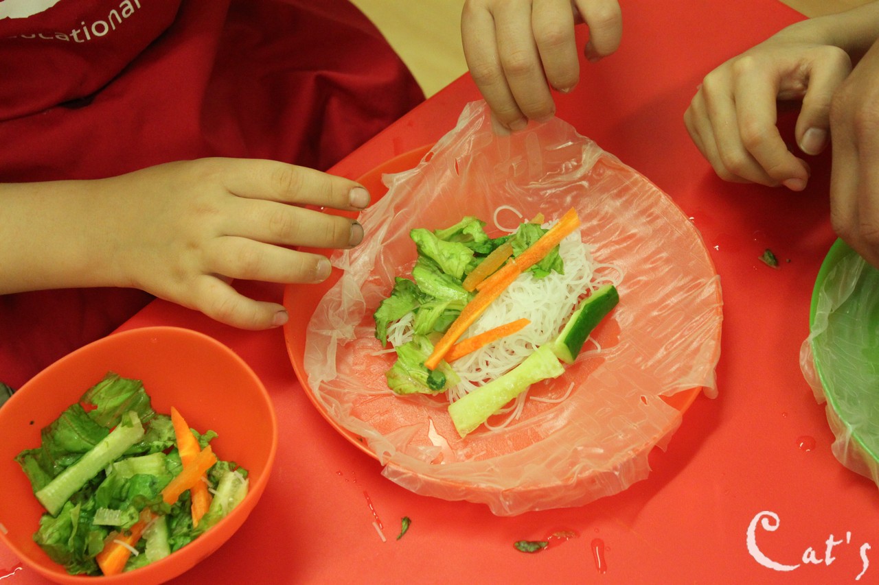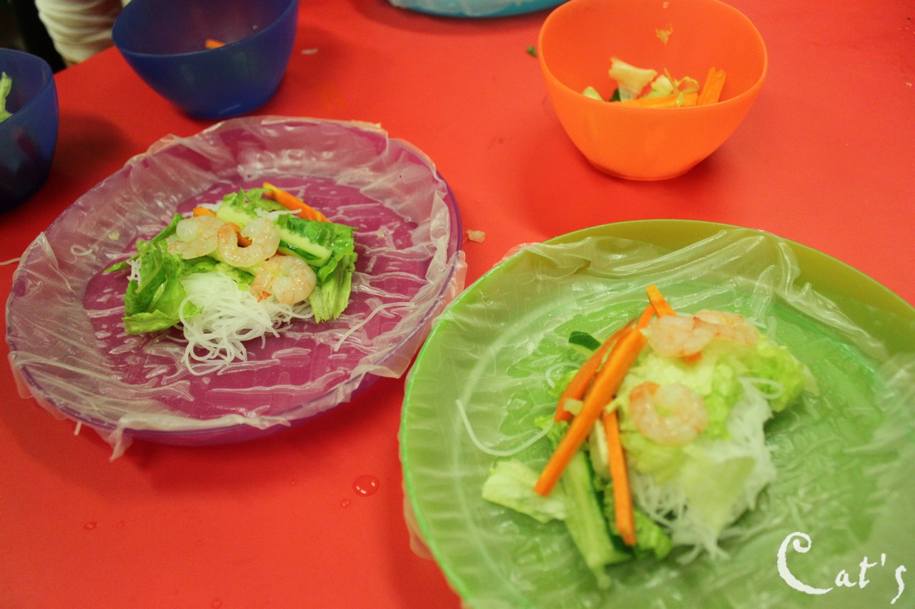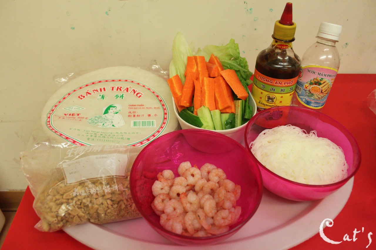 材料:麵線 紅蘿蔔 小黃瓜 生菜 春捲皮 蝦仁