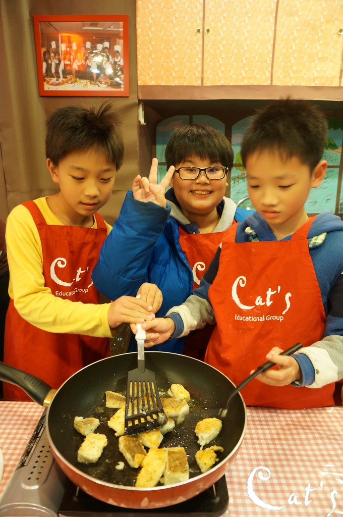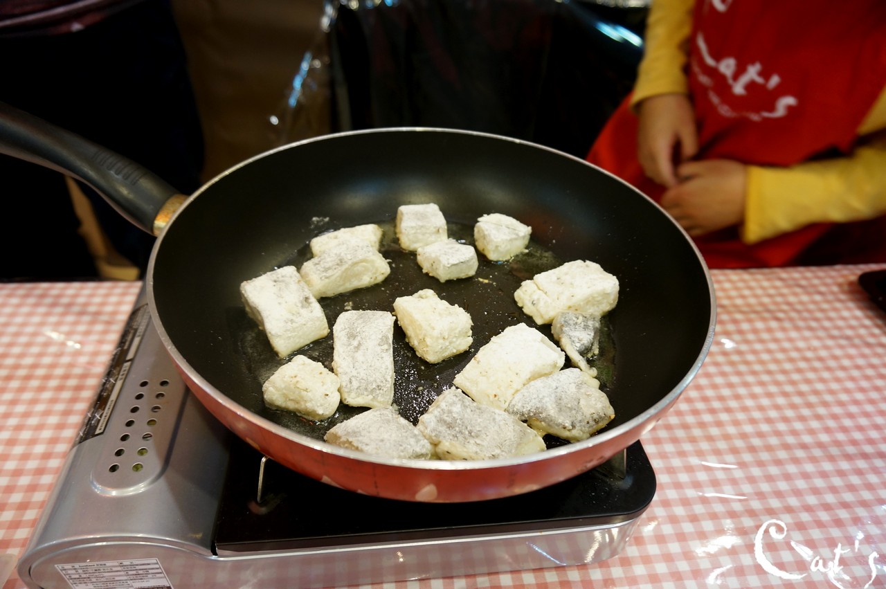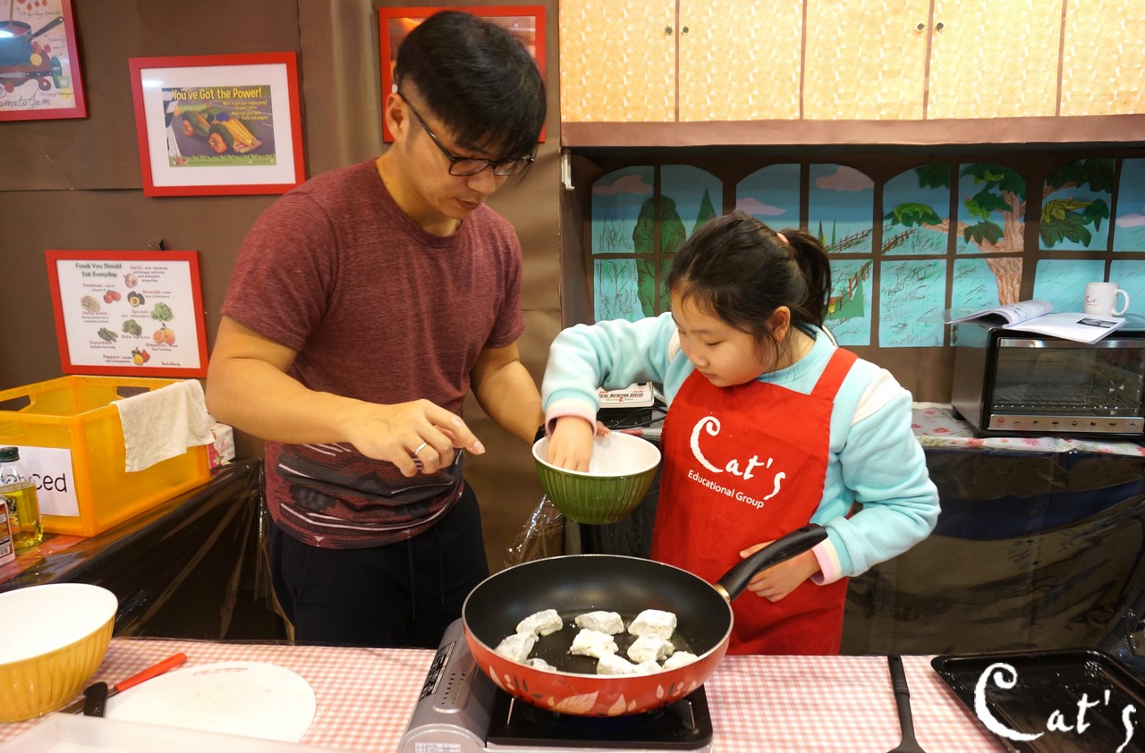 Lilo putting some fillets into the hot skillet carefully