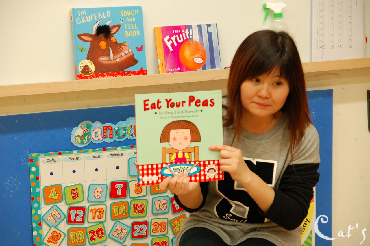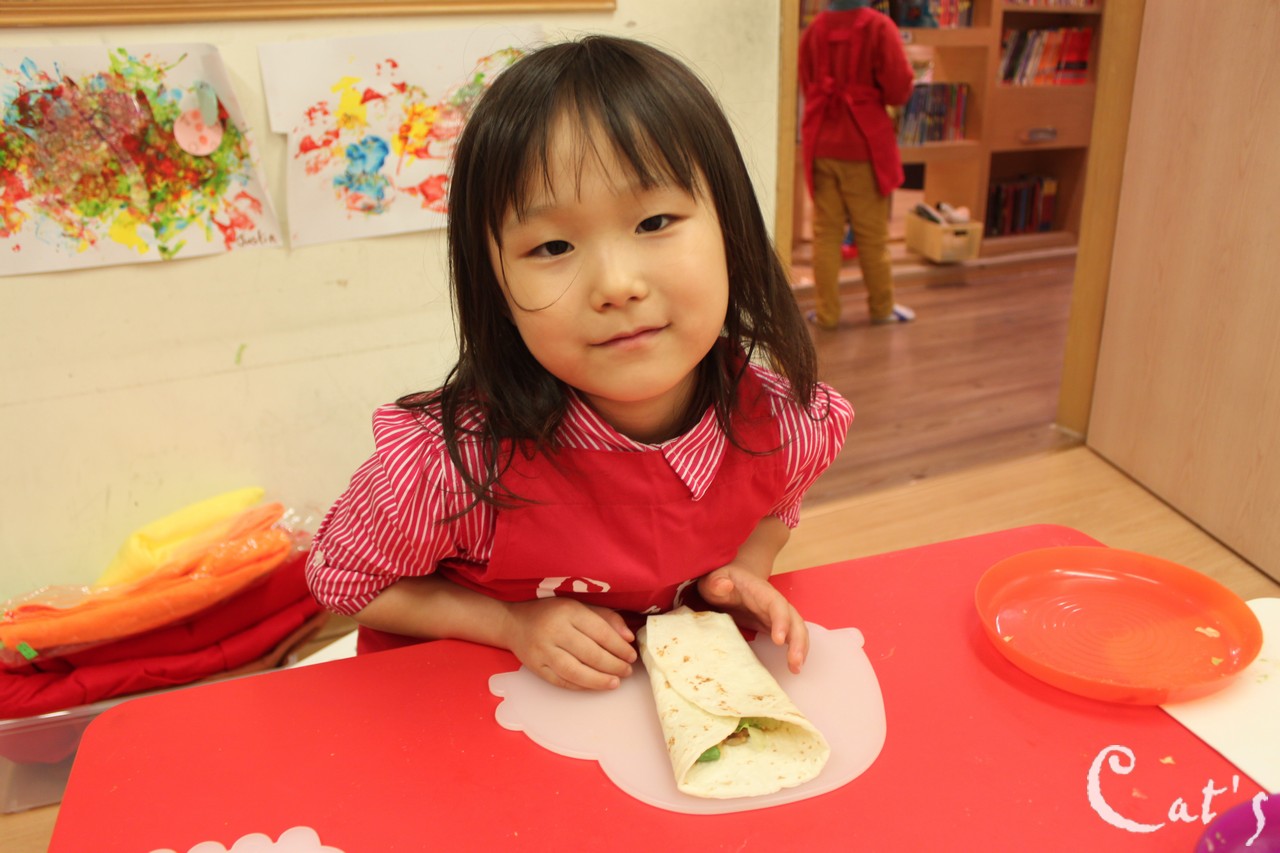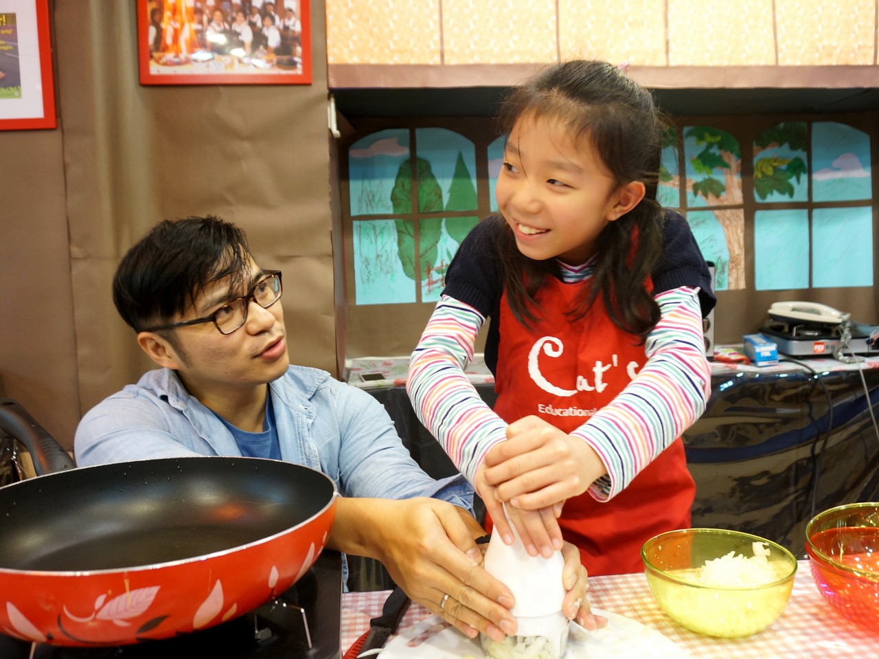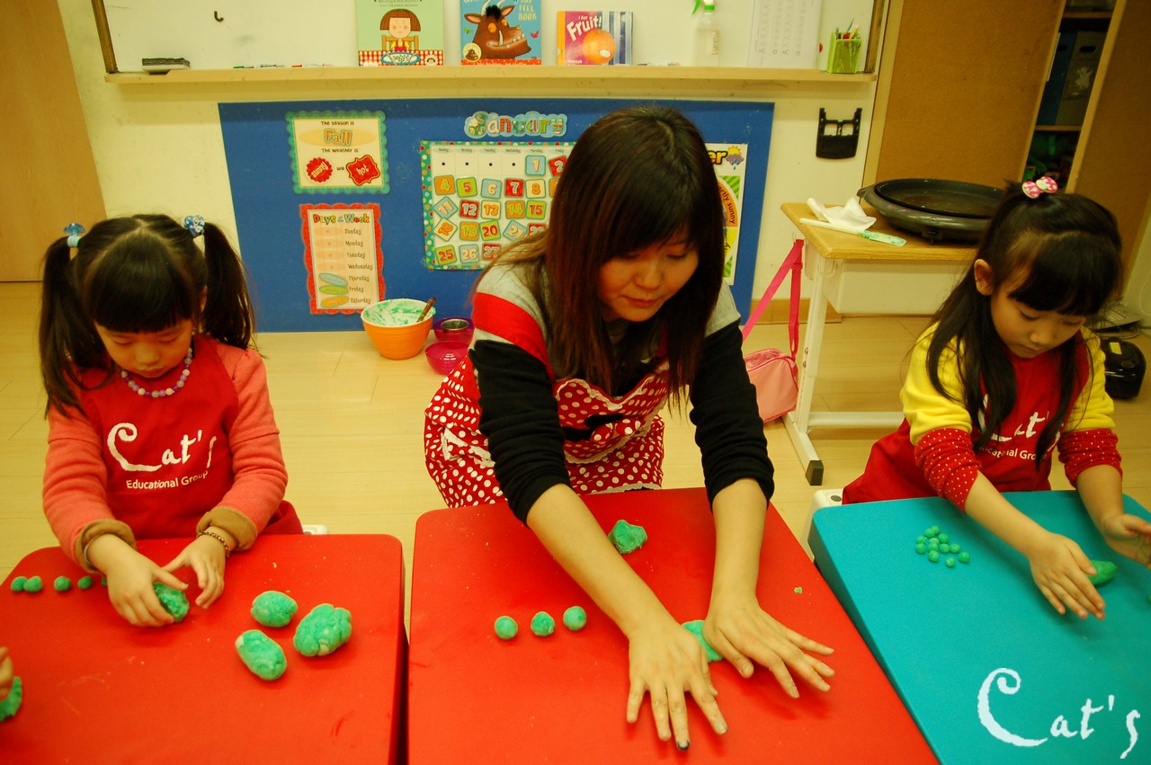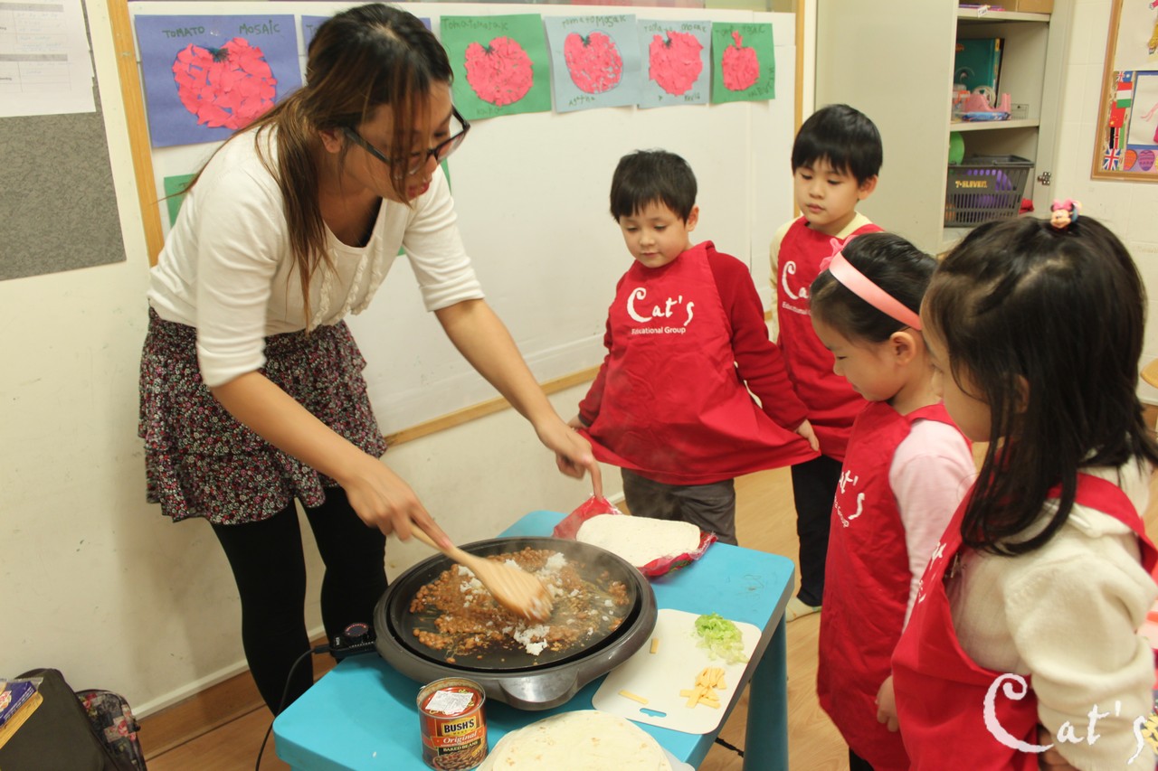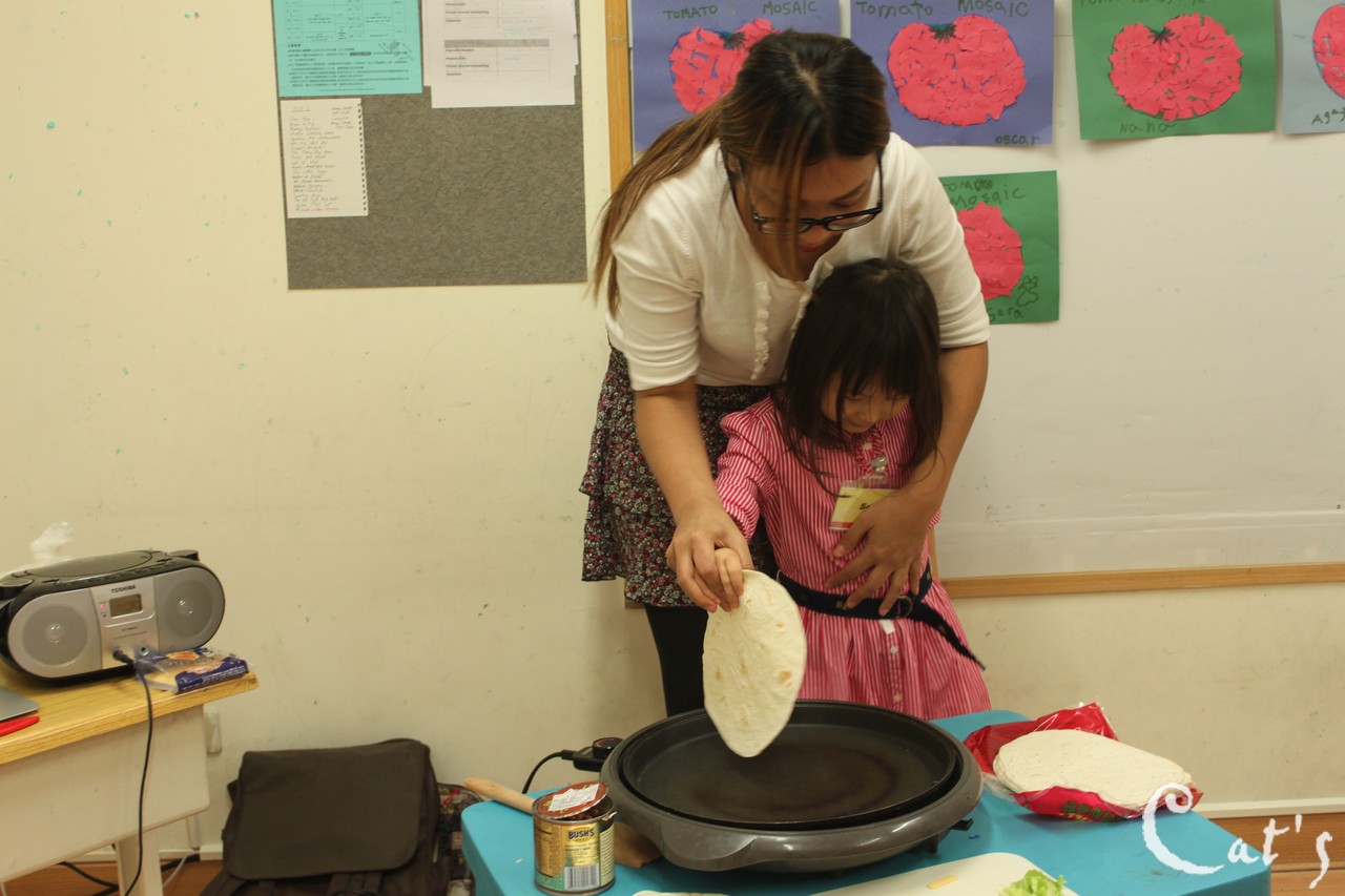 Jazz, Sophie and Kitty taking turns to cut bananas