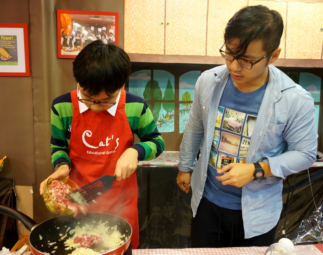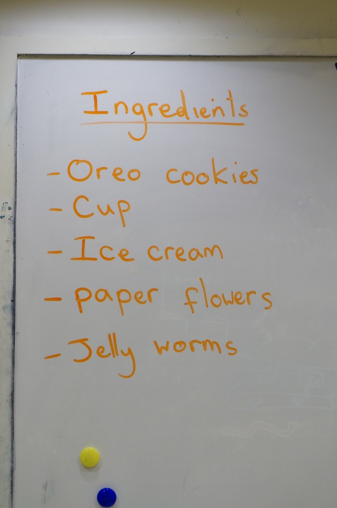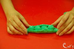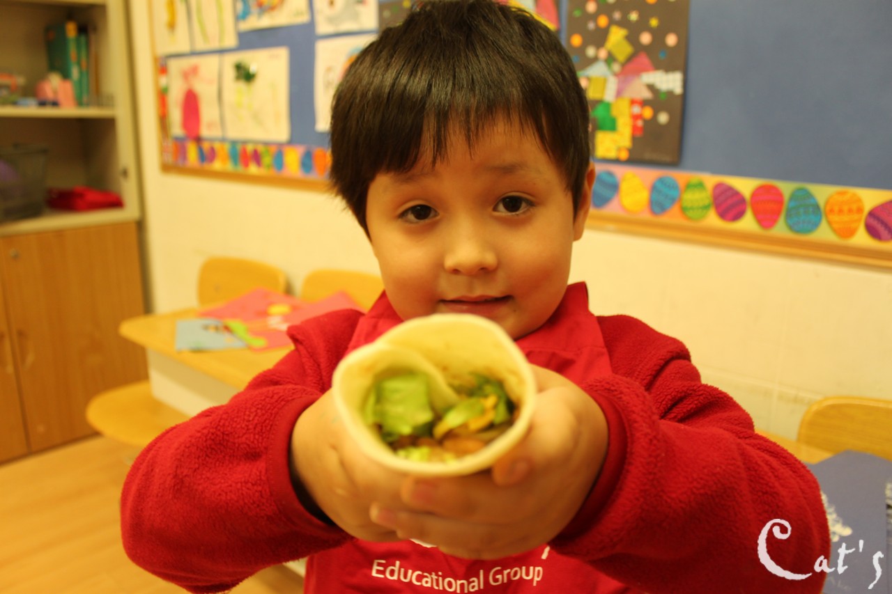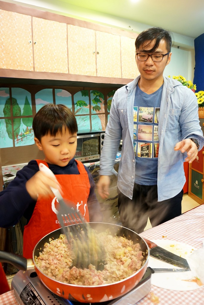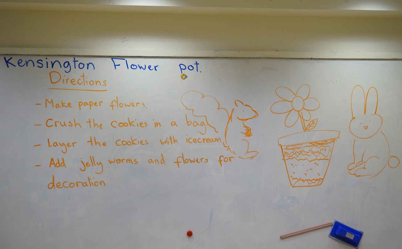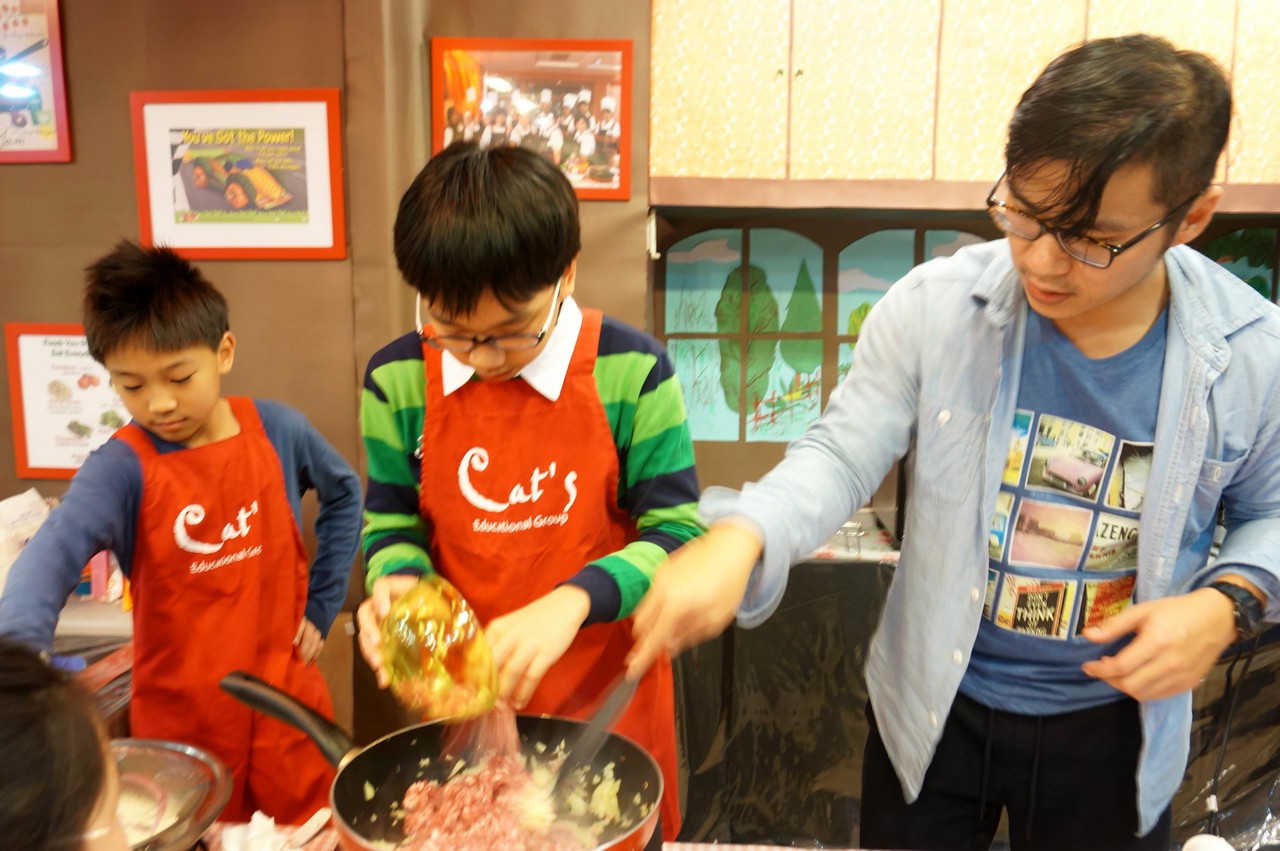 Jazz, Sophie and Kitty taking turns to cut bananas