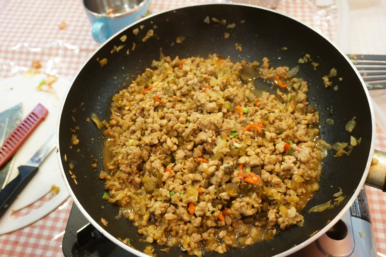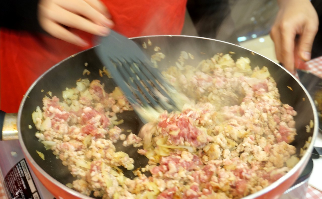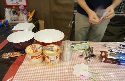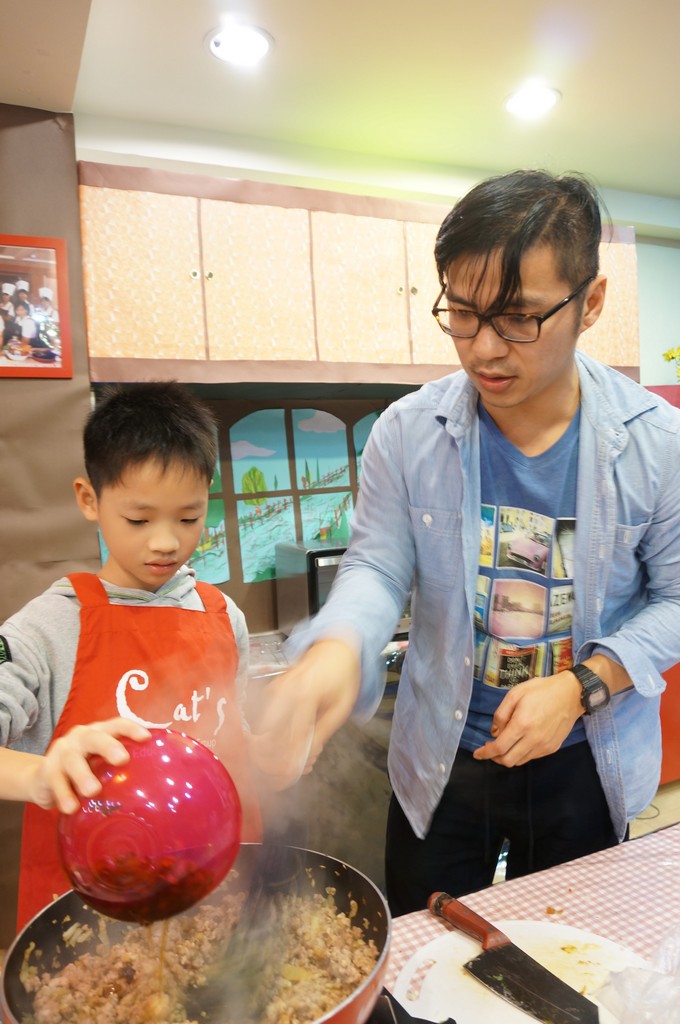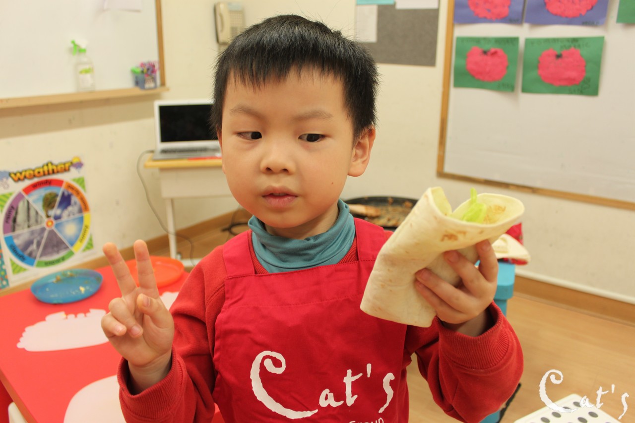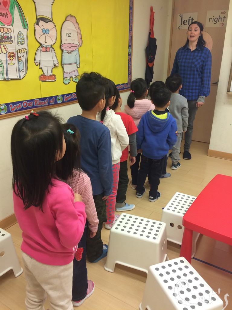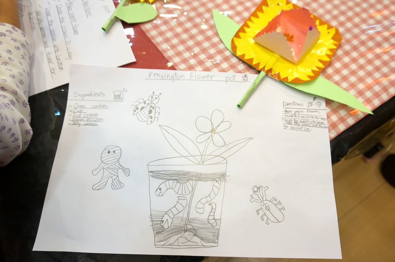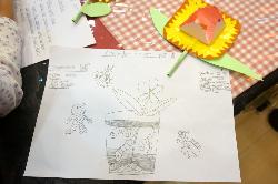 Jazz, Sophie and Kitty taking turns to cut bananas