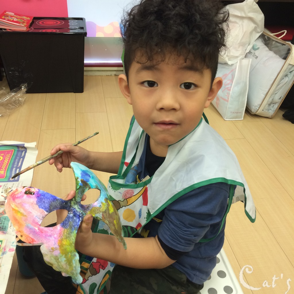 這個小熊面具原本是白色的~看看小朋友們會把他變成什麼可愛的樣子呢~~