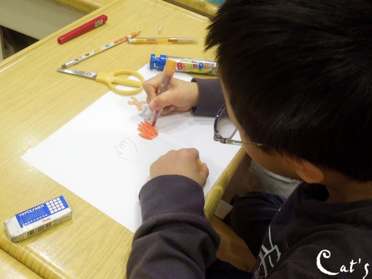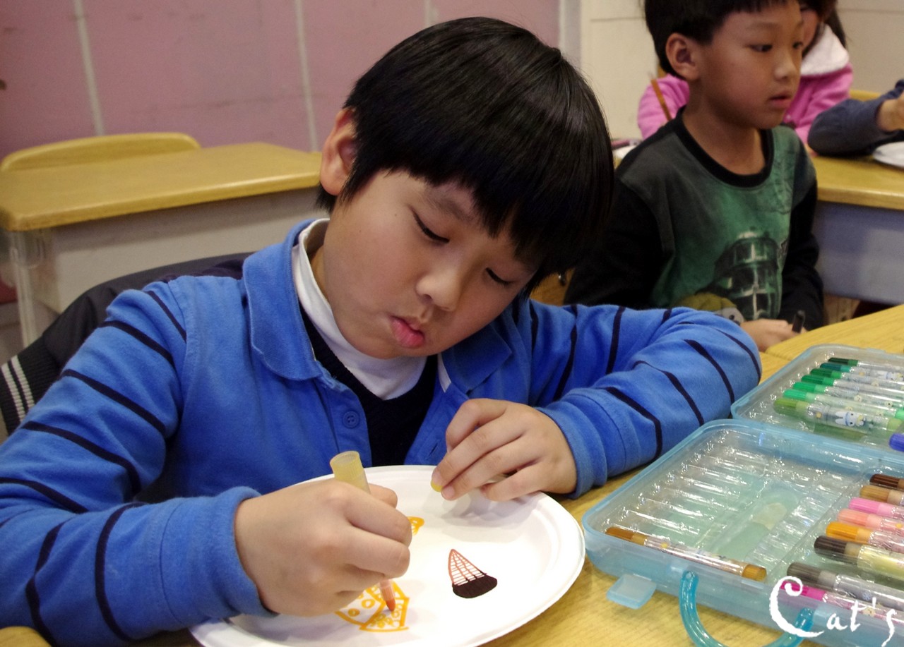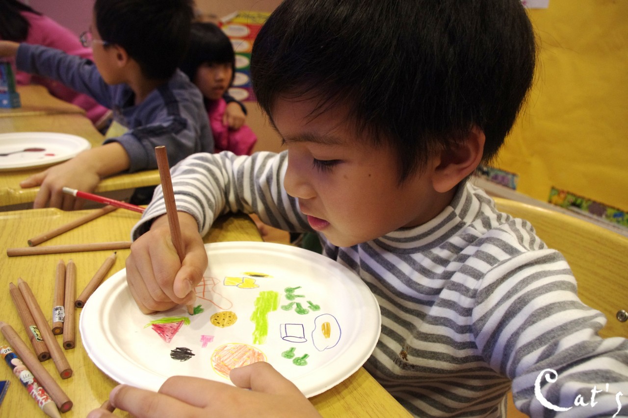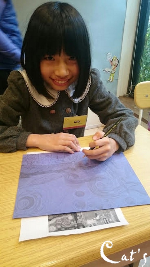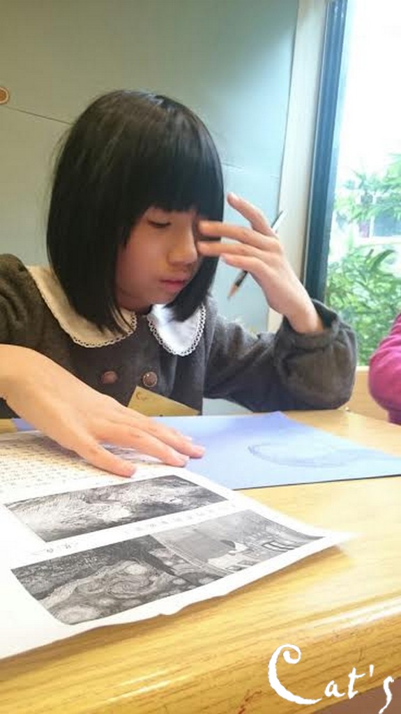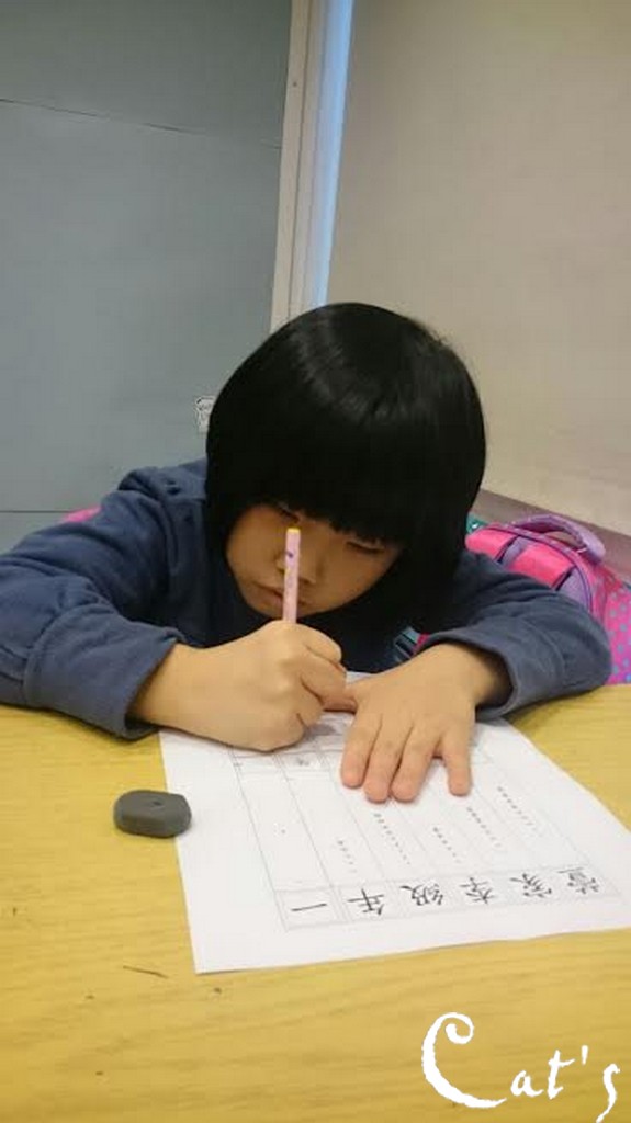 Kitty妹妹的握筆姿勢要再調整,才不會遮住自己的視線,我們繼續努力吧!
