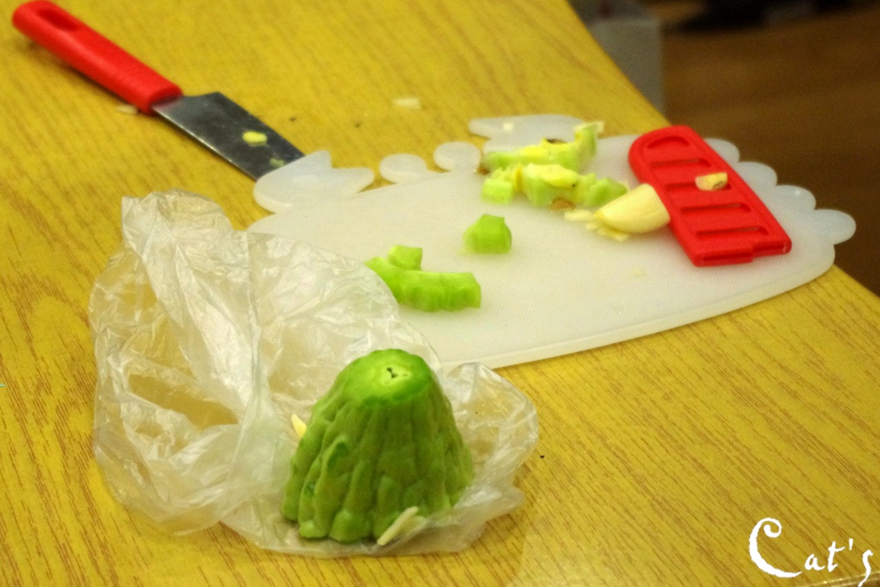 Tiven and Bruce tried a piece of bitter gourd!!!
