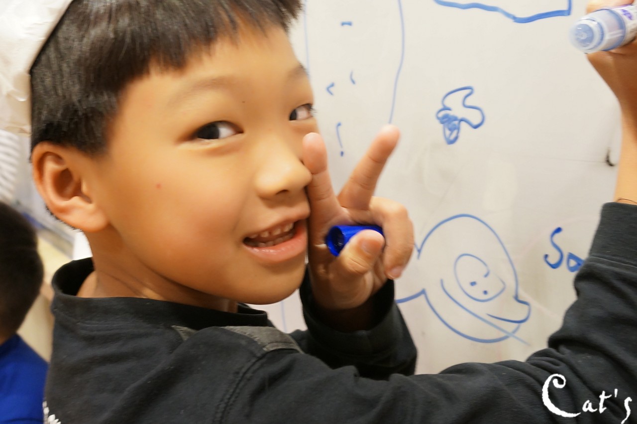 第二節課老師指導我們書寫的技巧,讓大家上臺試試看。