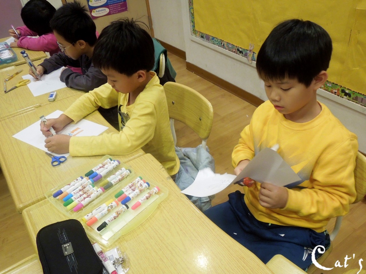 班上的左撇子占了一大半,確實在大字的運作上面比較面臨困難。
