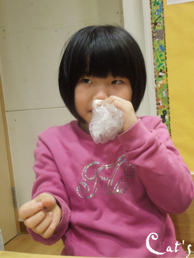 Alice feeling the texture and guessing whats in the box!