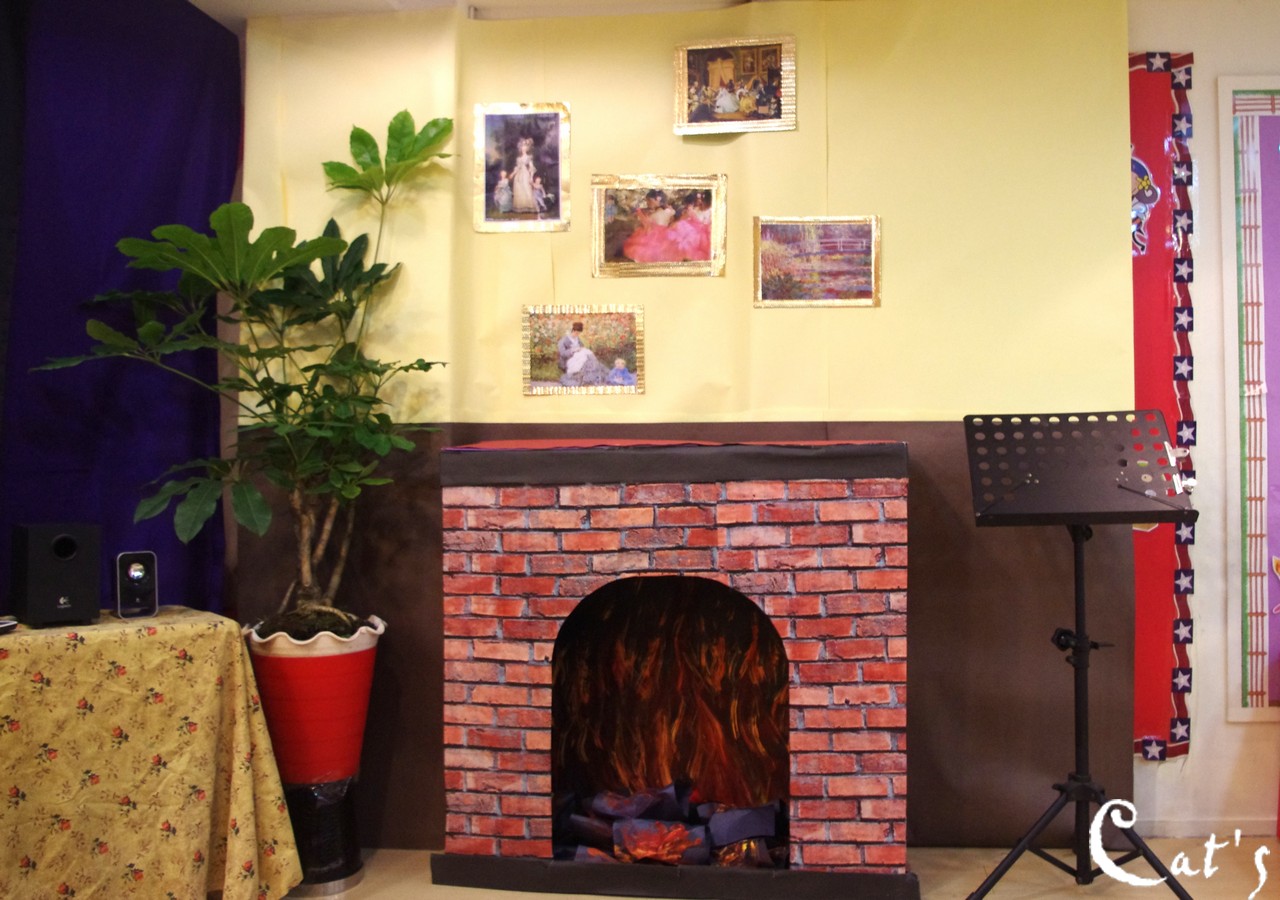 fire place by the kitchen