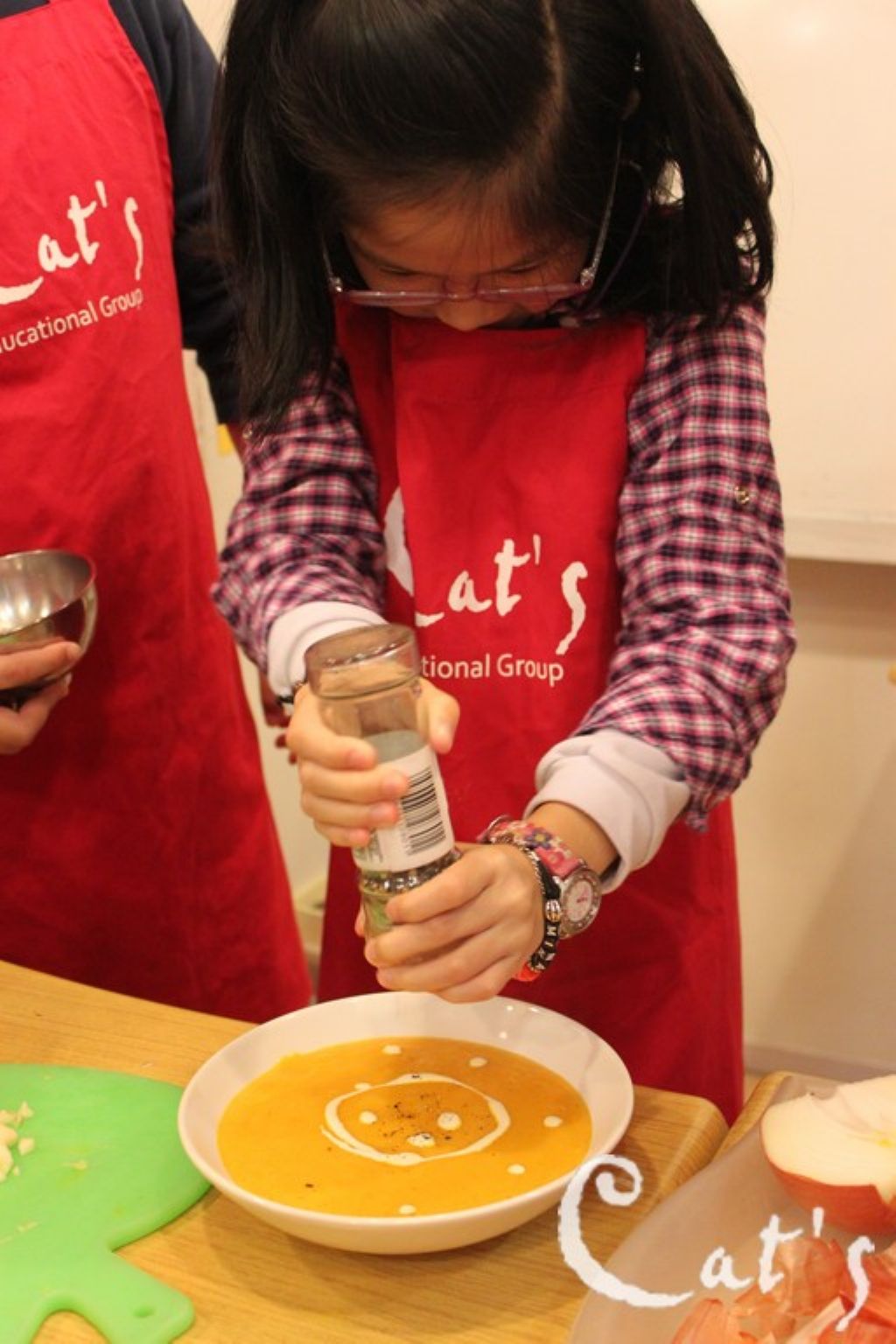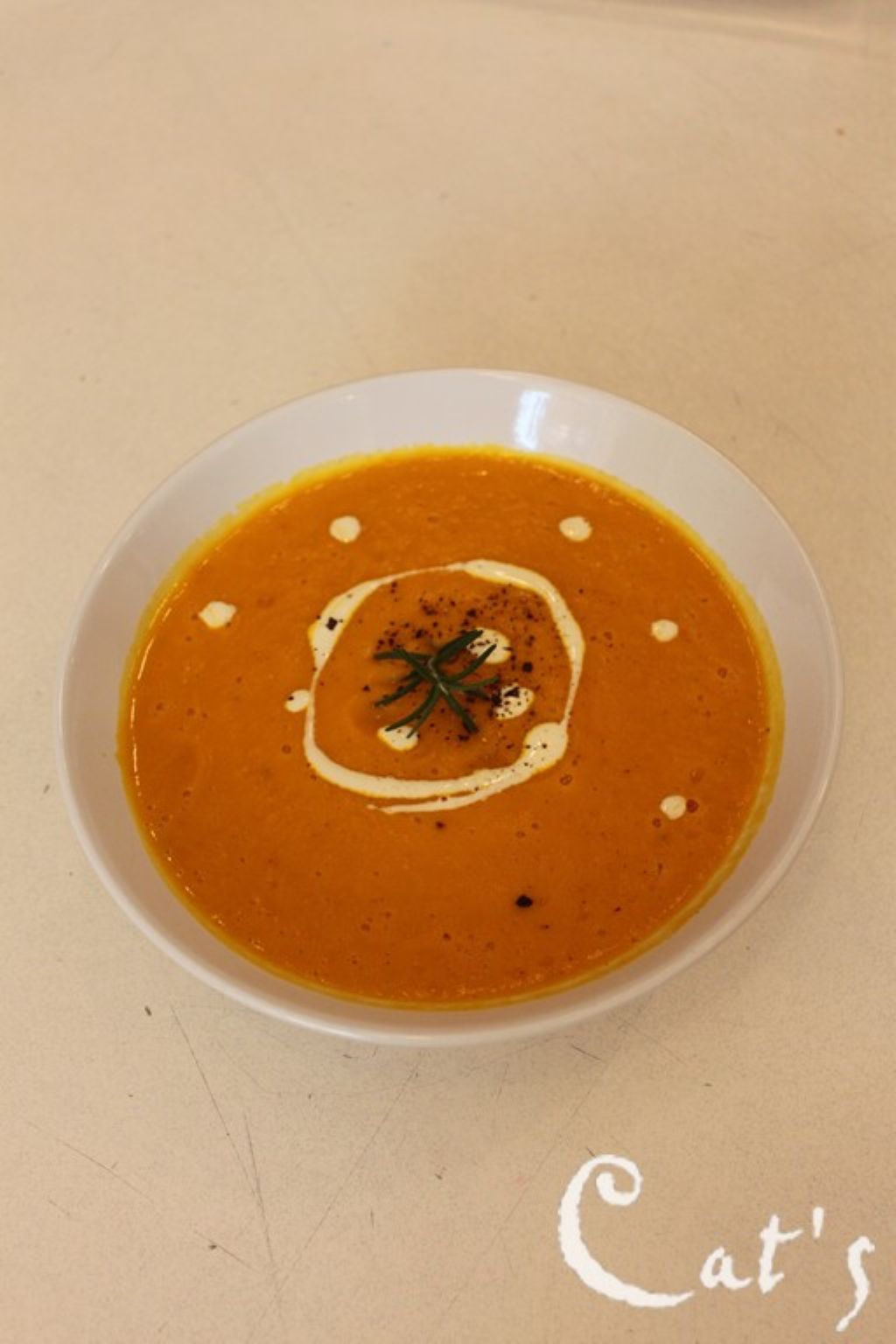 很快的香濃的南瓜湯煮好了~灑點胡椒裝飾、提味~!