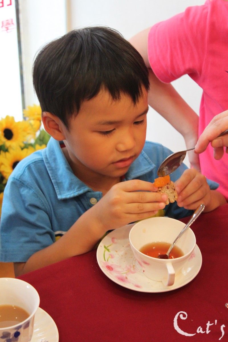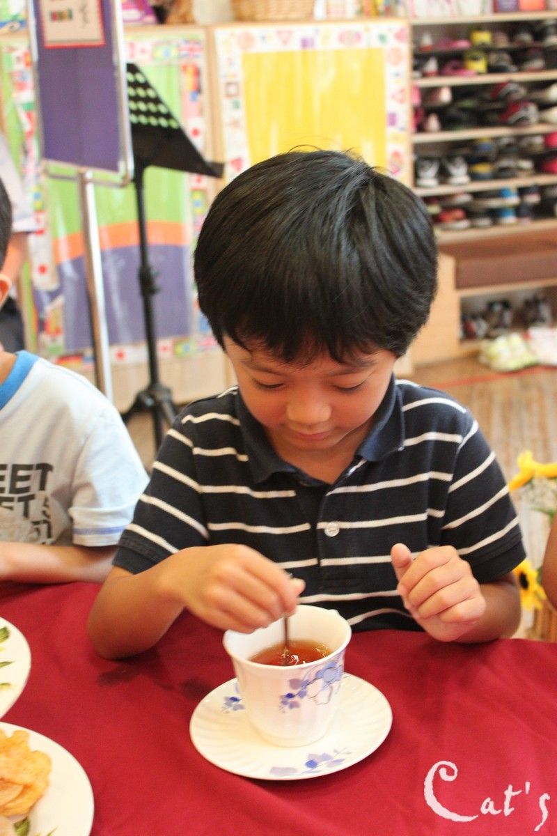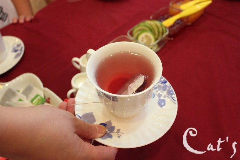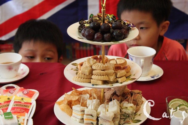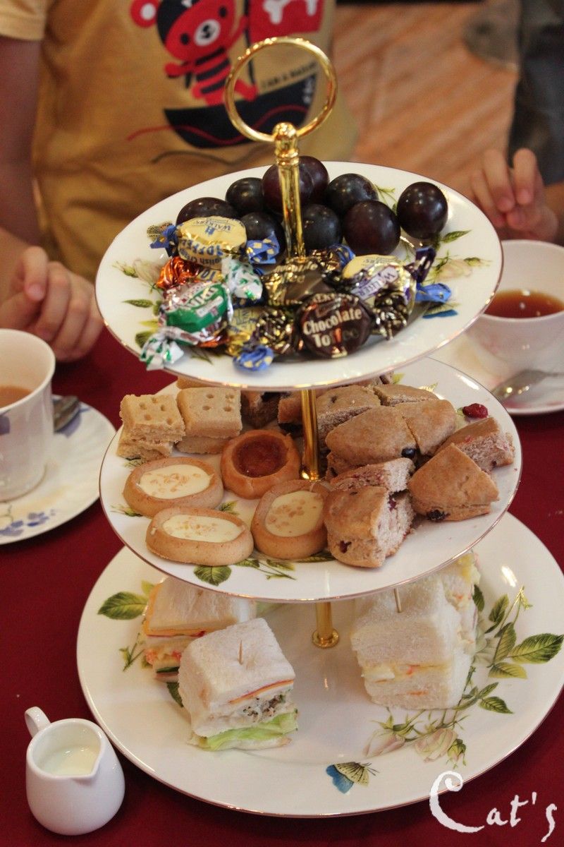 When we try English Tea, we should start from the plate with salty food (the lower plate) to the plate with sweet food (the upper plate)