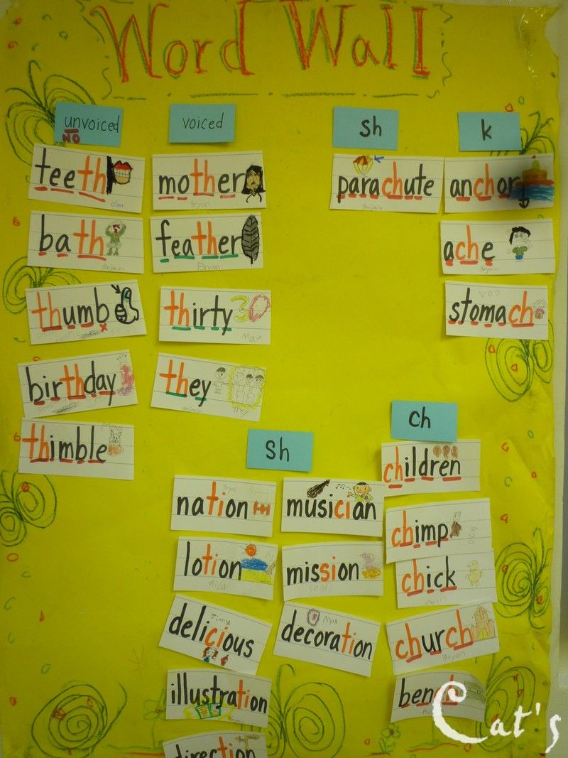 Our Word Wall! For example, "Ch" can have various pronunciations when it is in different words!