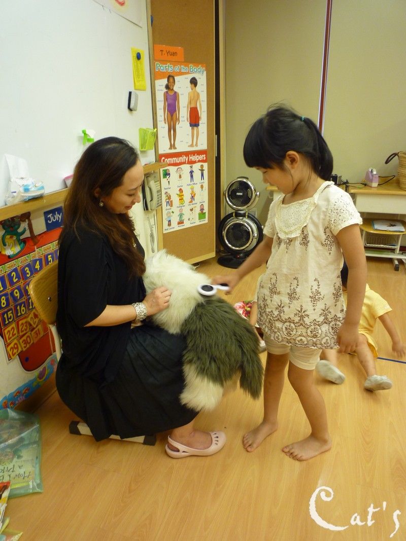 This is the puppy T.YuanYuan brought! I'm combing its hair!