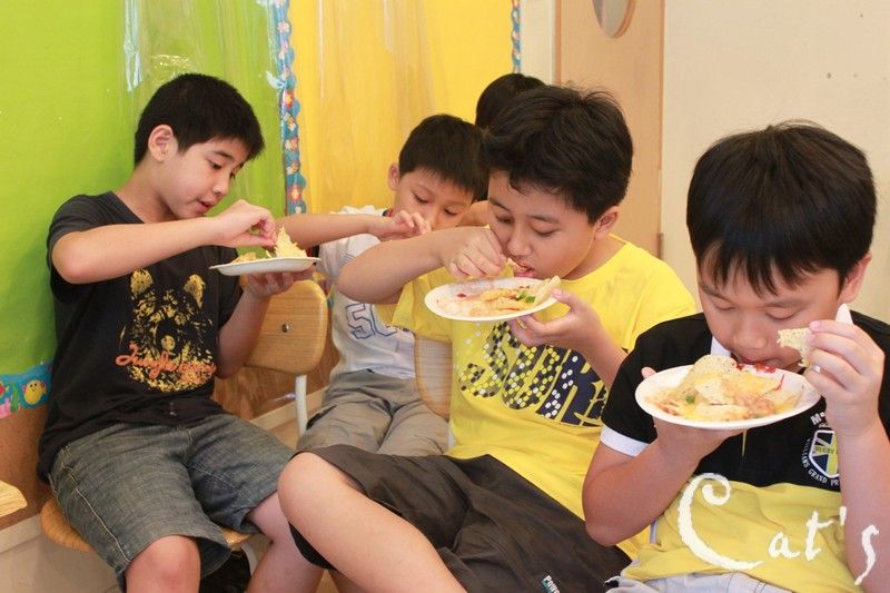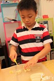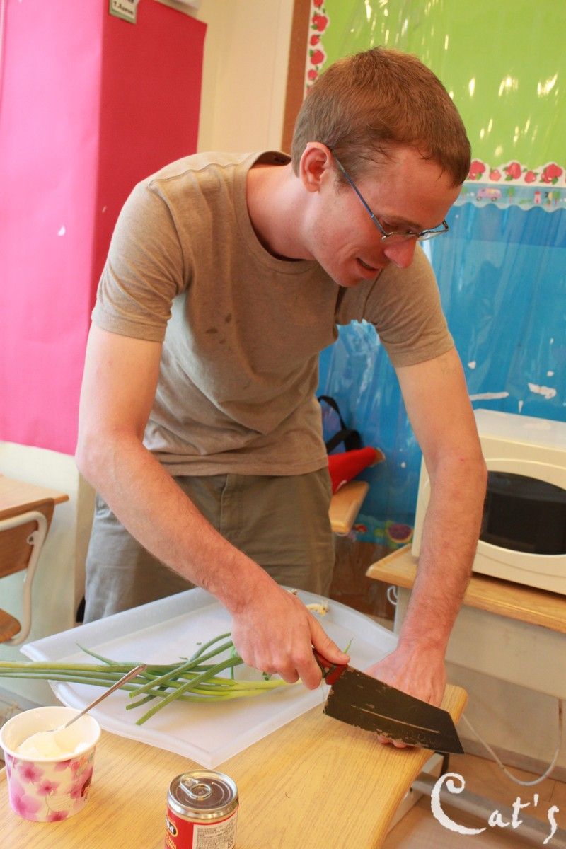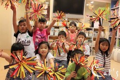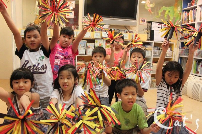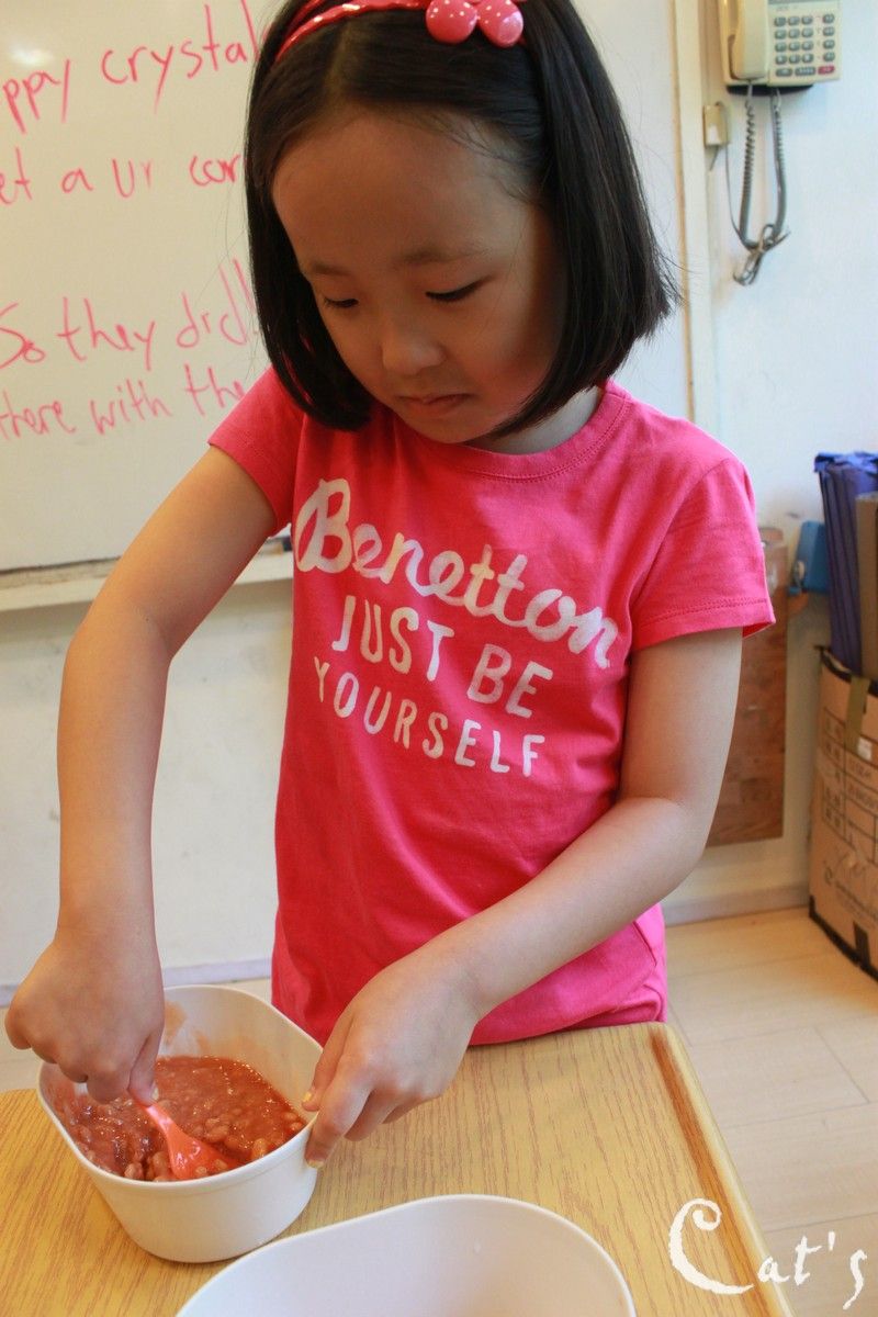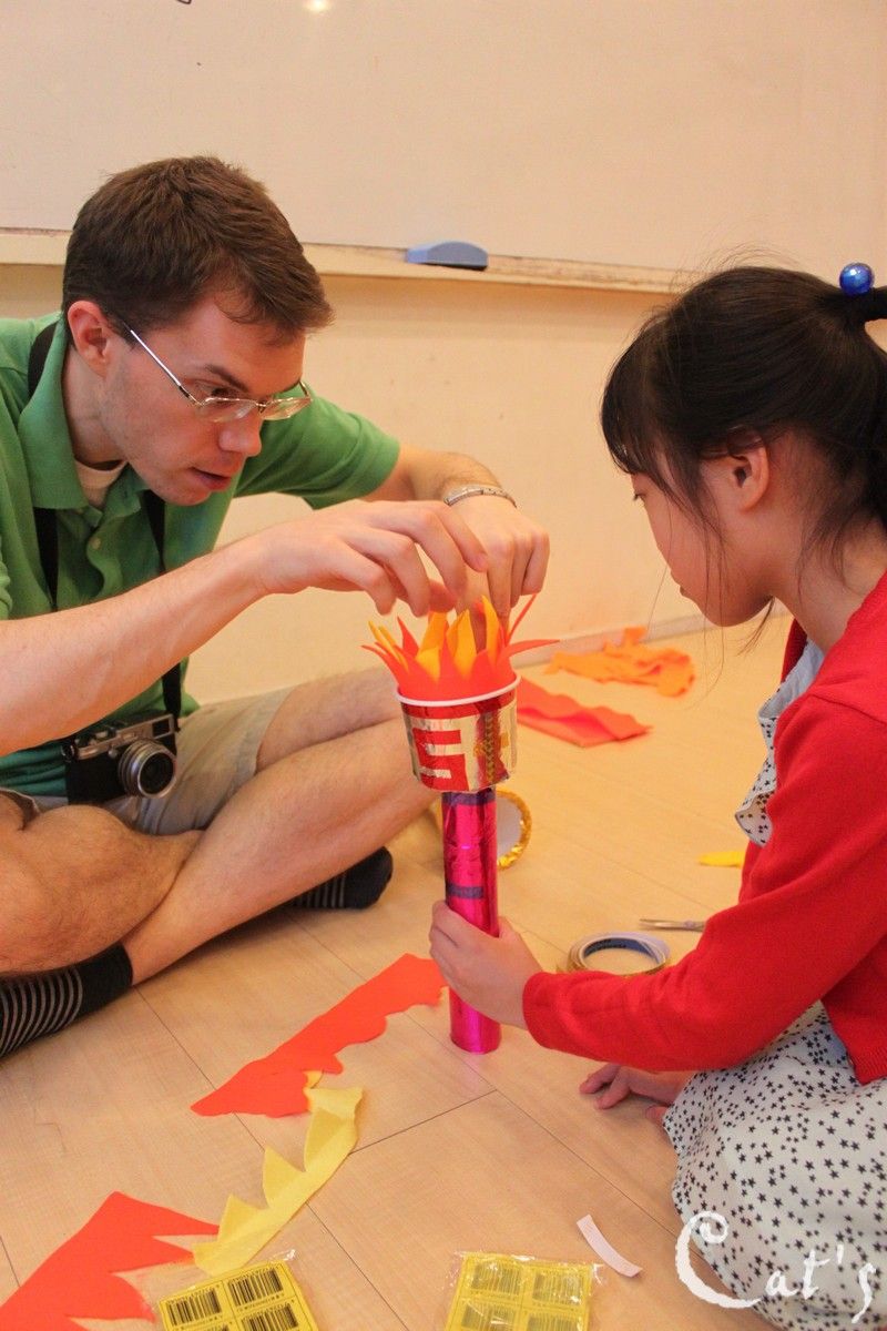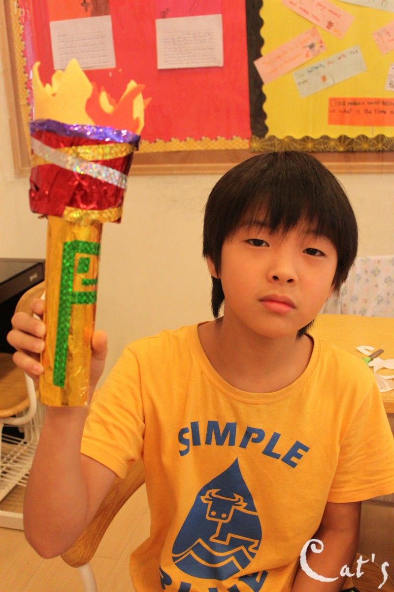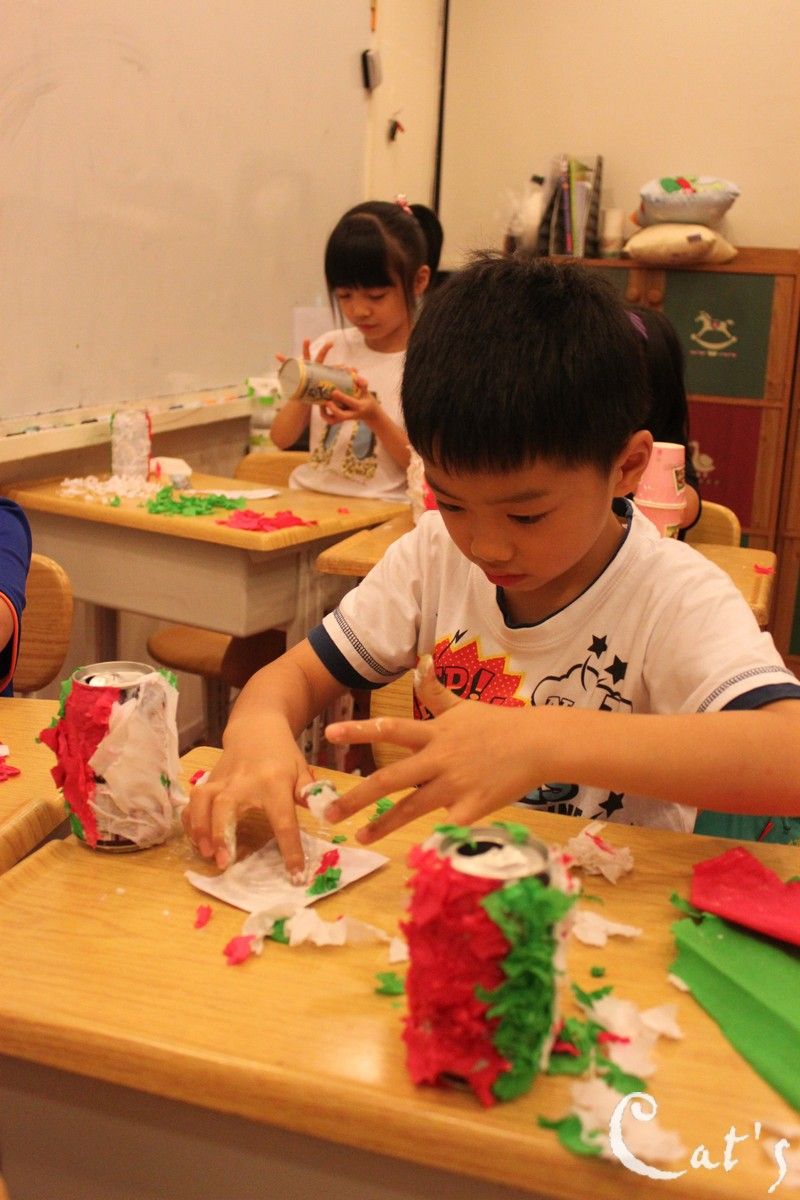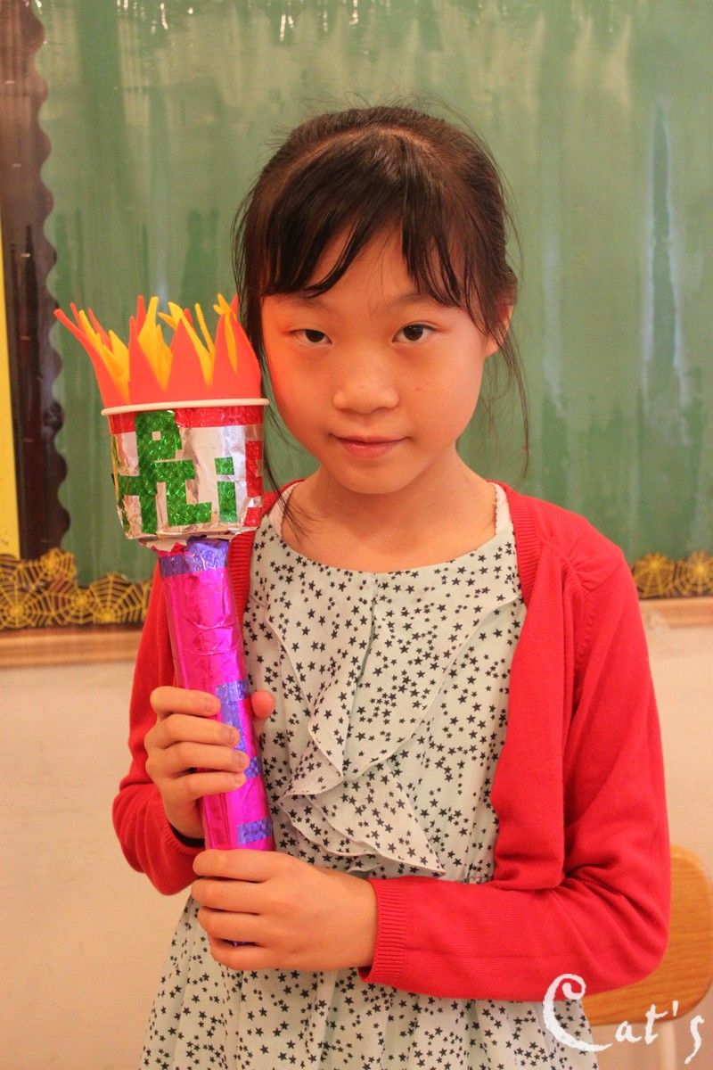 用包裝紙纏繞紙碗以及厚紙板做成的圓柱狀手把