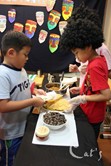 在土壤風乾的實驗課程中, 該班學生們分工合作將泥土擠壓在自己的冰塊盒內.